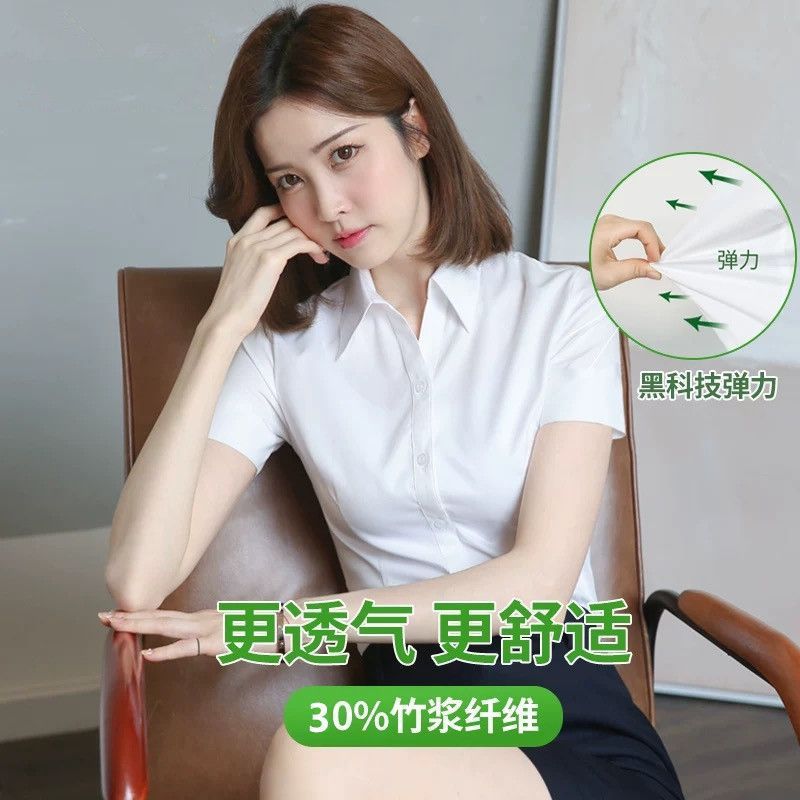 Kemeja Tanpa Setrika Serat Bambu Pakaian Kerja Pakaian Kerja Wanita Pakaian Kerja Model Tipis Kemeja Kerja Bank Pakaian Kerja Pakaian Formil Lengan Pendek Terlihat Langsing