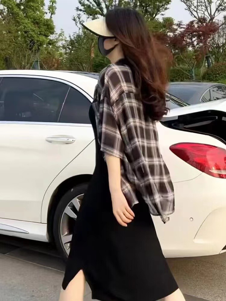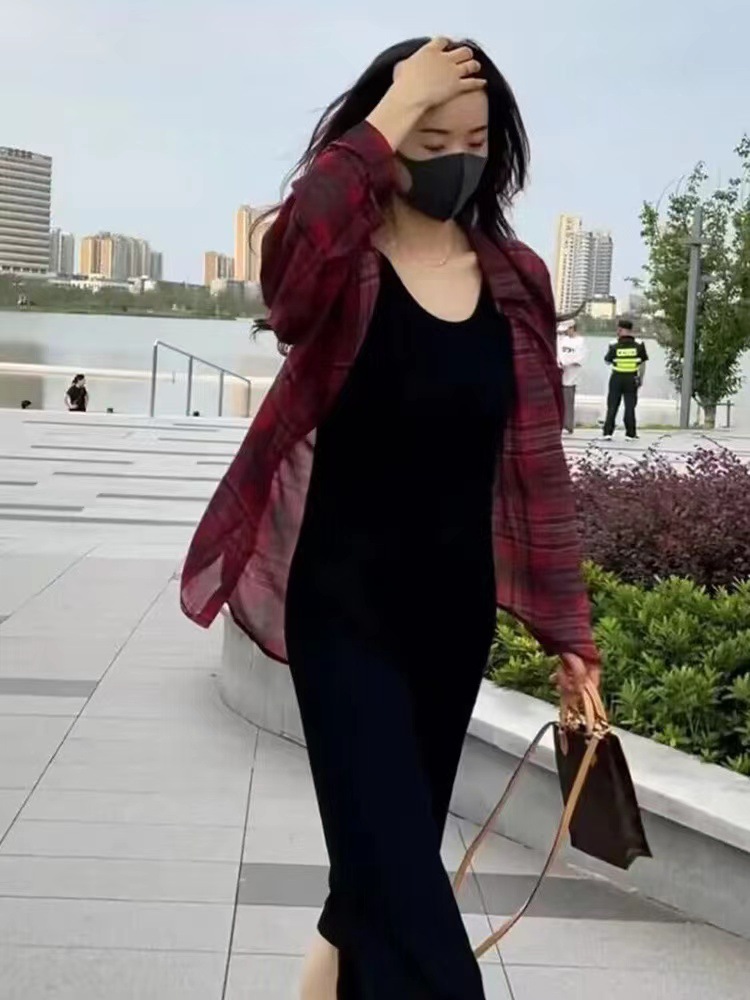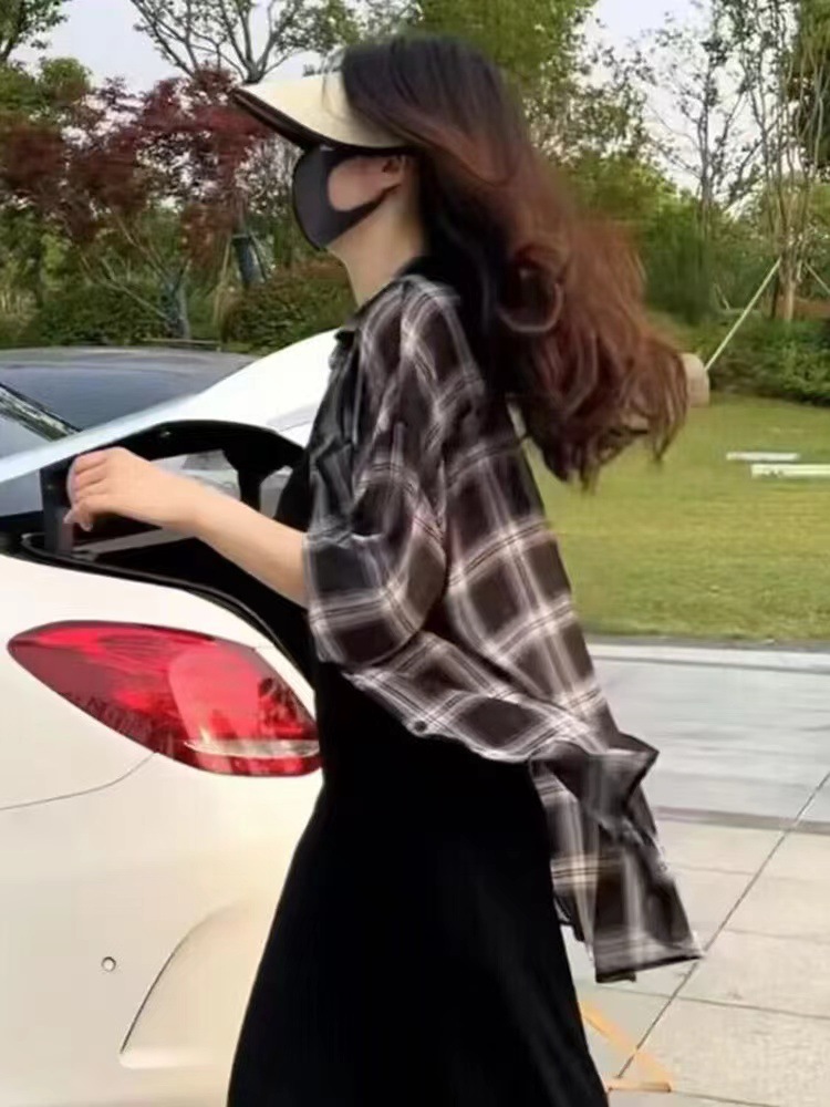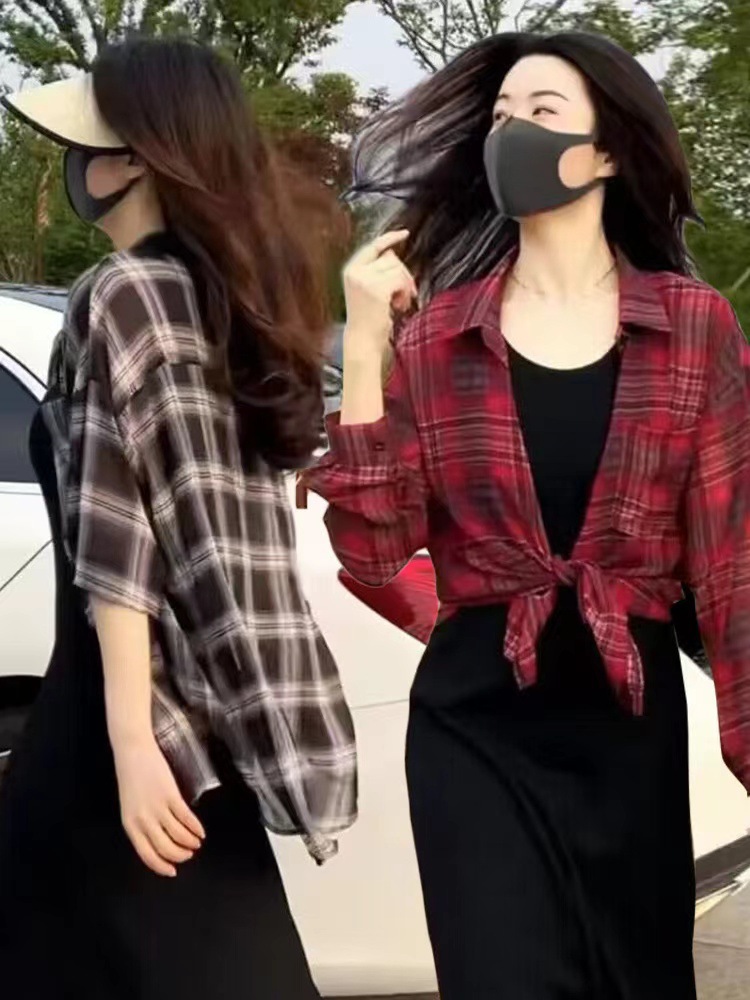 Kemeja Kotak-kotak Pelindung Matahari untuk Wanita, Musim Panas 2025, Atasan Lengan Panjang Tipis Longgar Kasual Pelindung Matahari, Jaket Komuter Serbaguna.