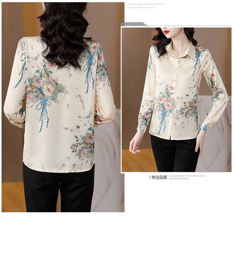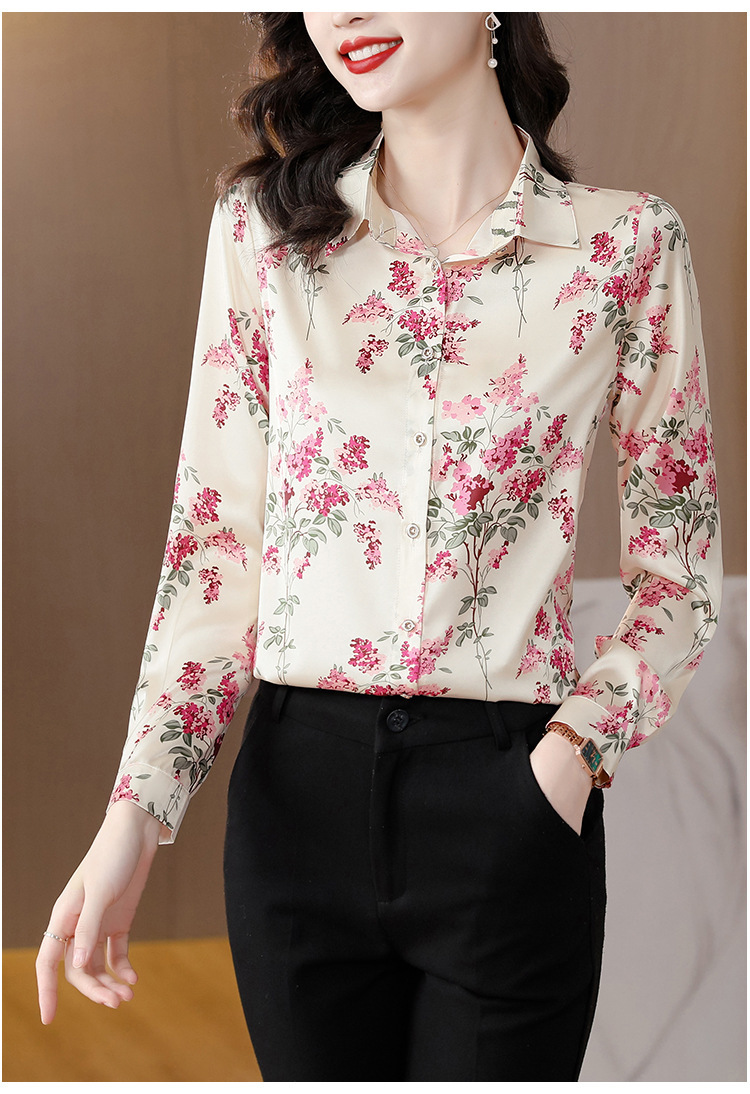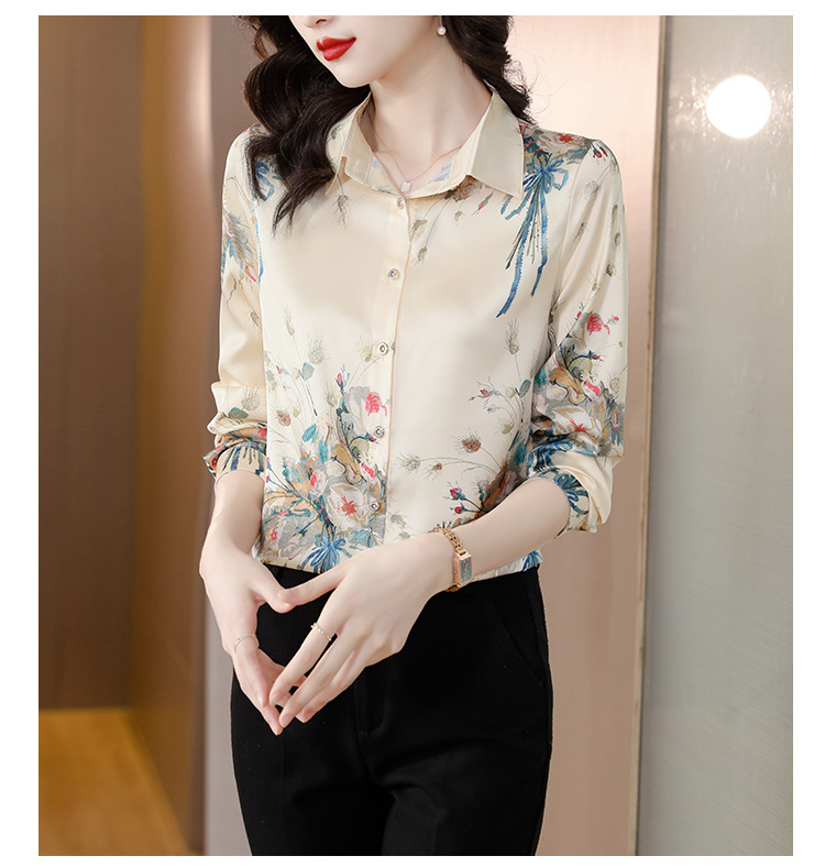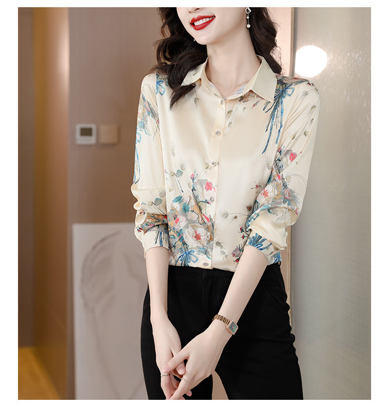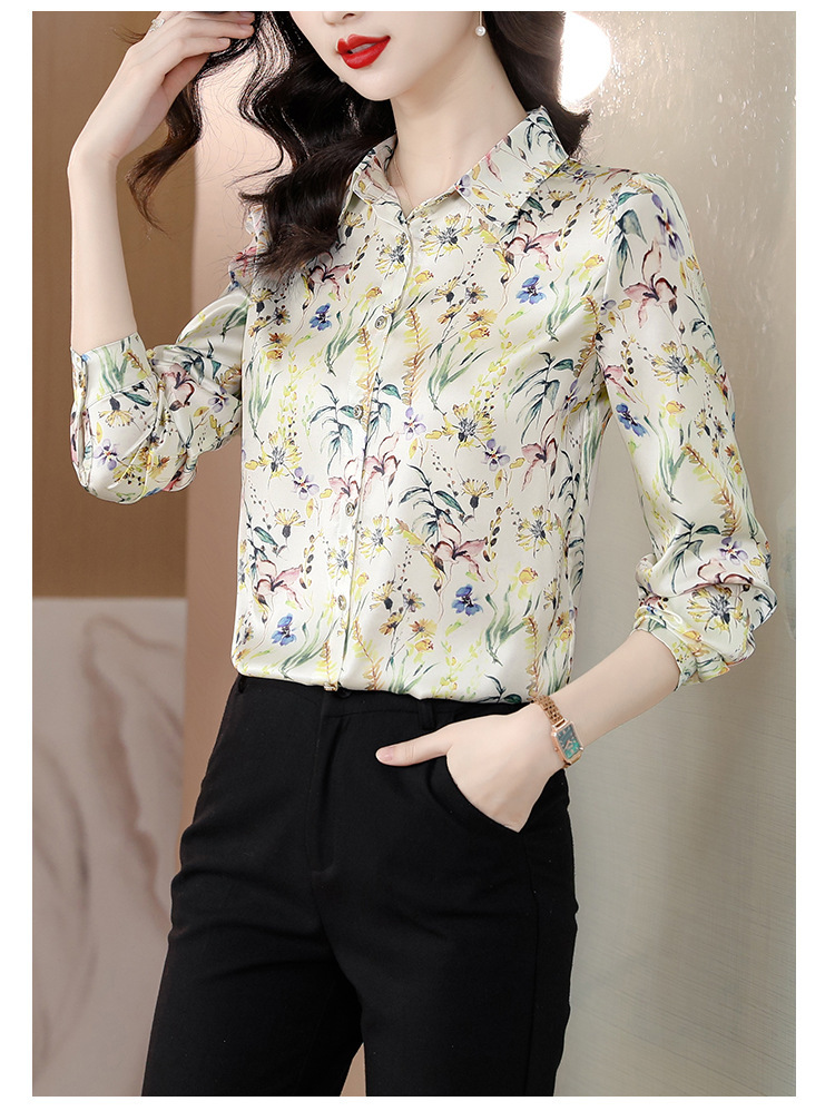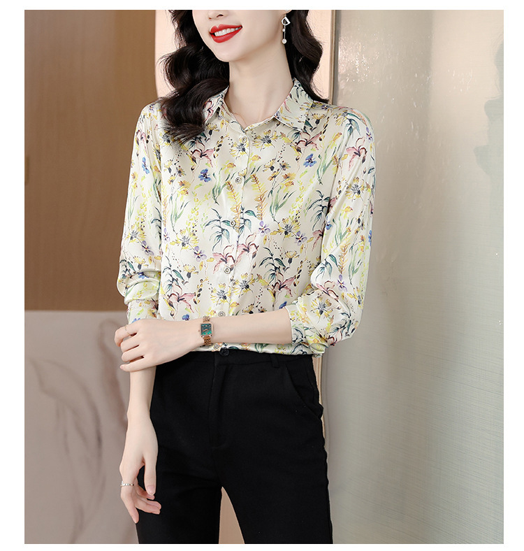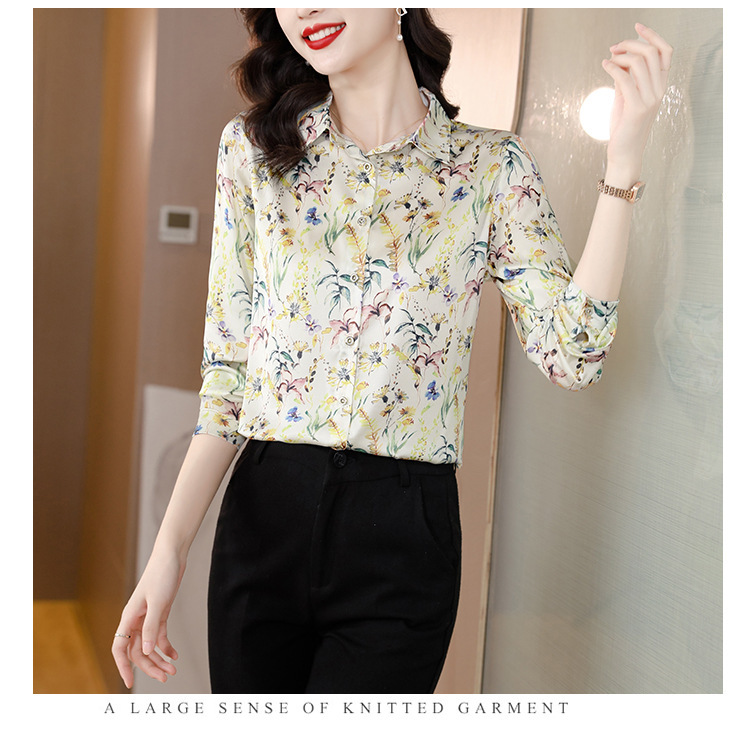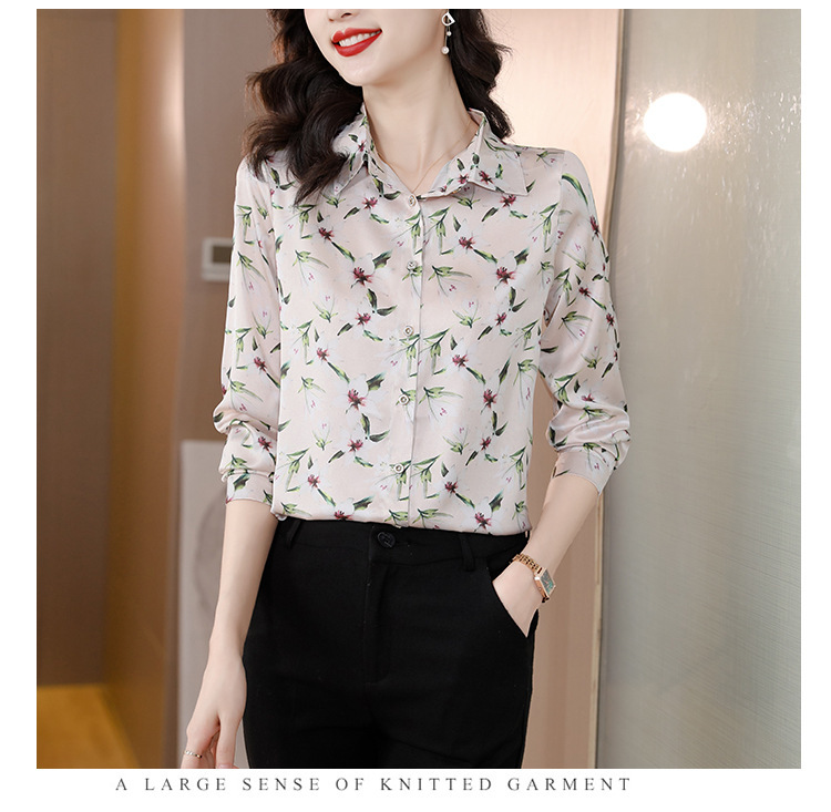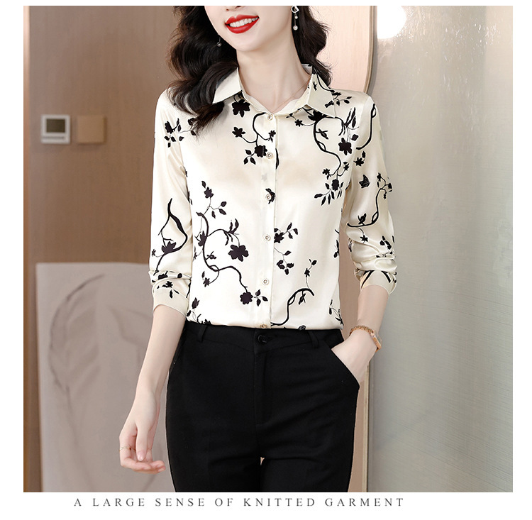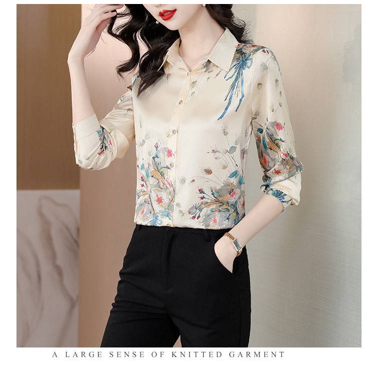 Kemeja Netral Modis Atasan Gaya Barat Model Tipis Sutra Asli Penghitung Sutra Murbei Wanita Pakaian Kerja Profesional Elegan Kemeja