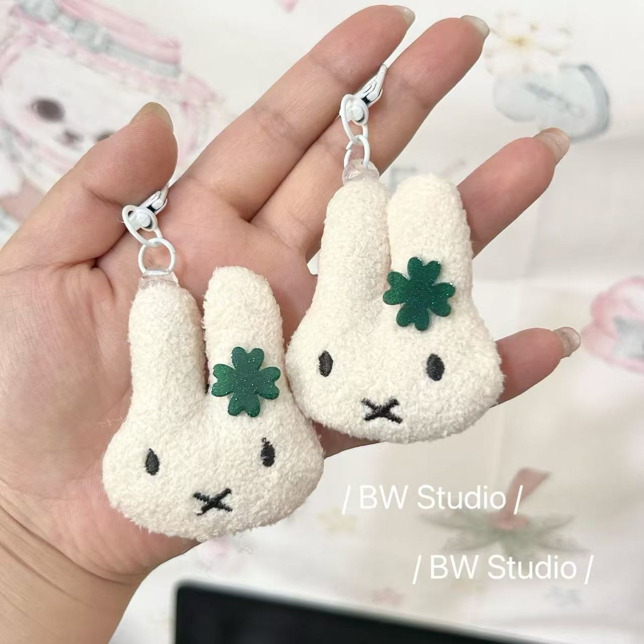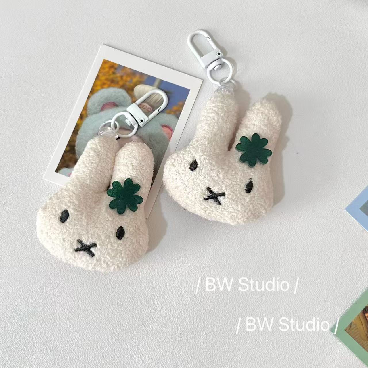 Lucky Clover Miffy Cover Gantungan Kunci Bulu Kelinci Tas Hiasan Gantung Boneka Kartun Lucu
