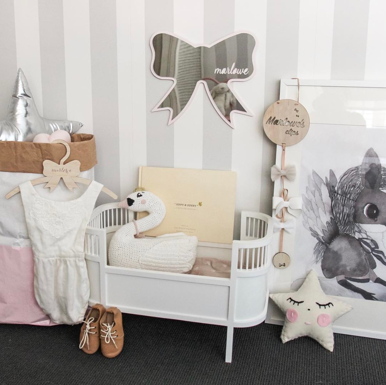 Satu potong pengiriman ins dekorasi gaya Nordik cermin anak-anak dekorasi rumah kerajinan Miffy ornamen akrilik kelinci
