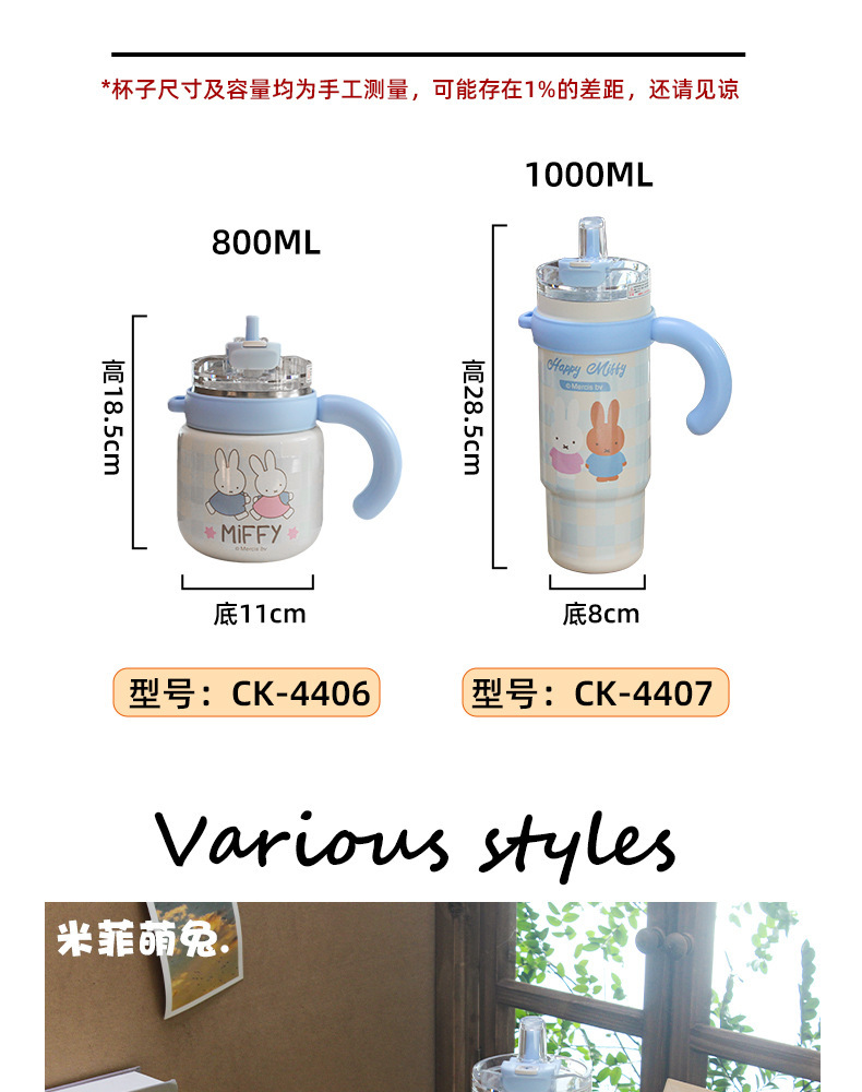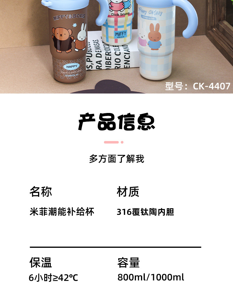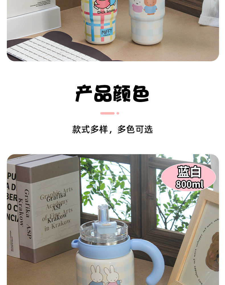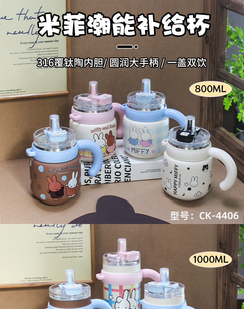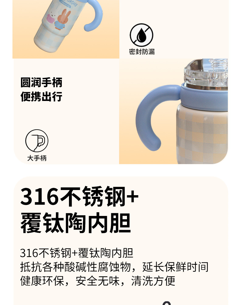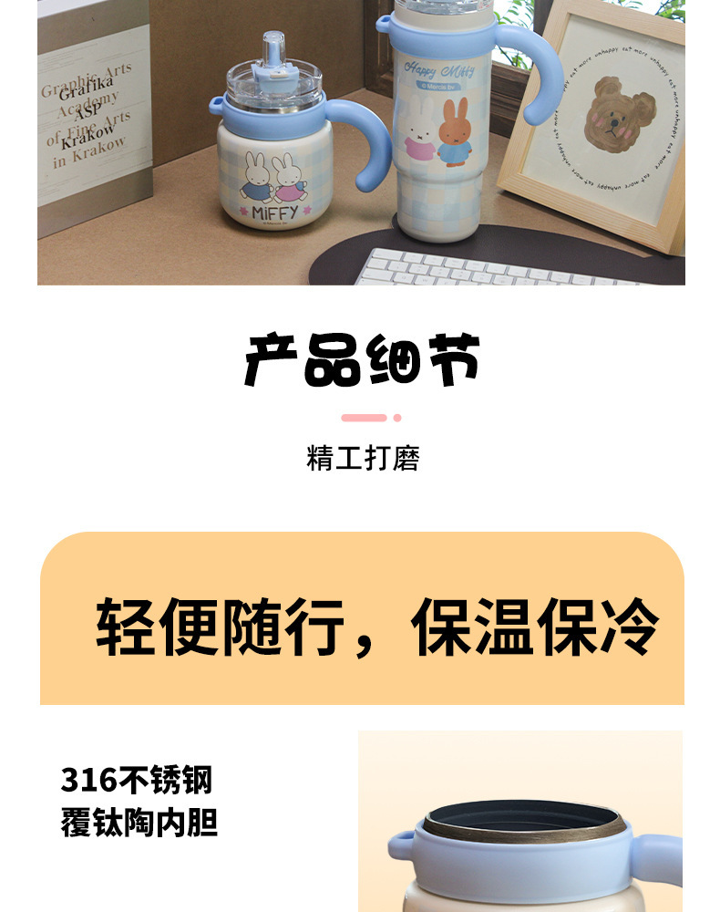 米菲正版保温杯大容量吸管杯可爱水杯2026新款高颜值冰霸杯办公杯