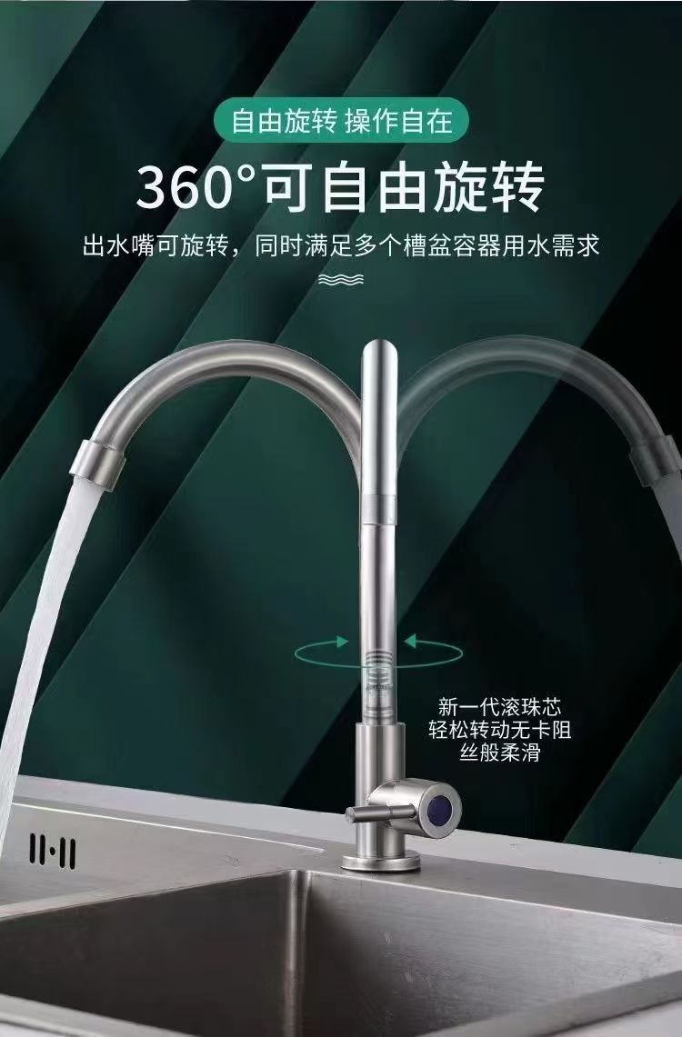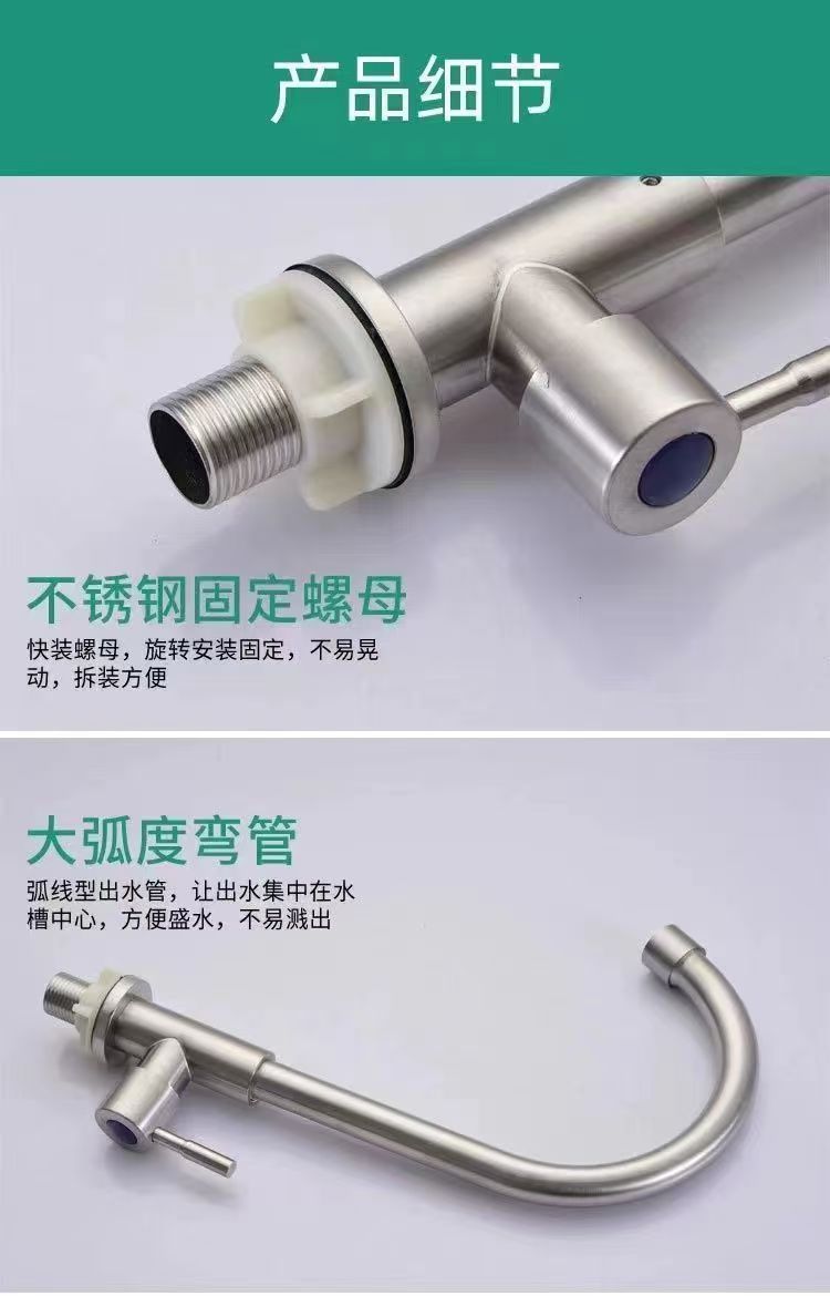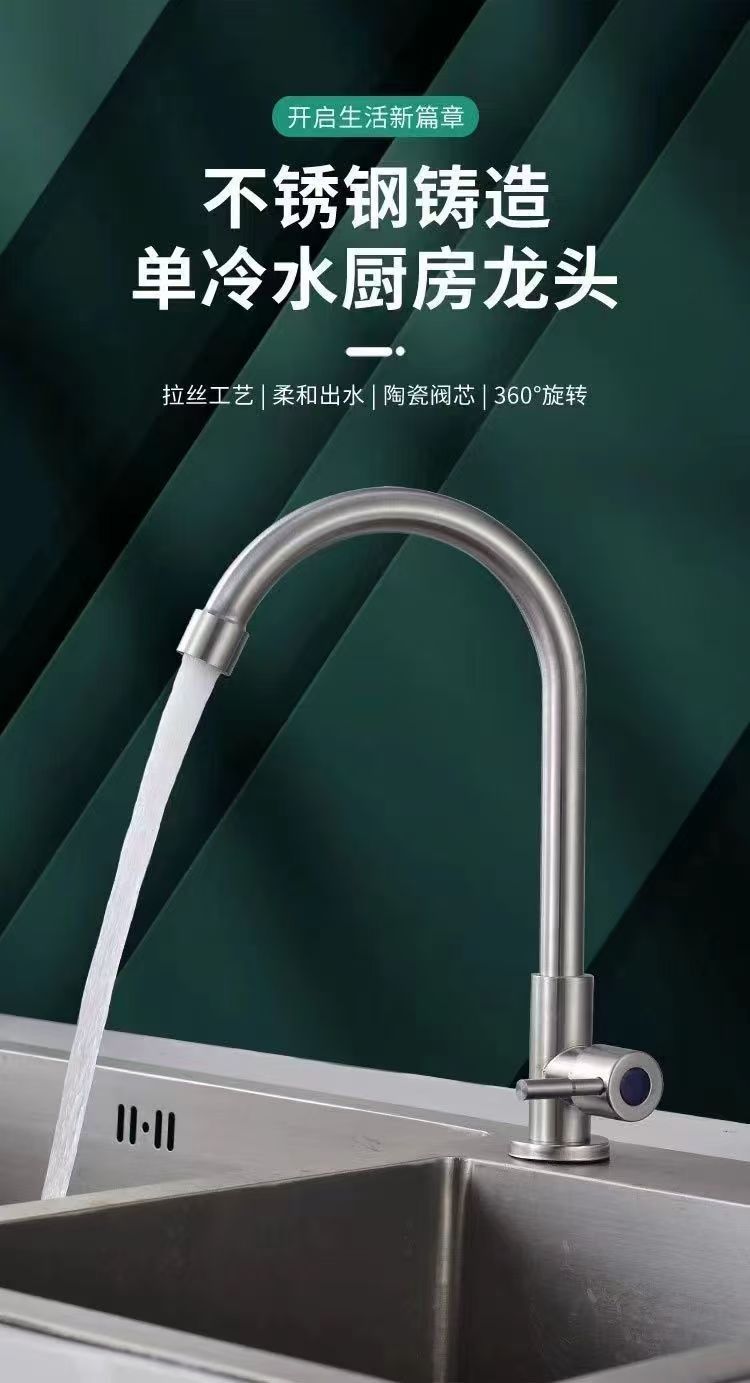 Keran Keran Dapur Dingin Tunggal Stainless Steel Keran Baskom Cuci Sayur Lubang Tunggal Tembaga