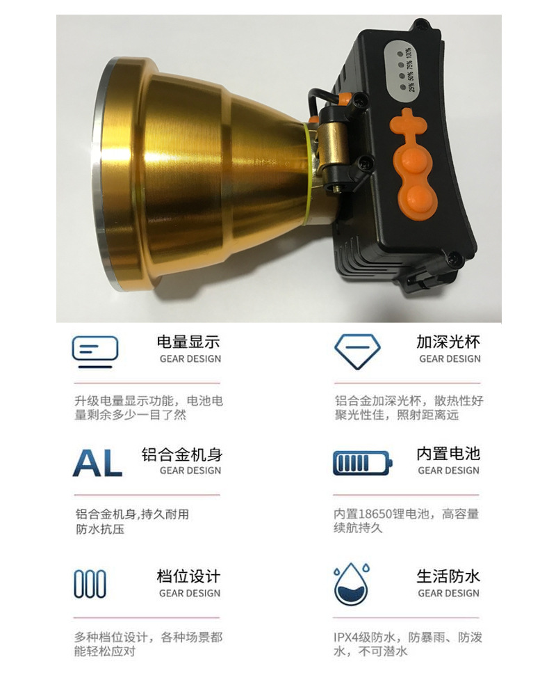 Lampu Sorot kepala led langsung dari pabrik, lampu memancing tahan air hiking luar ruangan cahaya kuat super terang jarak jauh lithium isi ulang