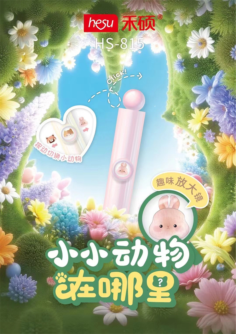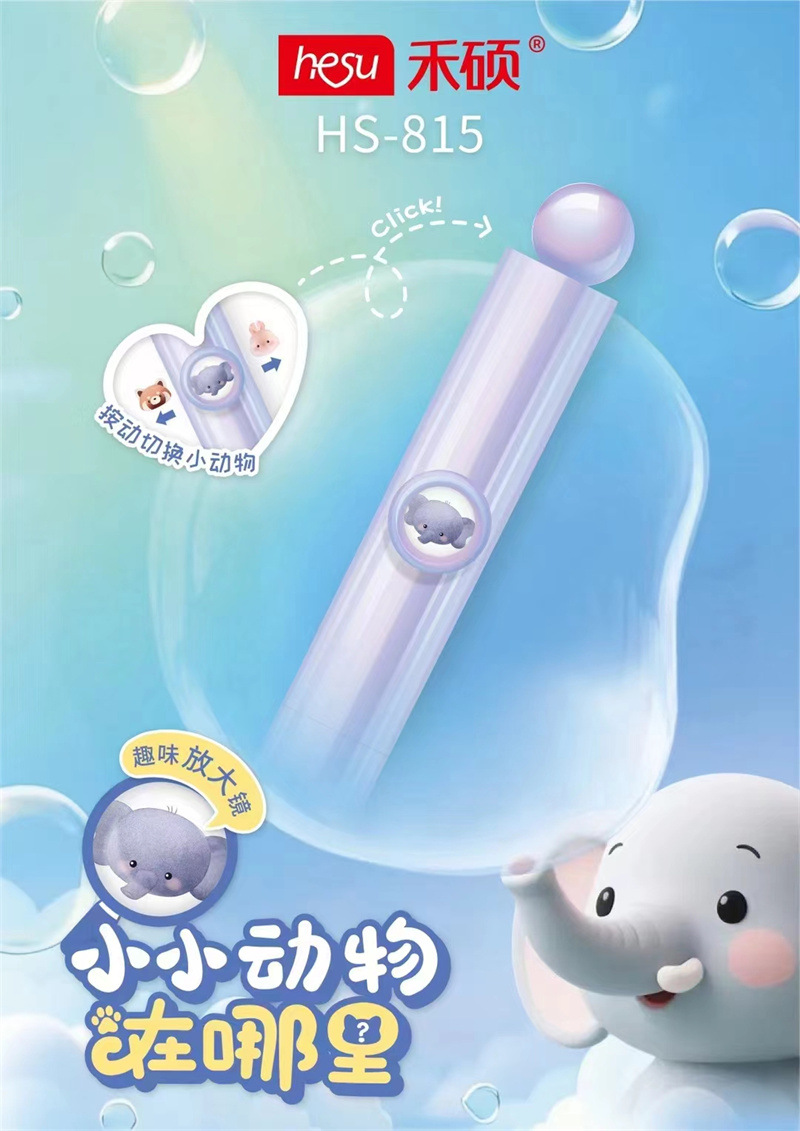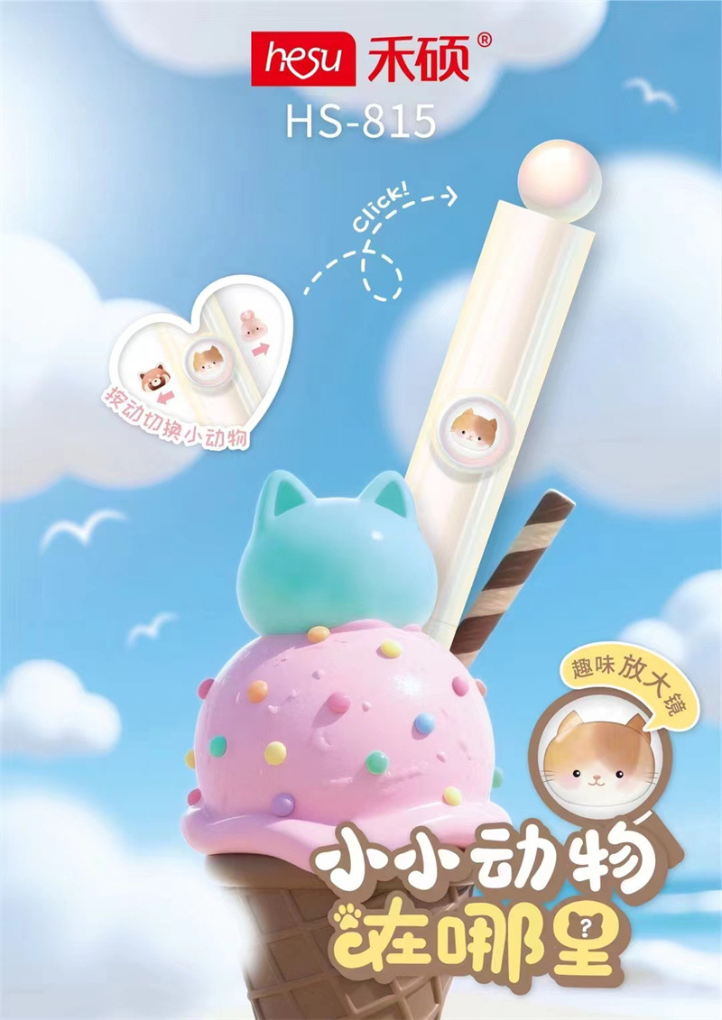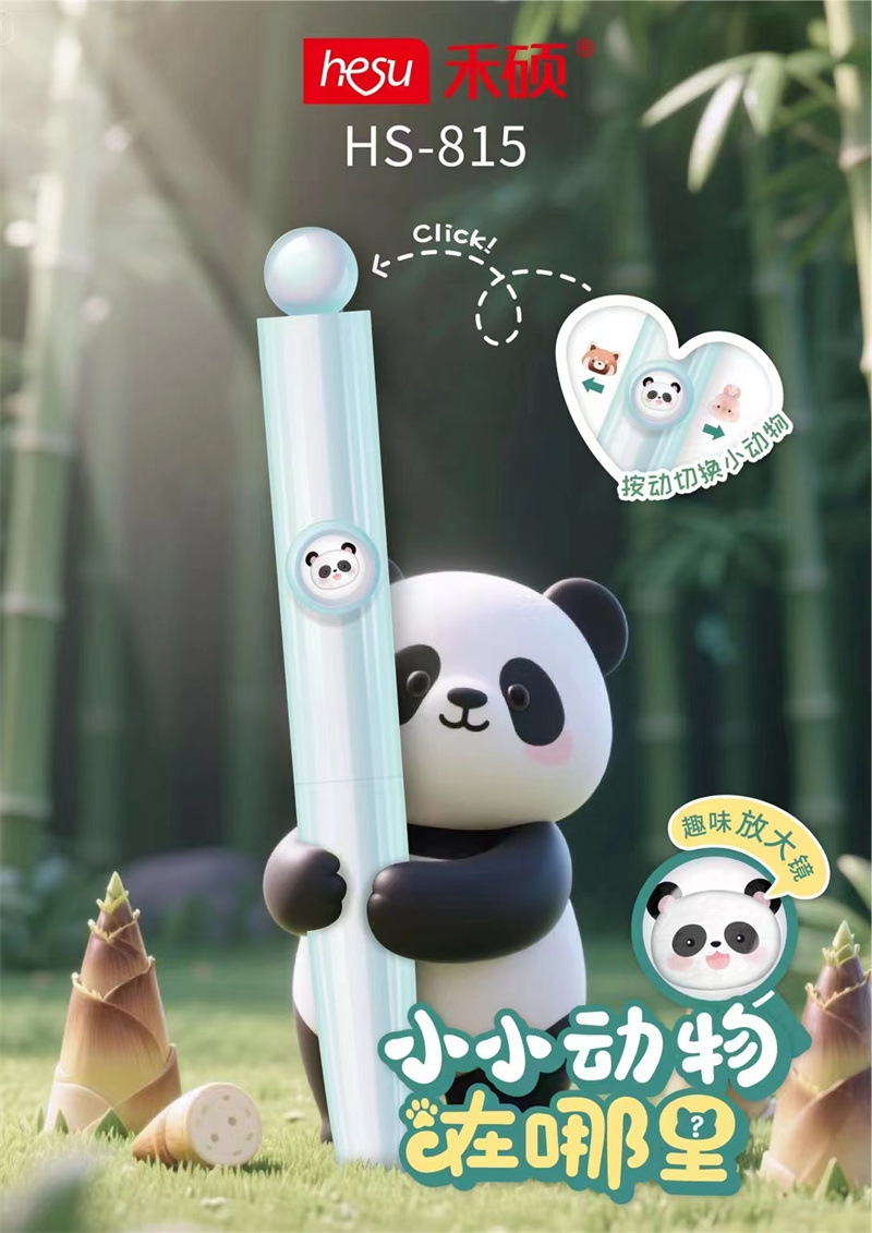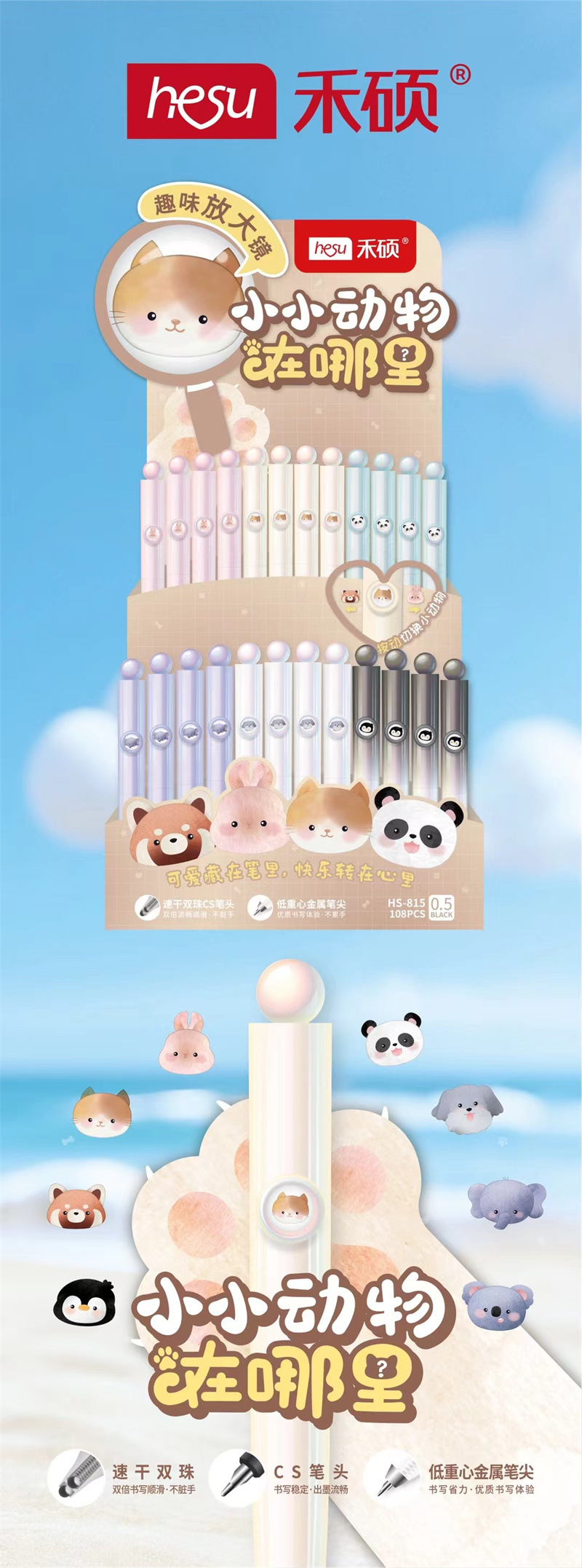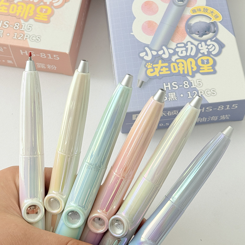 禾硕新款小小动物系列按动中性笔创意小窗放大镜双珠速干刷题笔