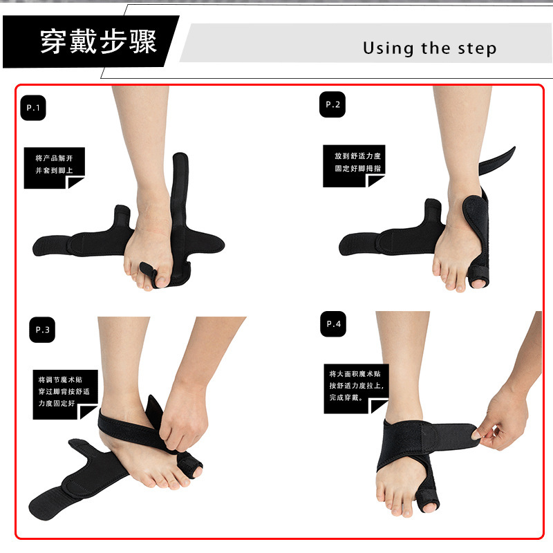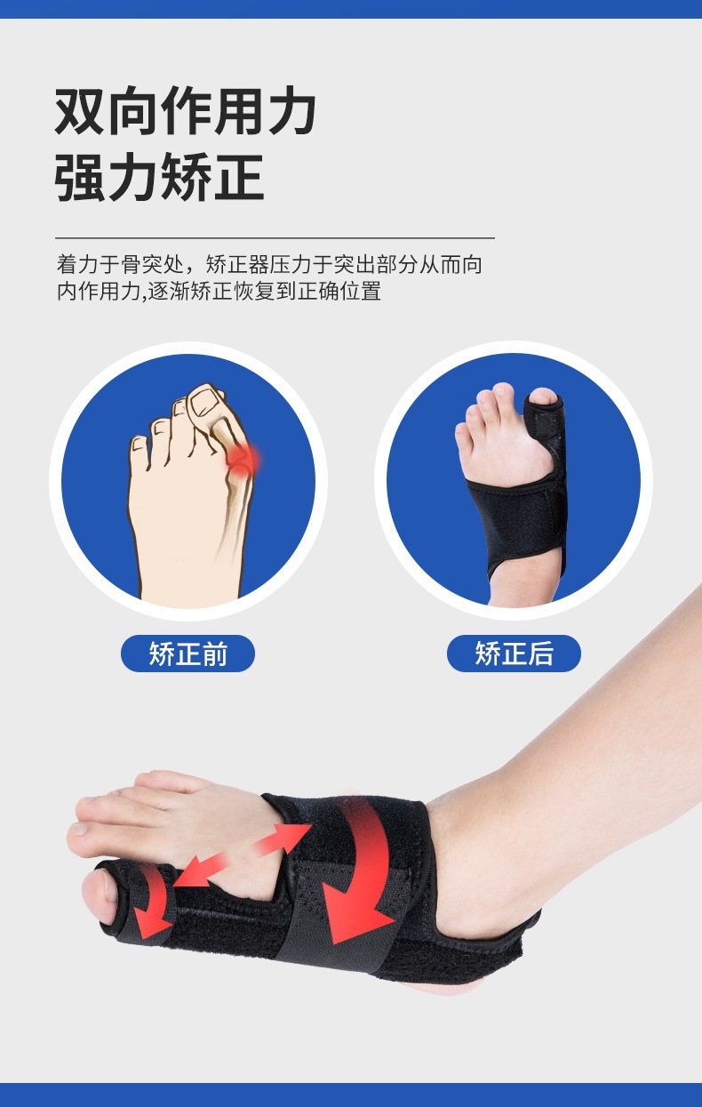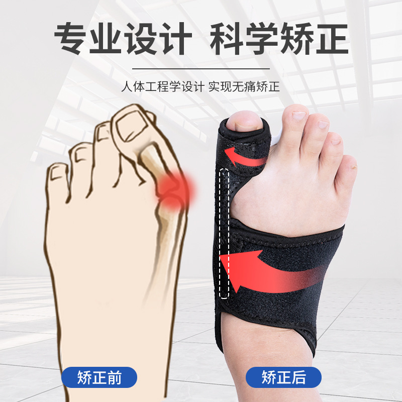 Korektor ibu jari valgus, korektor jari kaki besar Lengan Perawatan tulang kaki, penyokong kaki ortopedi, tali depan Velcro