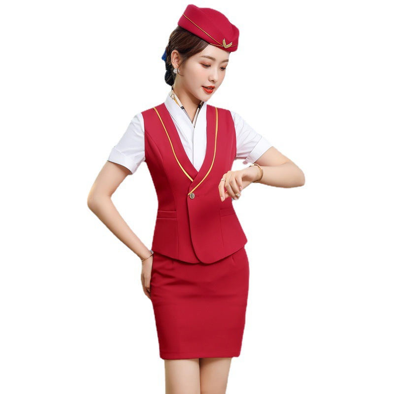 China Southern Airlines pramugari seragam wanita setelan profesional rompi setelan rok pendek rel kecepatan tinggi hotel meja depan ahli kecantikan pakaian kerja rompi