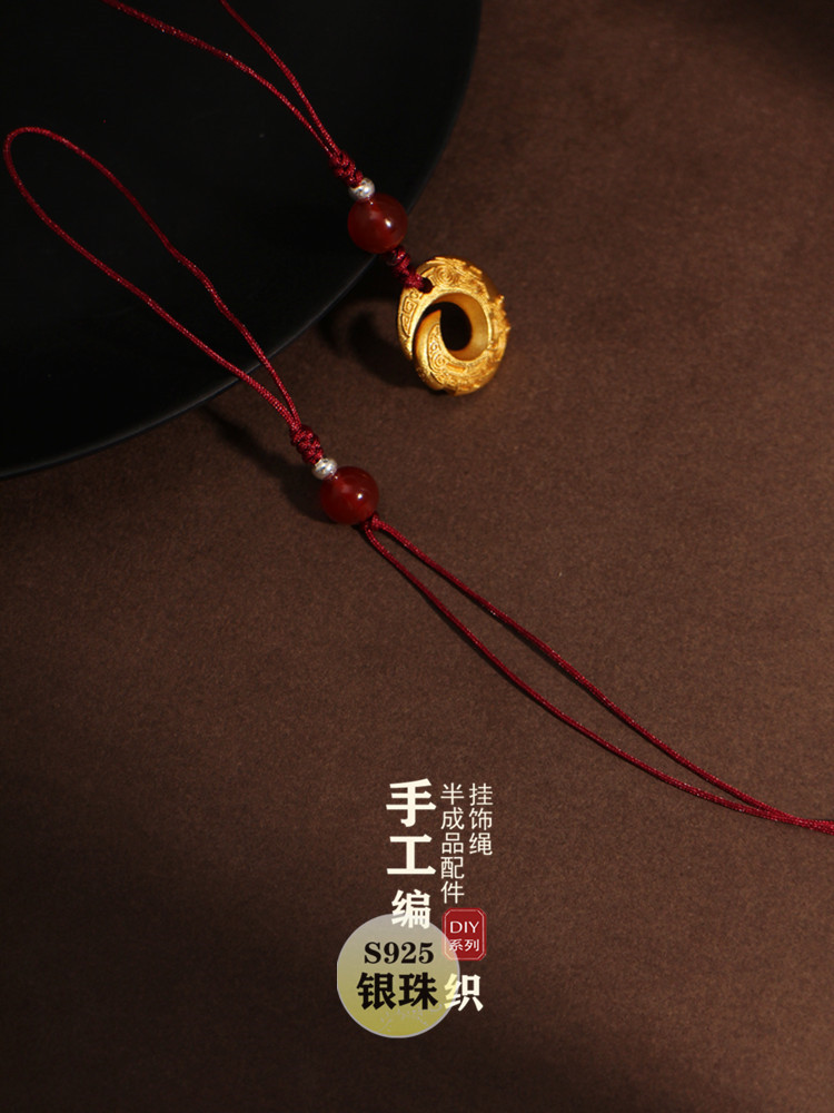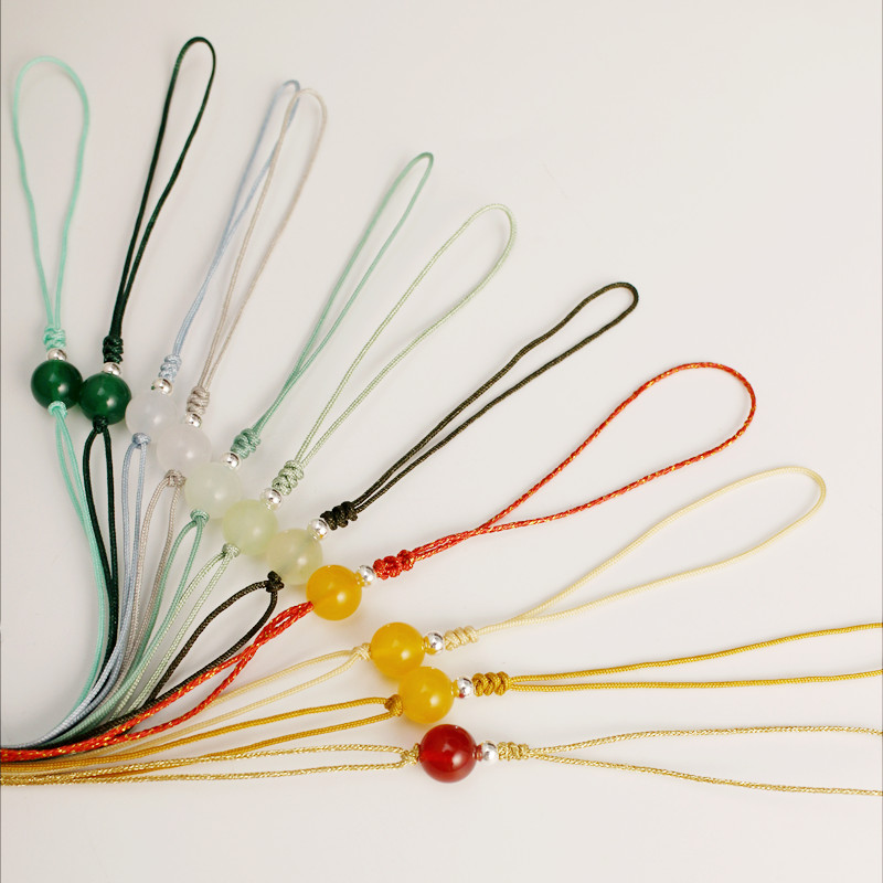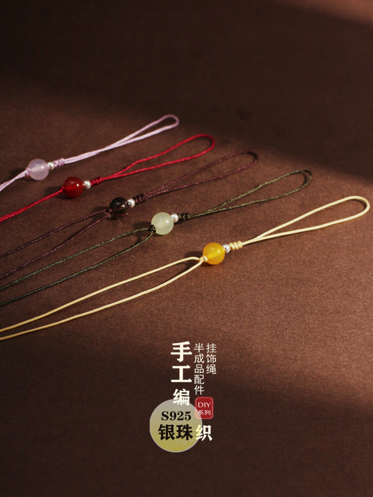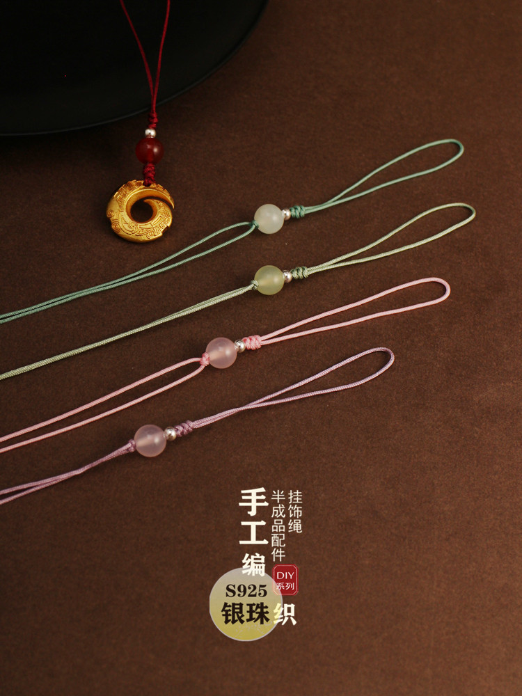 Pe Xingyue Tali Gantungan Ponsel Tali Gantungan Manik-manik Perak Produk Setengah Jadi Produk Emas Giok Giok dengan Tali Gantungan Mobil Buatan Tangan