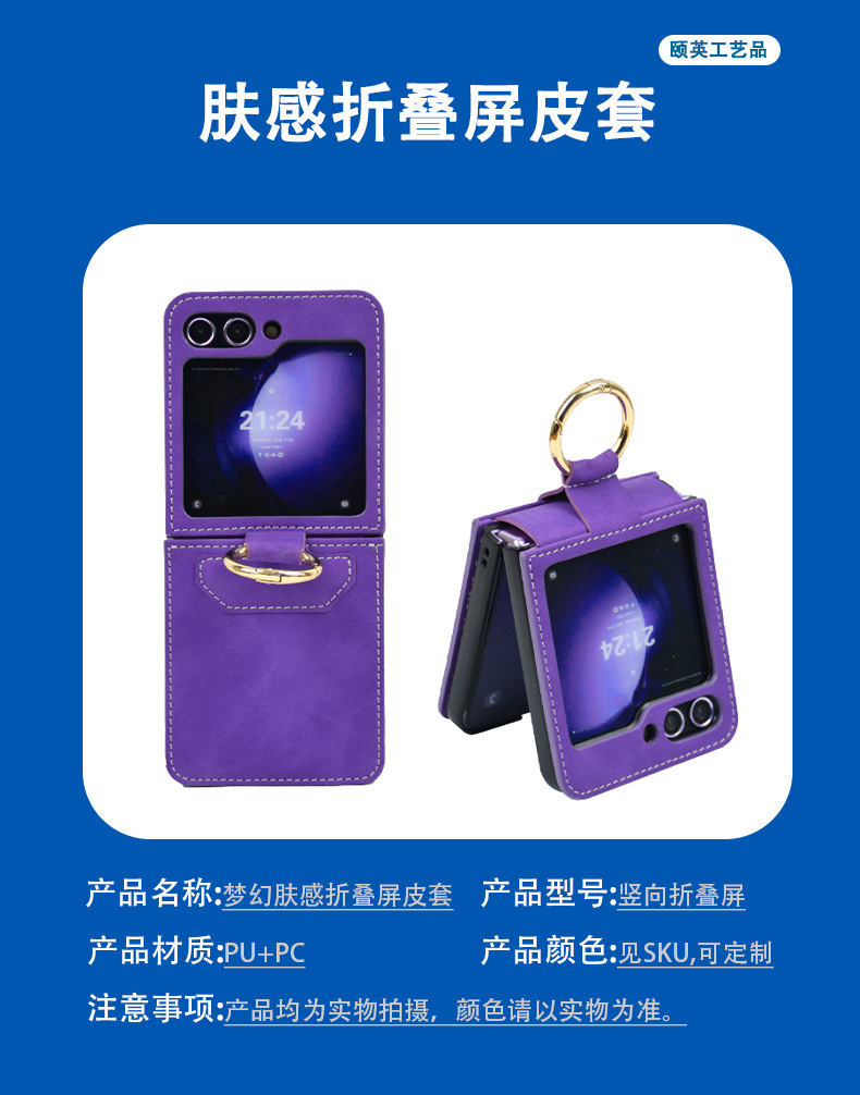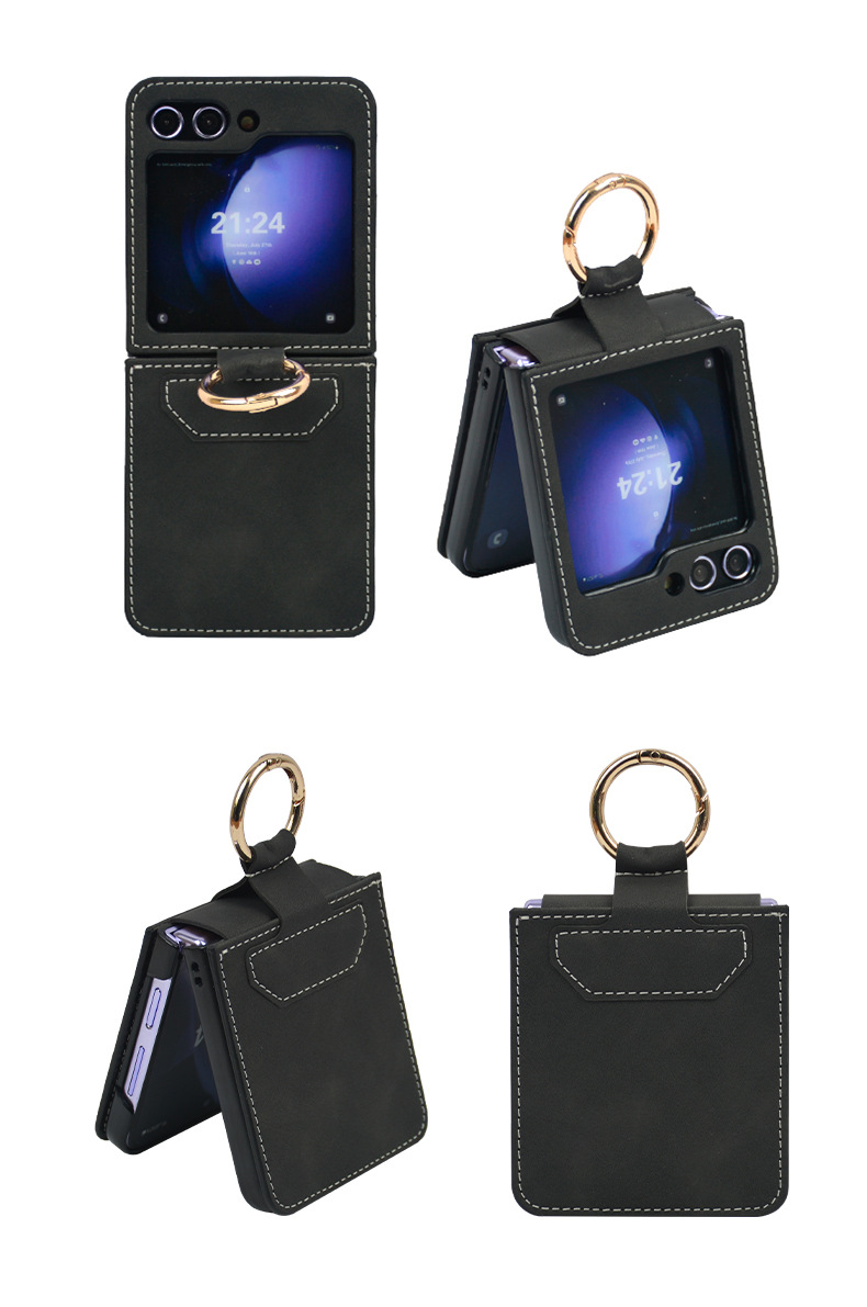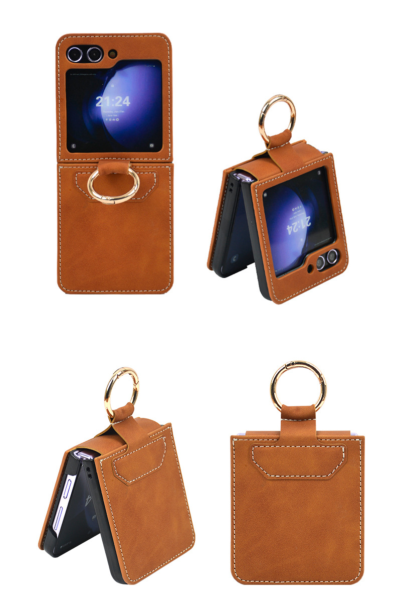 Casing ponsel Samsung ZFlip6 dengan tekstur kulit, dapat digunakan di luar negeri, penyangga layar lipat N3Flip, pelindung ponsel