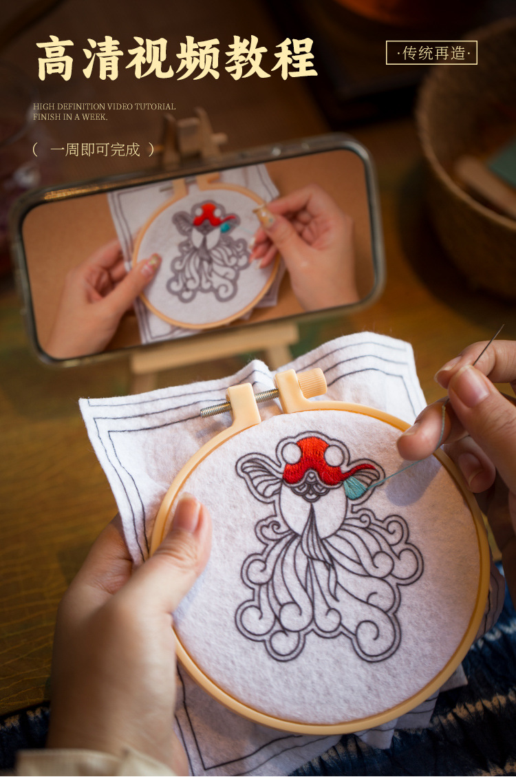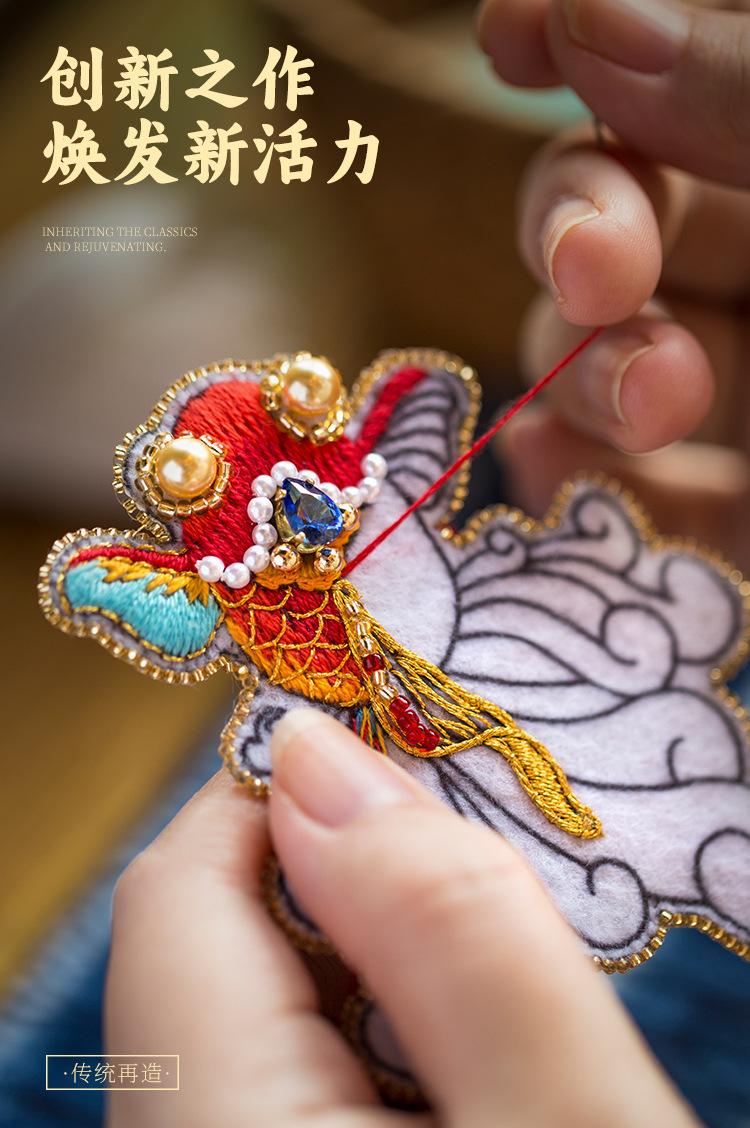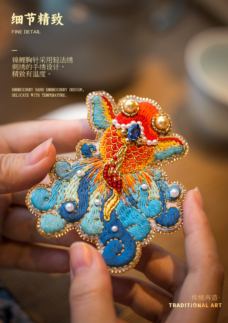 Bordir Perancis buatan tangan diy bahan paket gaya Cina keberuntungan ikan koi bros pakaian aksesoris hadiah kreatif