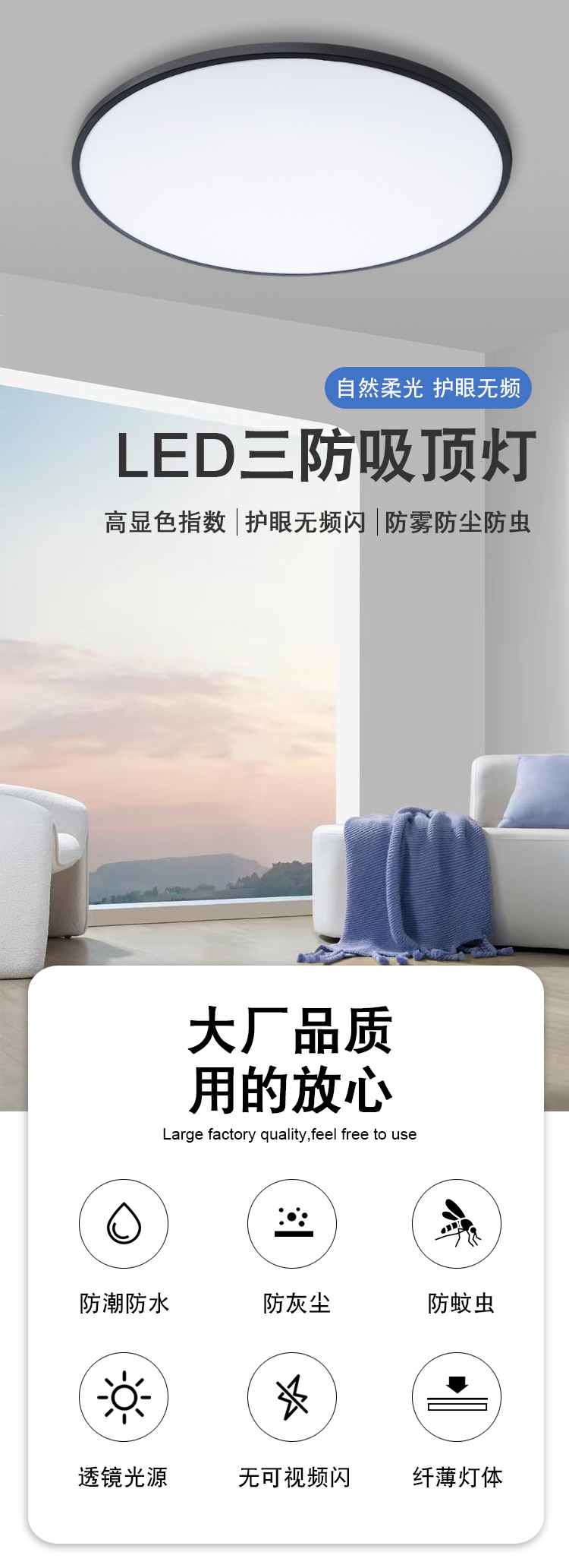Lampu led plafon sangat tipis, lampu utama ruang tamu, kamar tidur bulat, lorong, balkon, koridor, modern, sederhana, tiga tahan, led, grosir