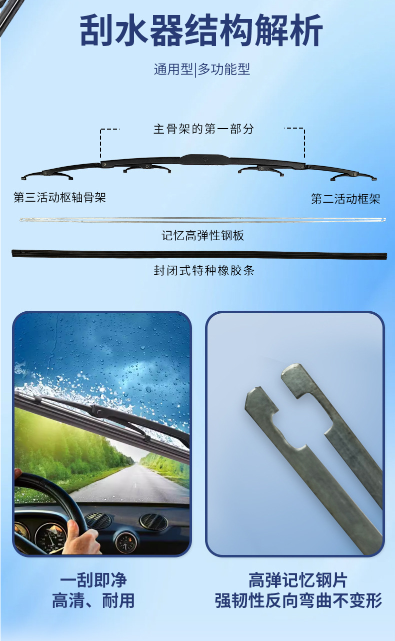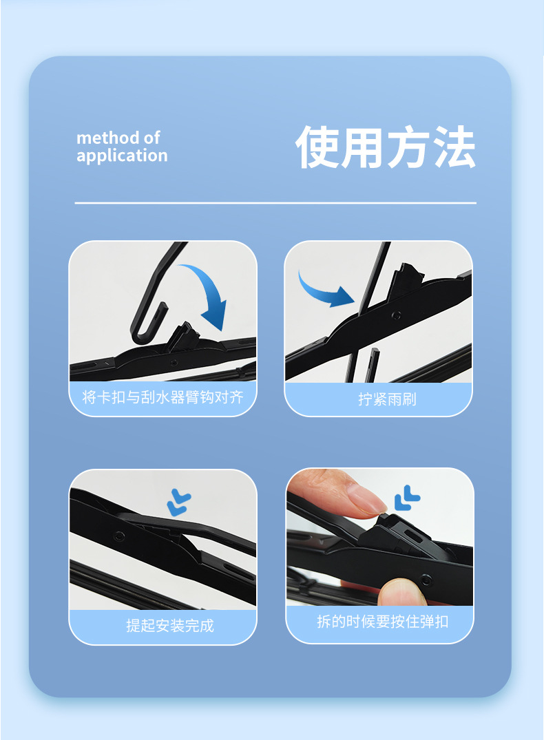 Penjualan langsung pabrik suku cadang mobil, bilah wiper model U dengan rangka, bilah wiper rangka logam, lengan wiper, dan pengikis air.