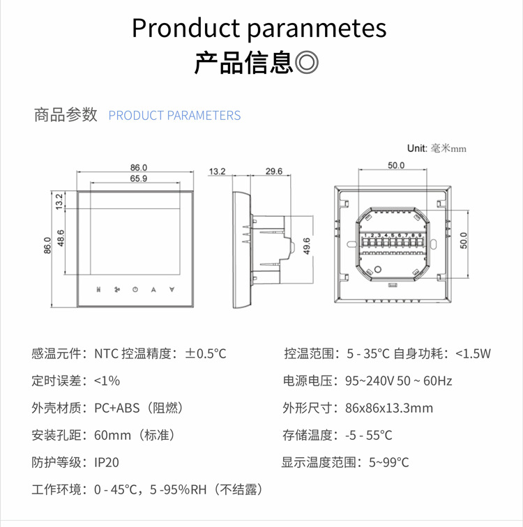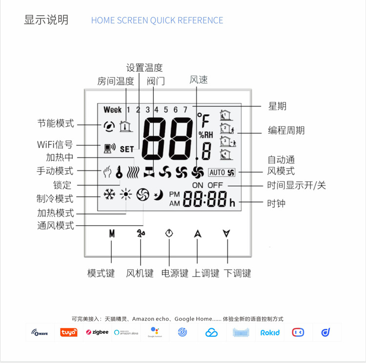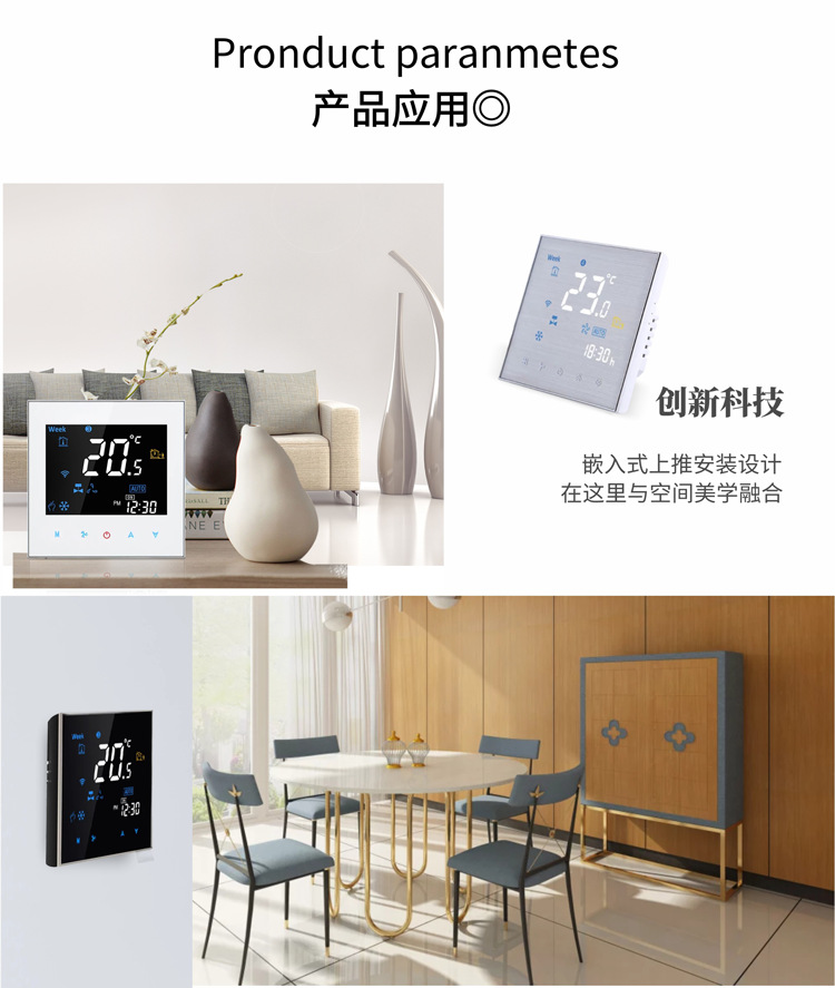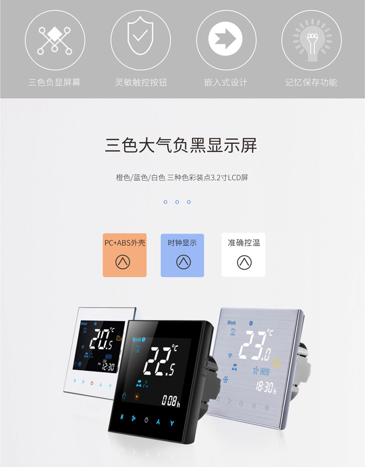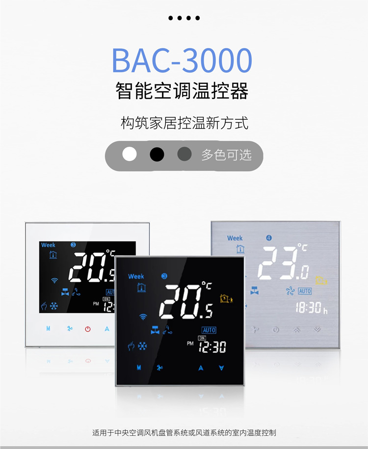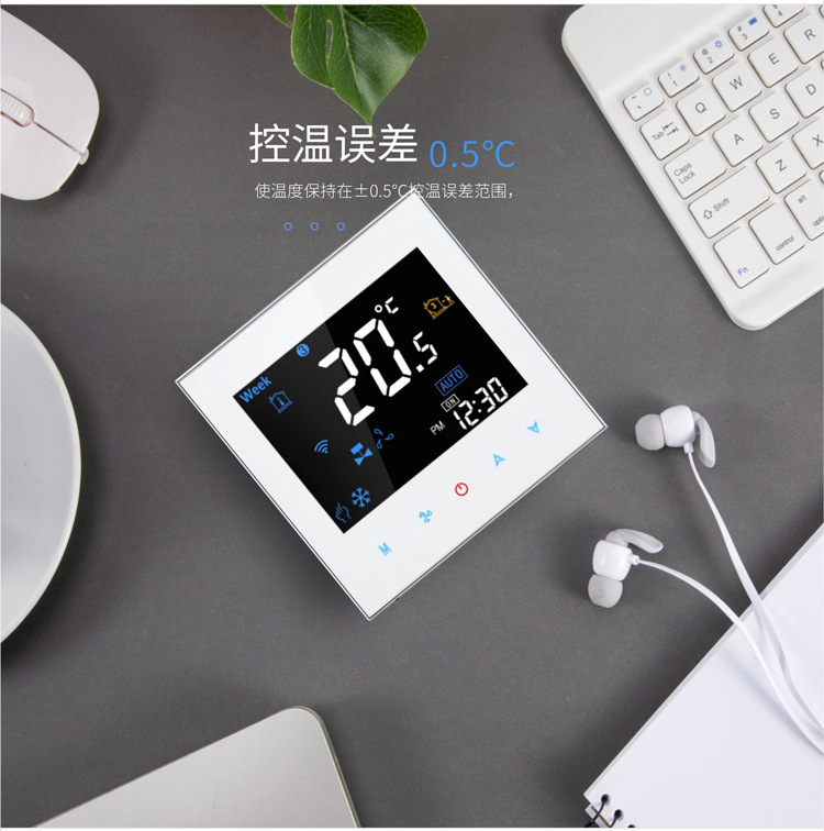 Panel termostat AC sentral digital cerdas dengan layar, WiFi rumahan, sakelar fan coil, pengontrol kabel, suhu konstan