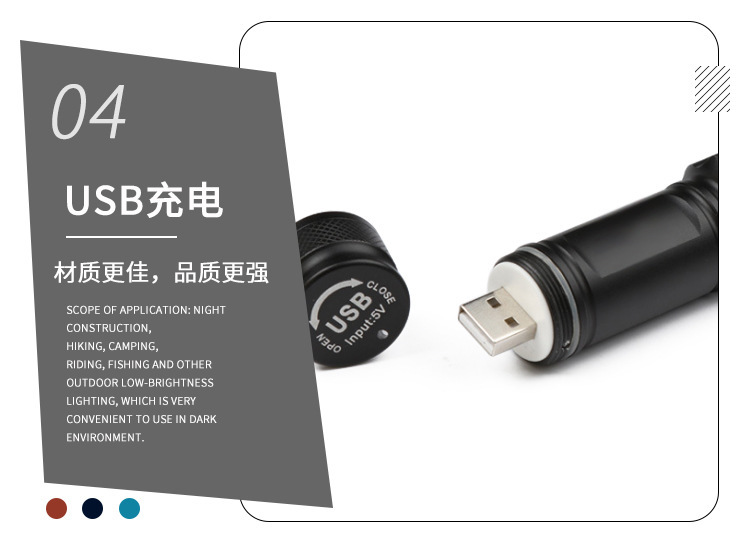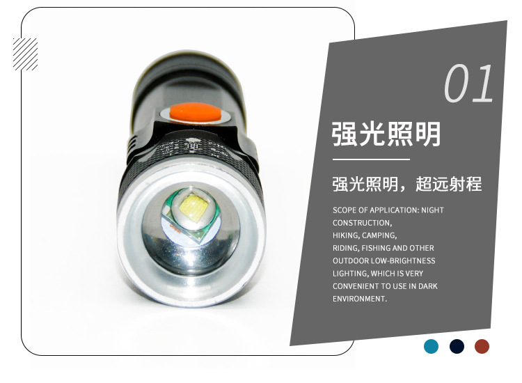 功能:强-弱-爆闪 长按开关SOS