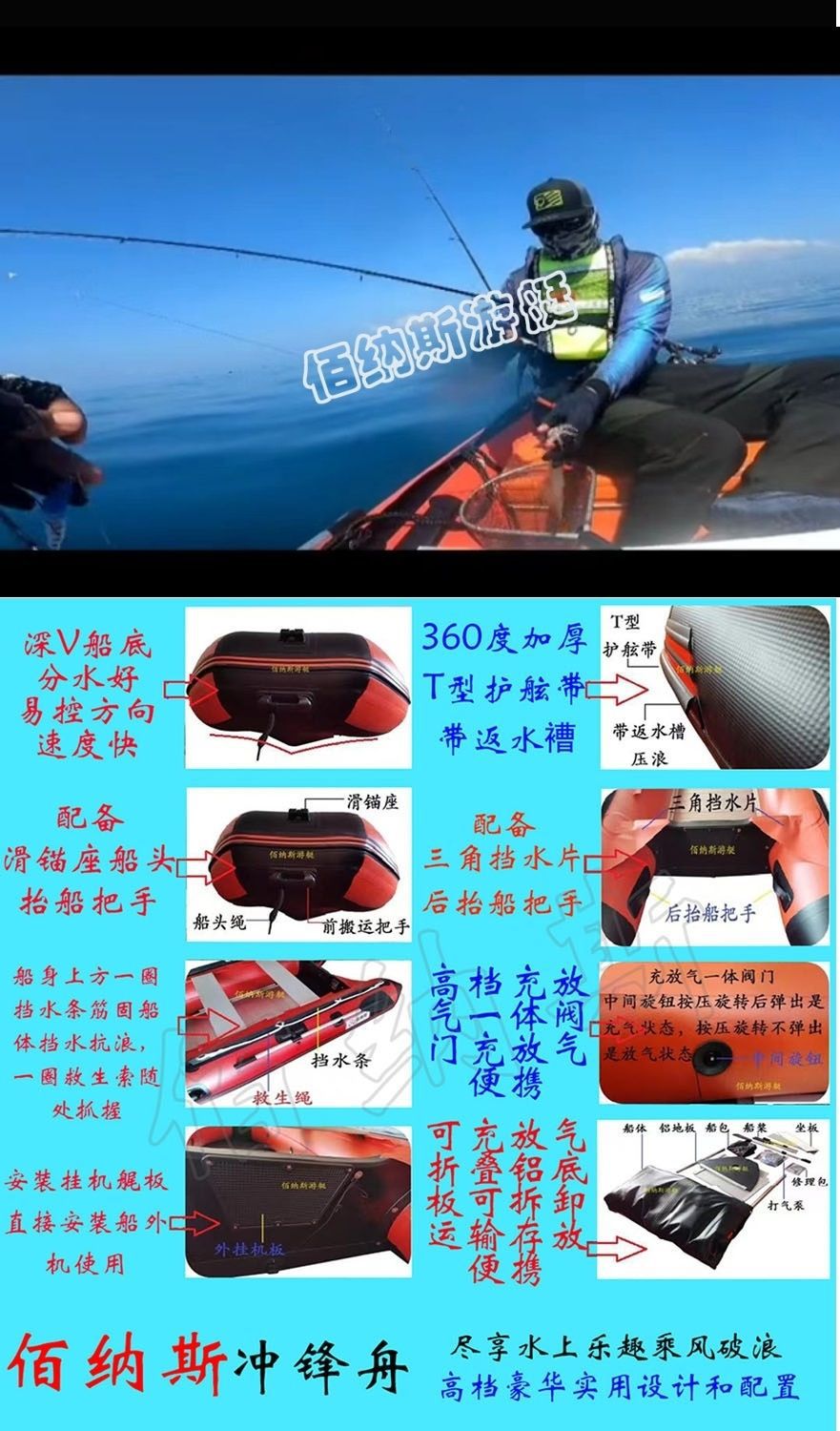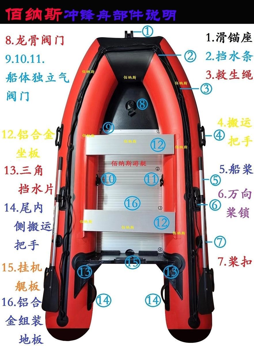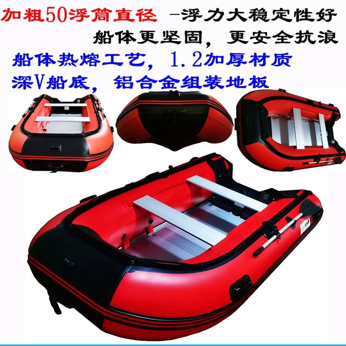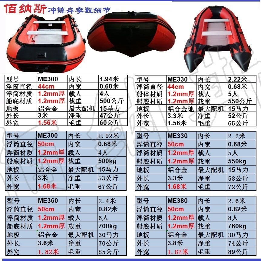 冲锋舟橡皮艇加厚加粗钓鱼船充气艇皮划艇船外机应急救援艇