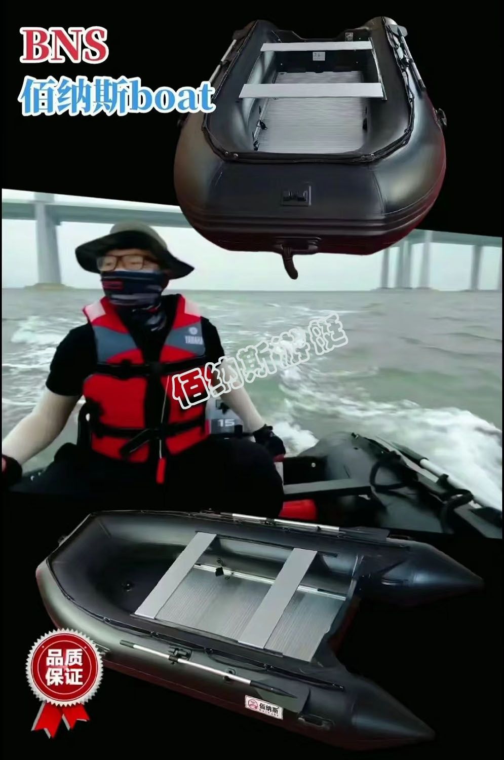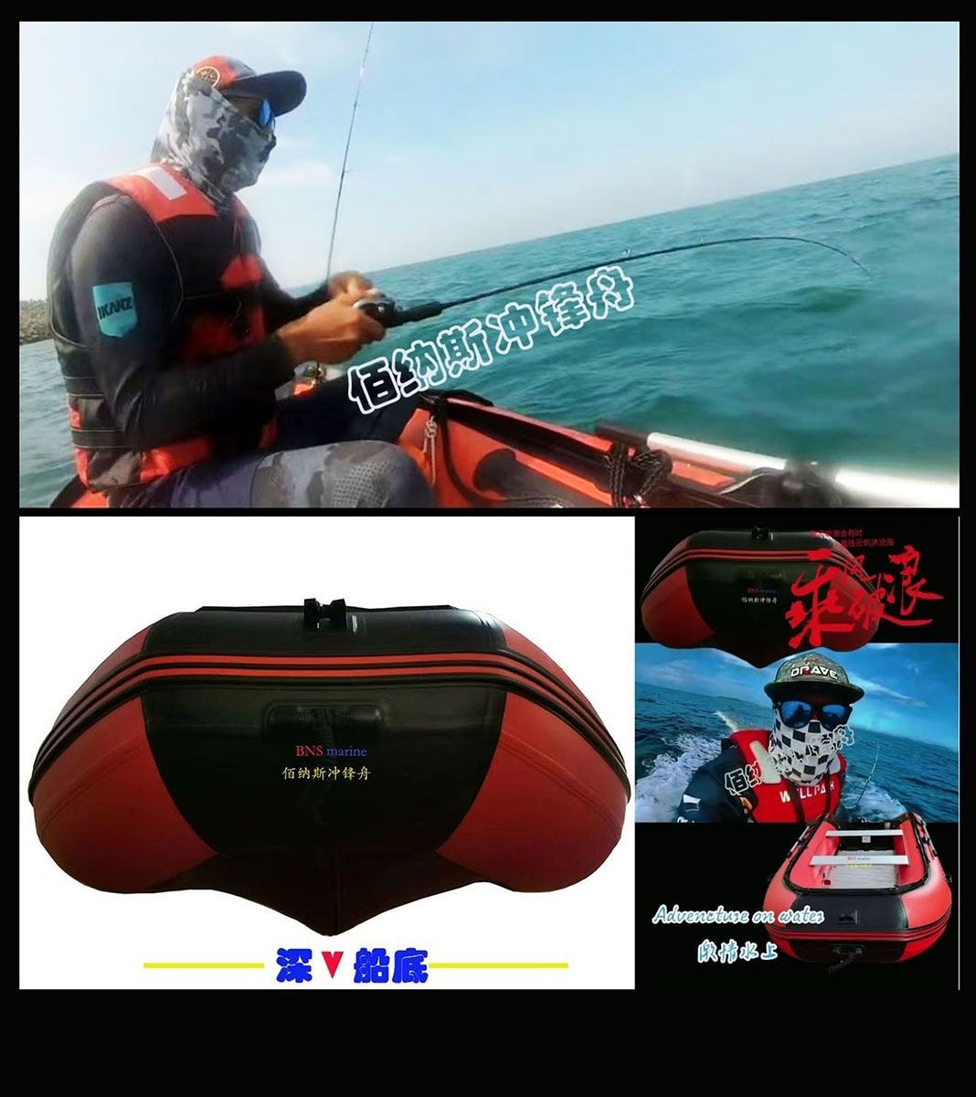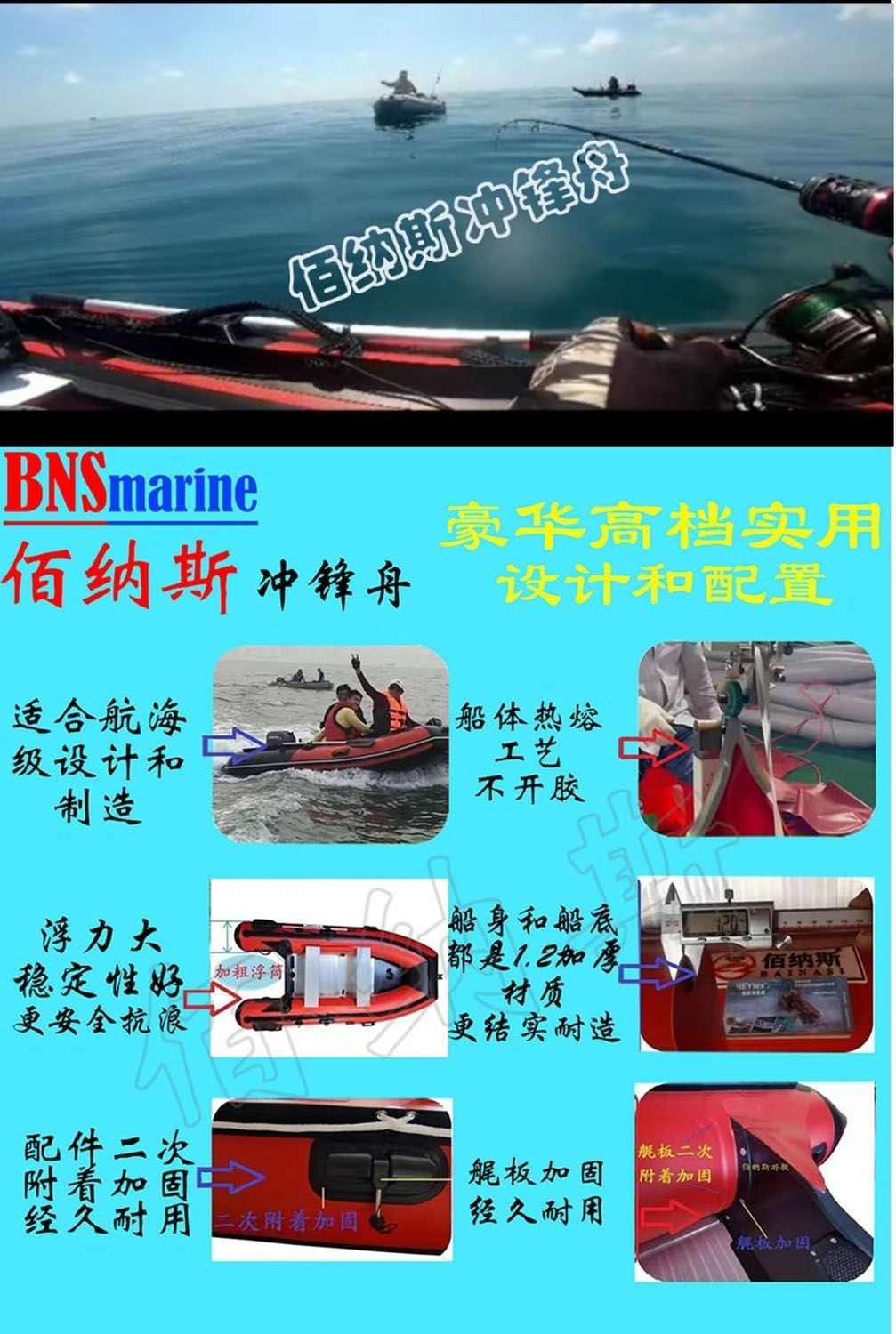 冲锋舟橡皮艇加厚加粗钓鱼船充气艇皮划艇船外机应急救援艇