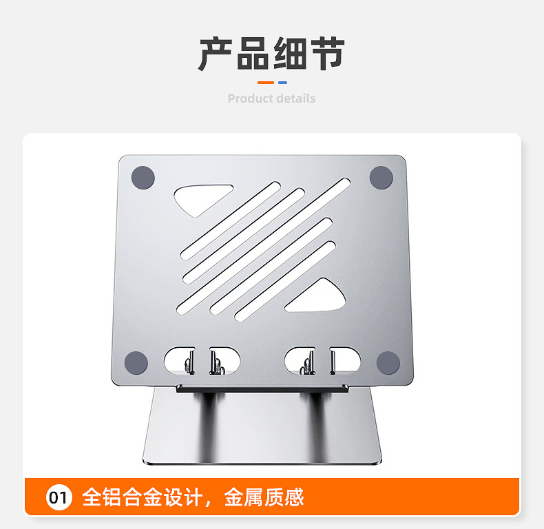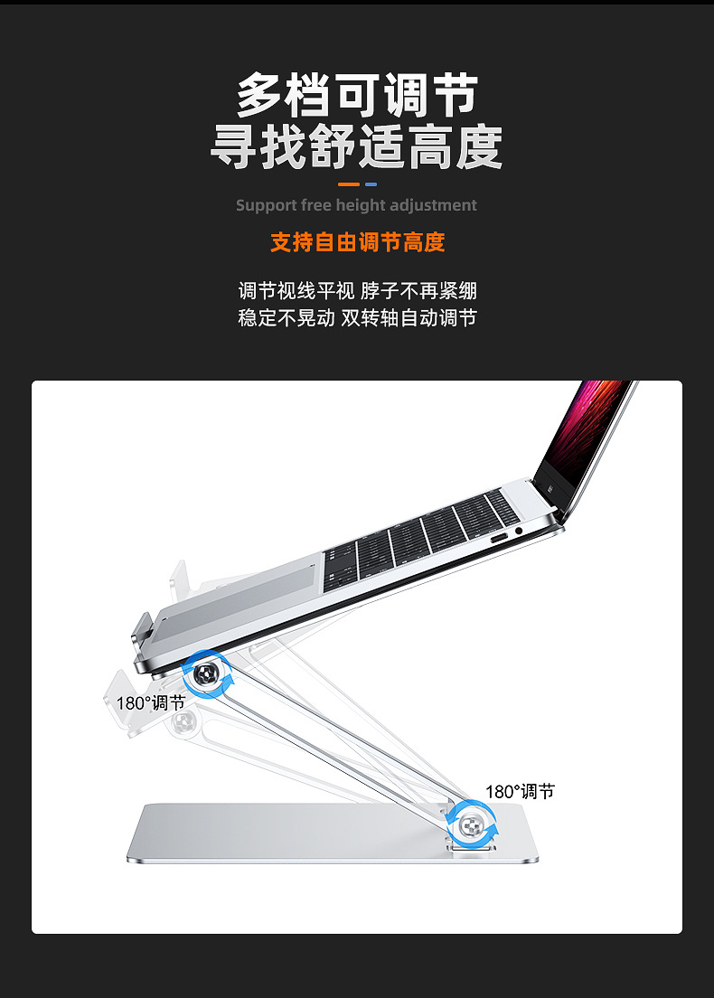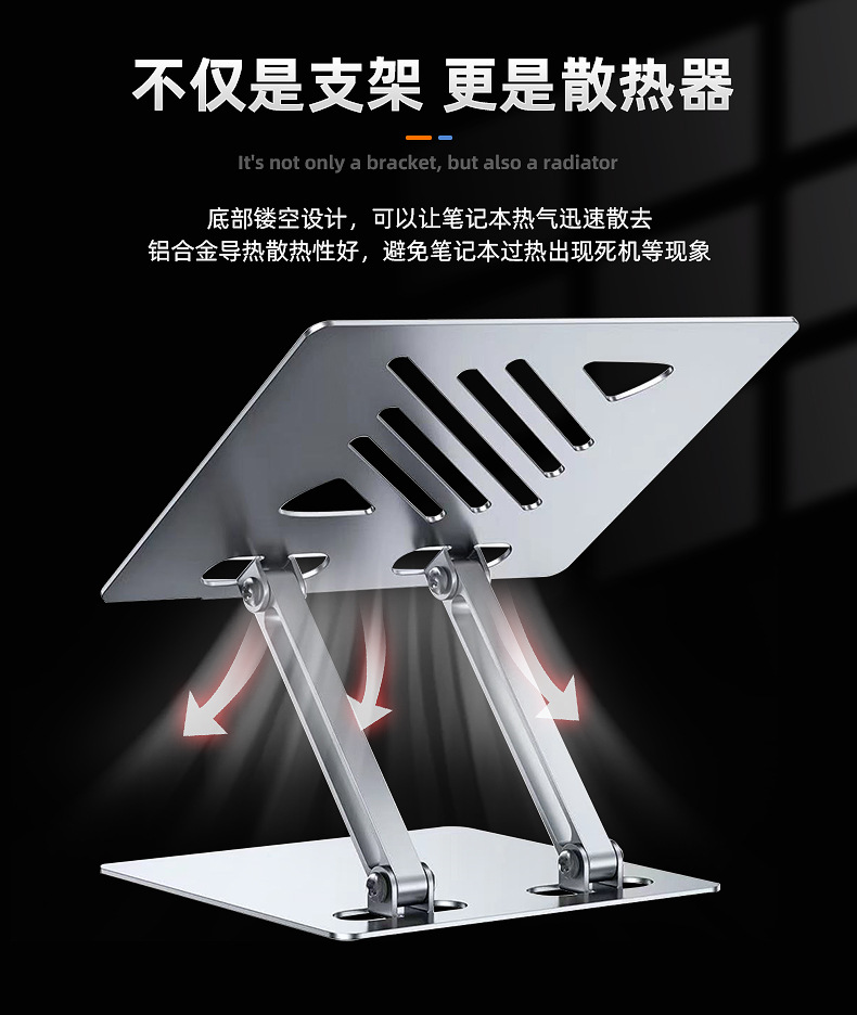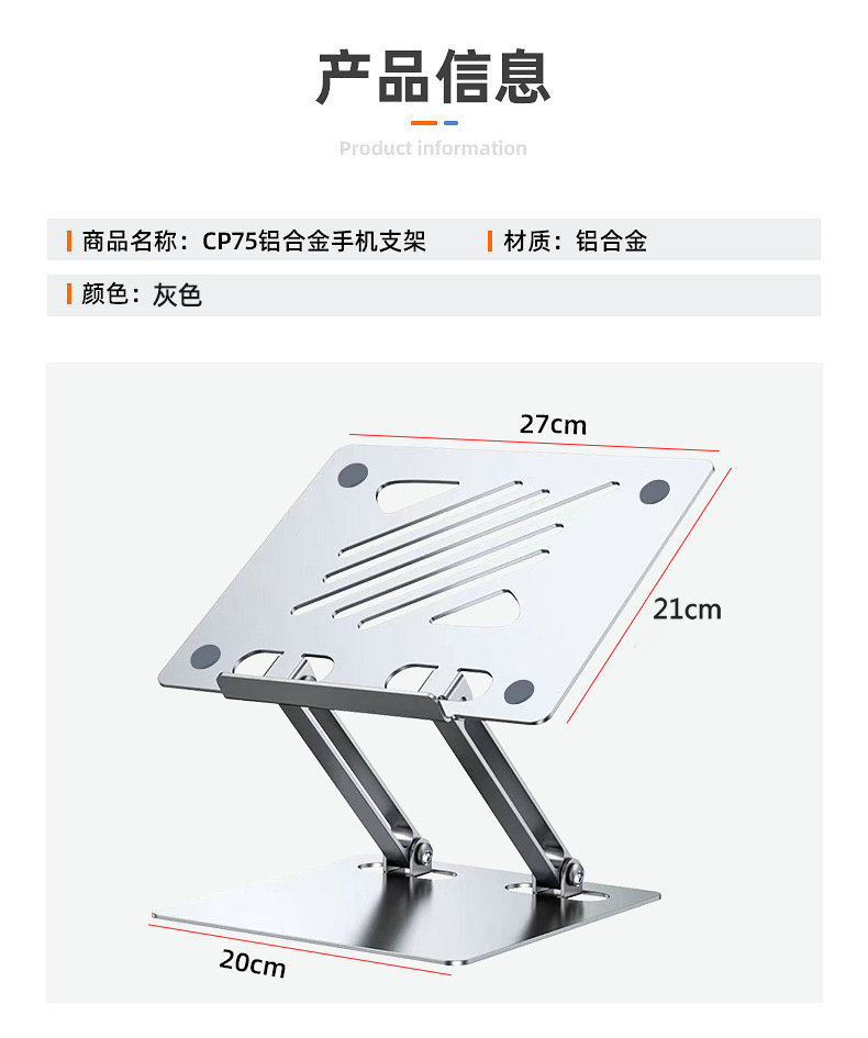 Stands pendingin laptop CP75 berlapis ganda, dapat dilipat, ketinggian dapat disesuaikan, terbuat dari paduan aluminium.