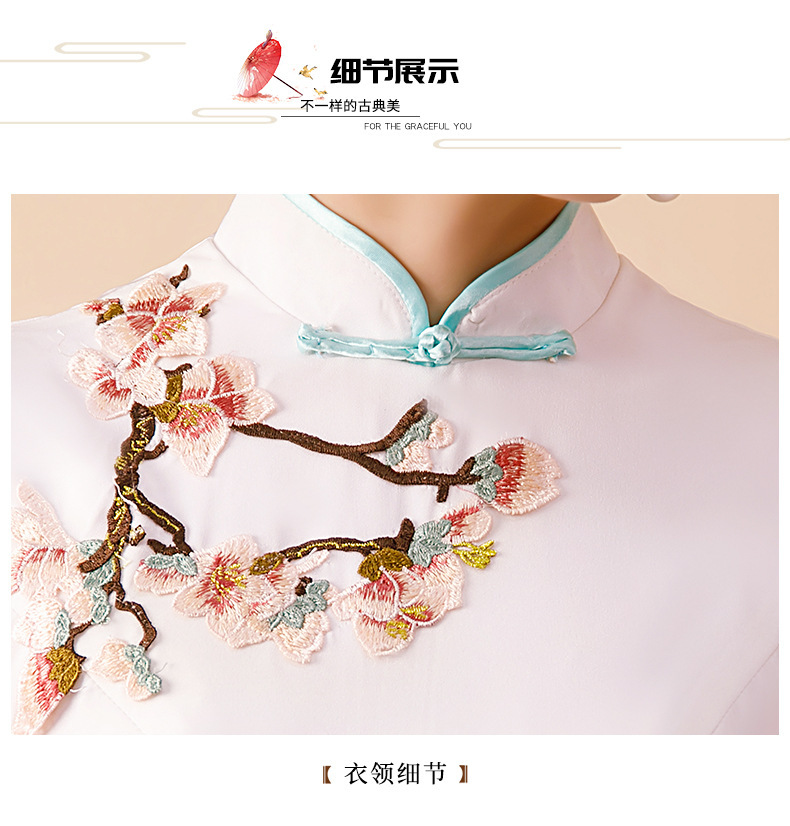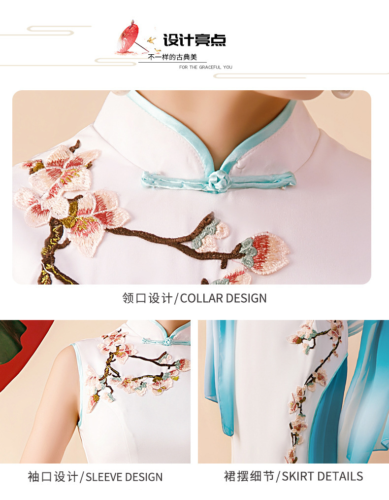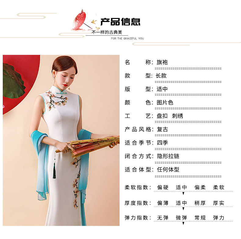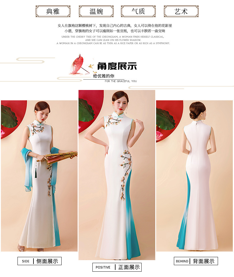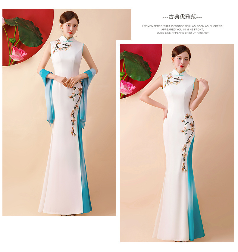 Gaun cheongsam wanita dengan performa yang lebih baik, model panjang dengan kerah berdiri, melangsingkan, gaun malam bordir modis untuk musim semi dan musim gugur.