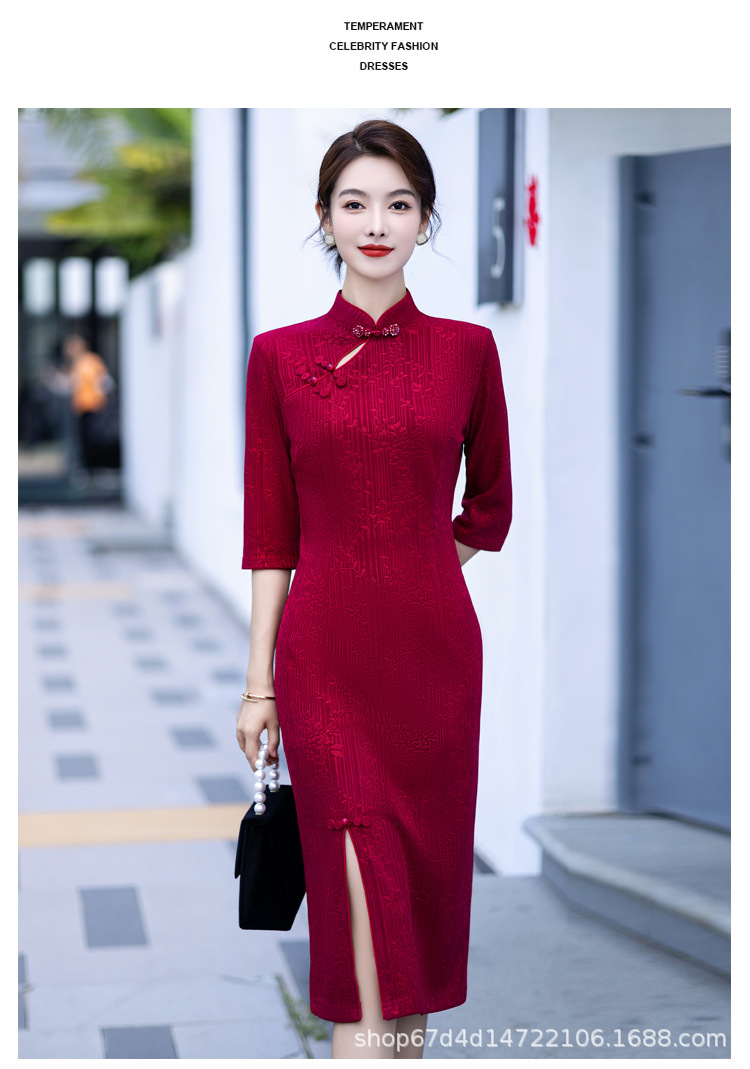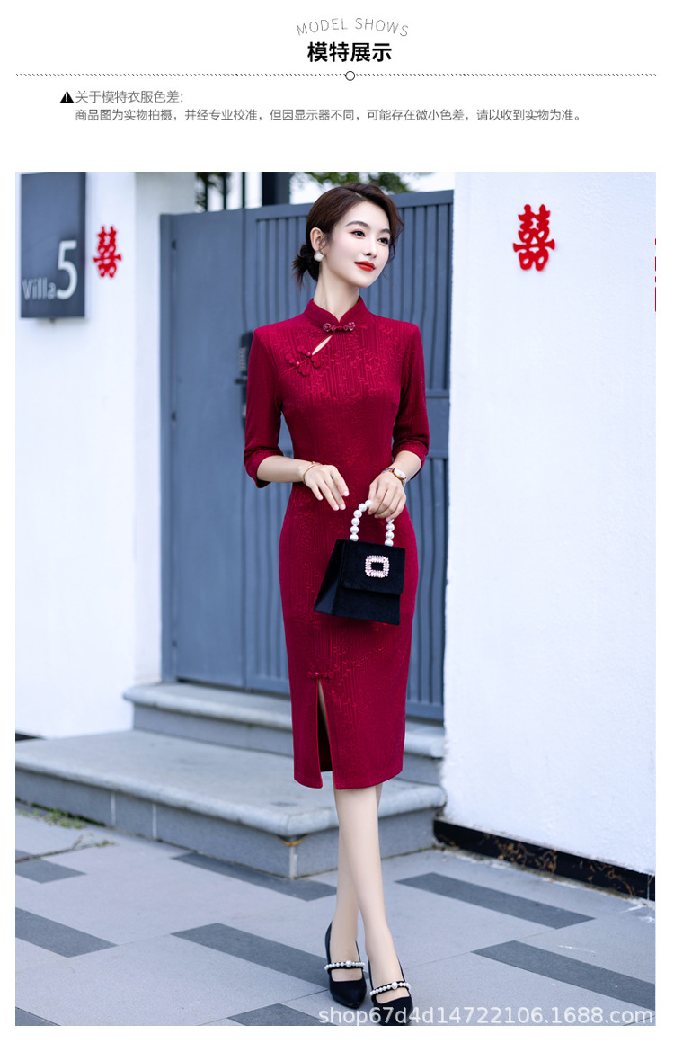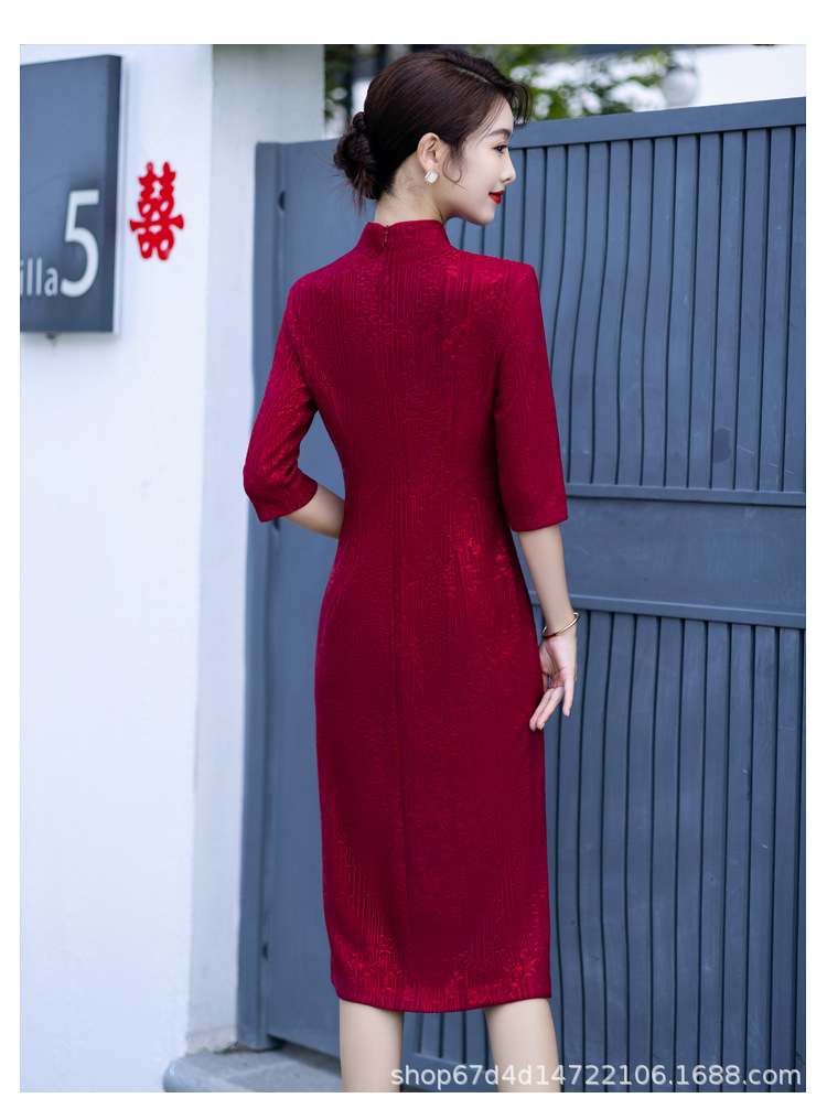 Gaun pernikahan cheongsam baru 2024 Ibu kelas atas muda merah gaun pengantin ibu senang kecil Mulia Musim Semi dan musim panas