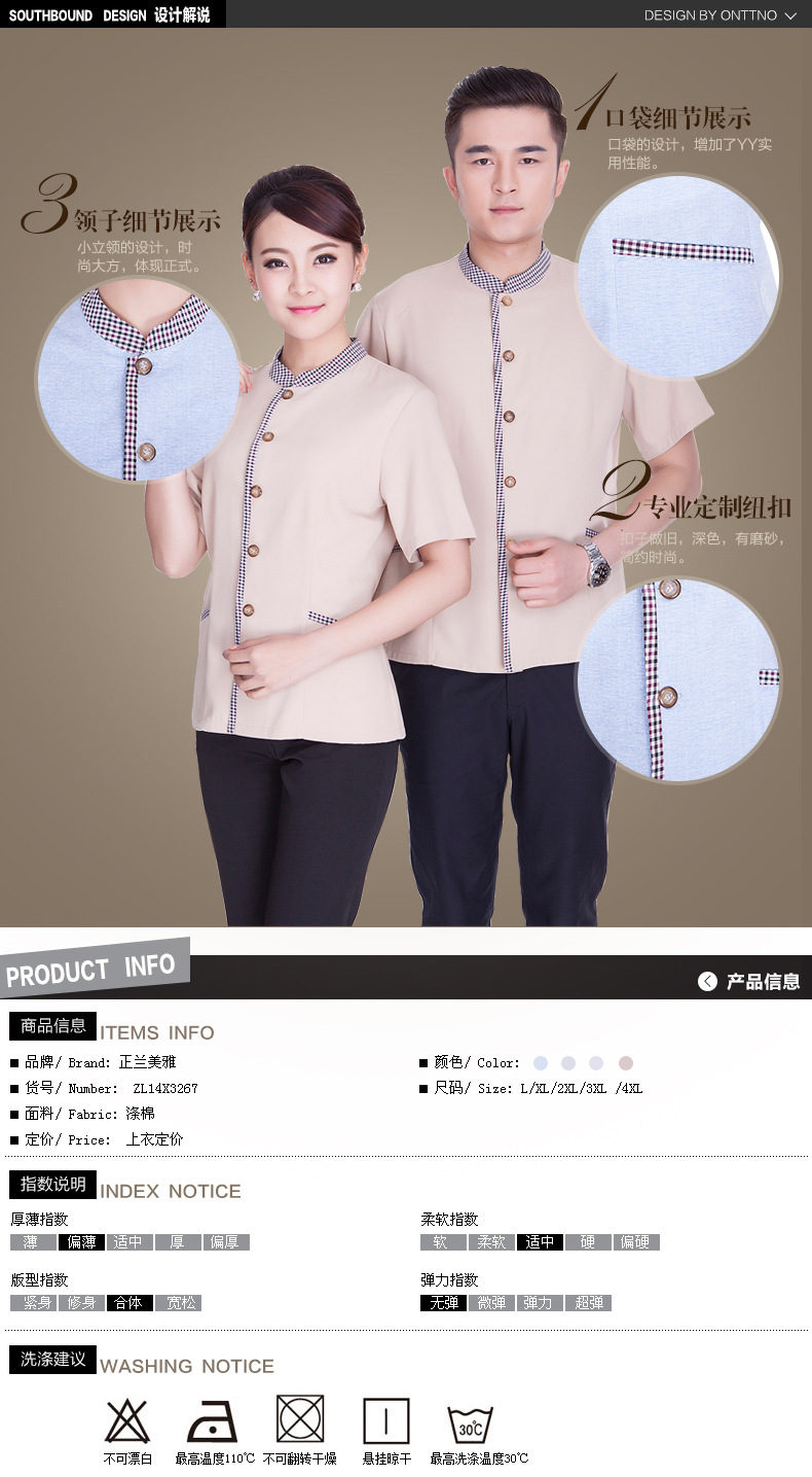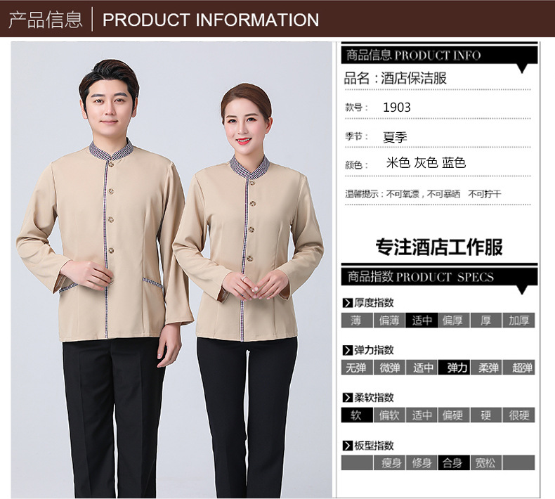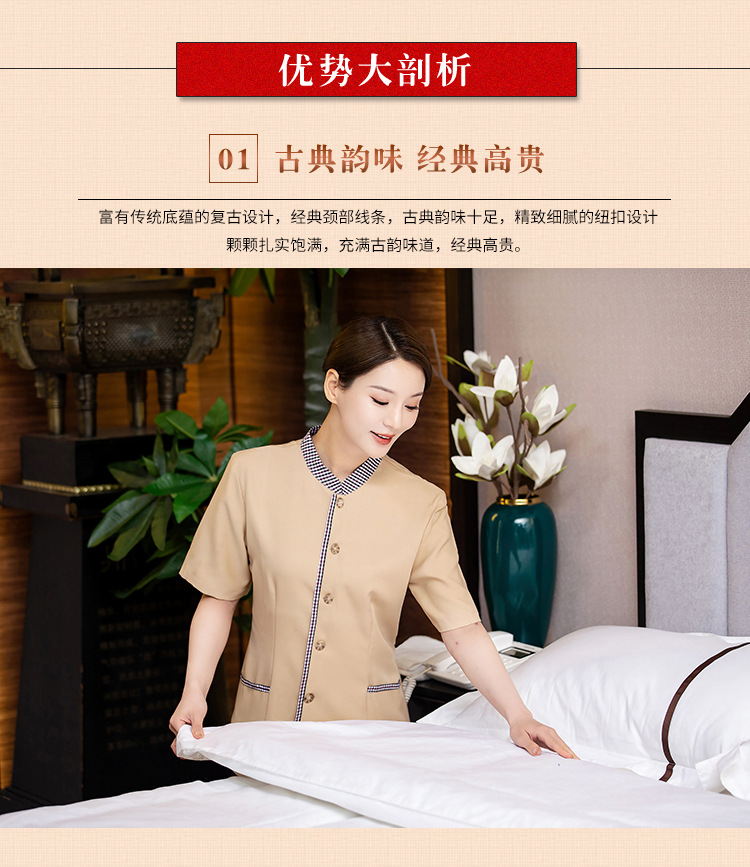 Pakaian pembersih lengan pendek, pakaian pembersih lengan pendek musim semi dan musim panas, pakaian kerja petugas hotel, seragam PA