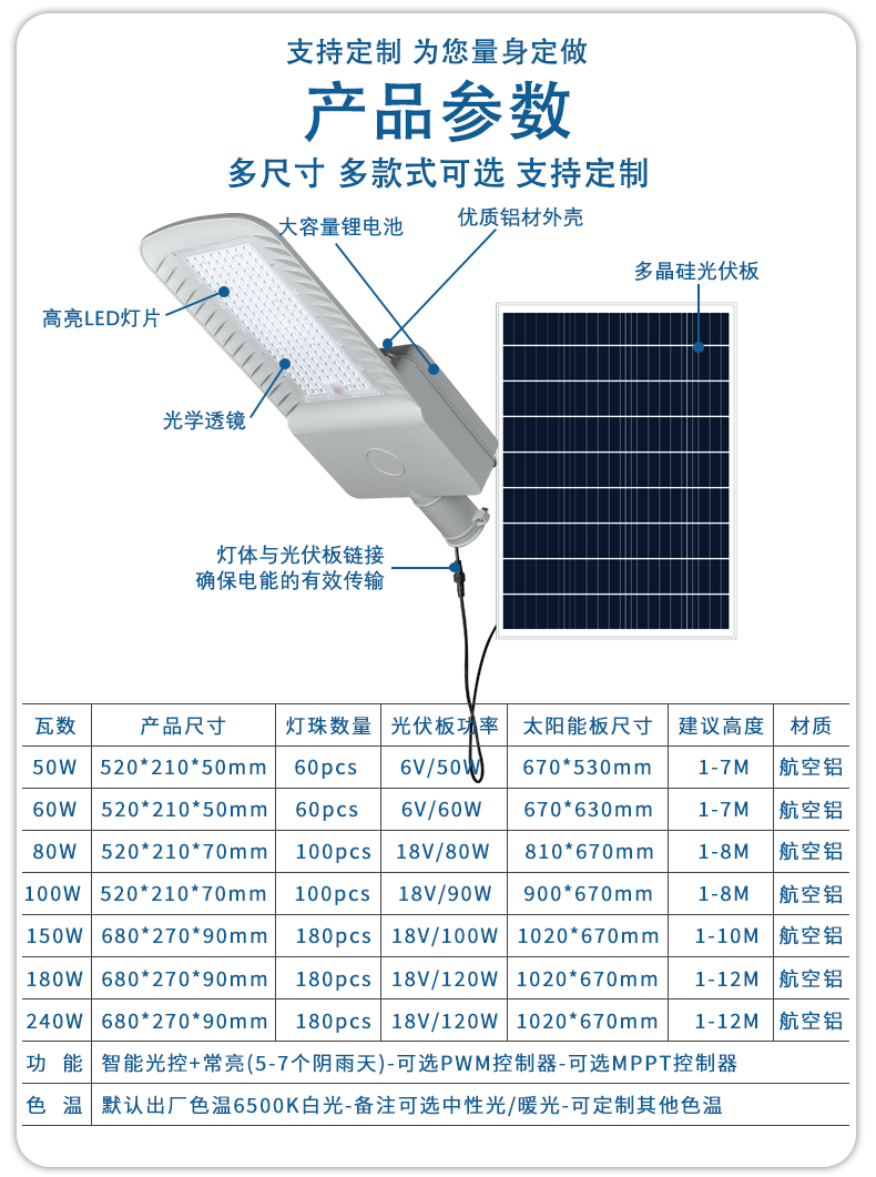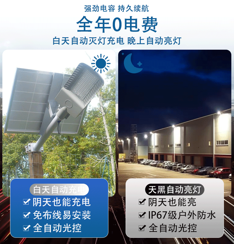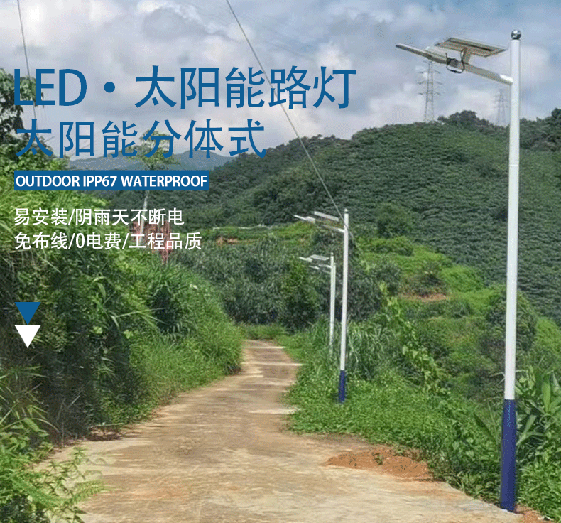 Lampu surya tipe split untuk daerah pedesaan baru, lampu taman, penerangan jalan tiang tinggi, 6 meter, super terang