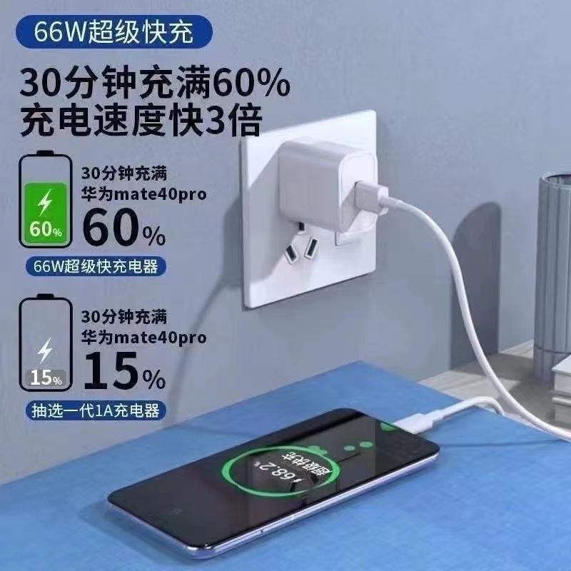 Cocok untuk kepala pengisi daya super cepat 66w, cocok untuk ponsel mate40pro, pengisi daya cepat USB yang sepenuhnya kompatibel, grosir.
