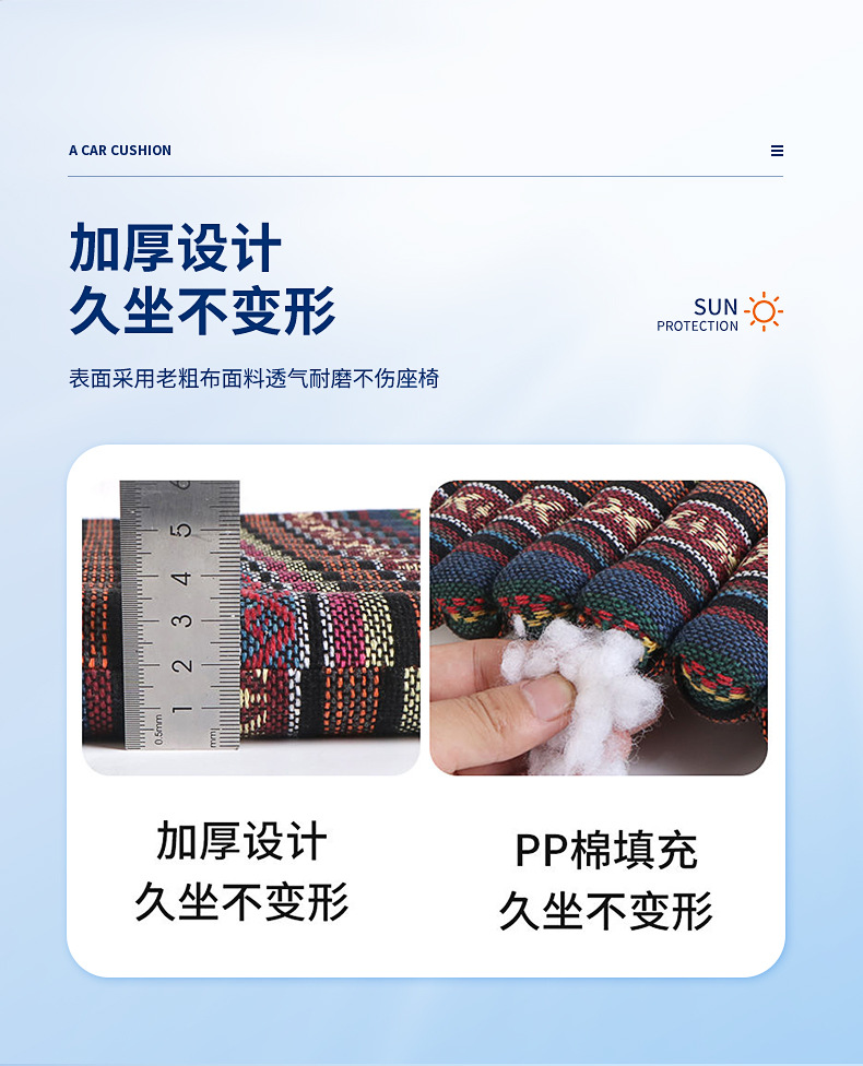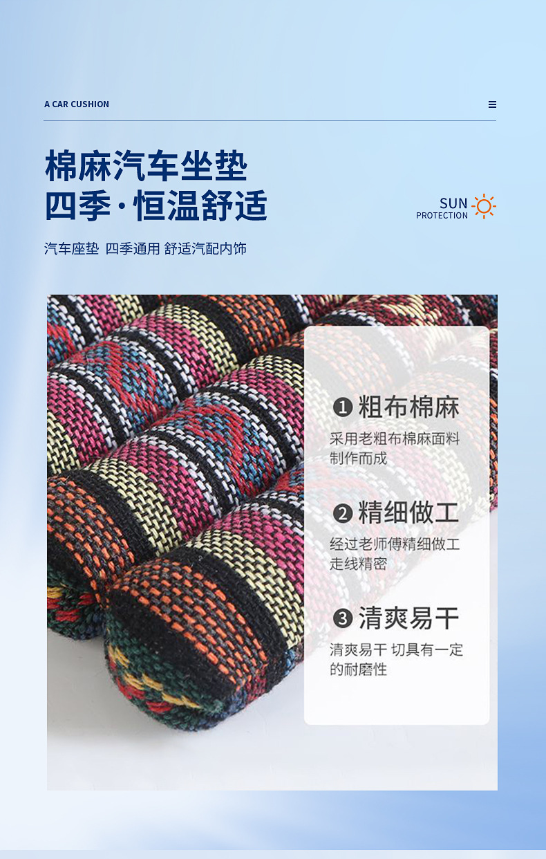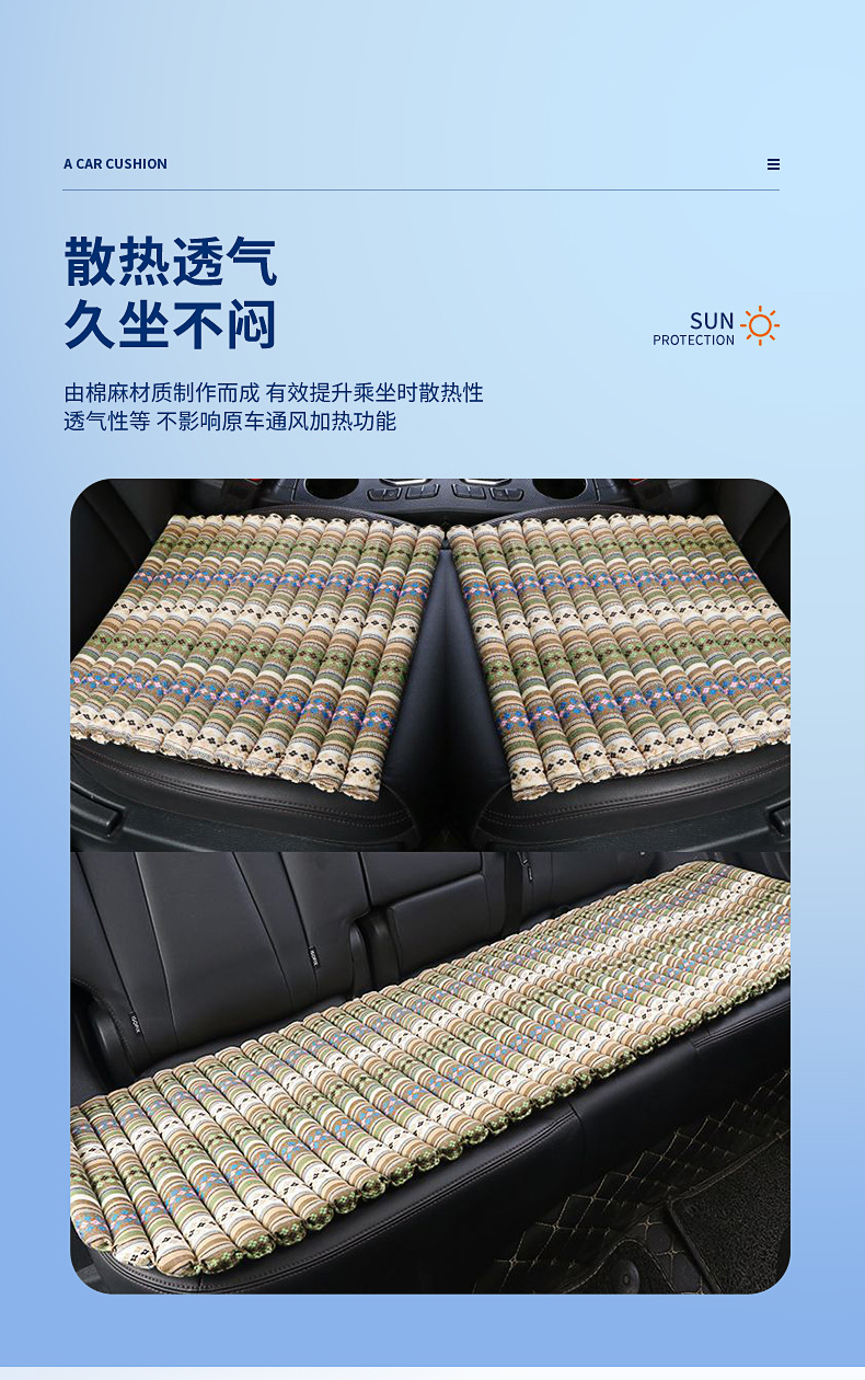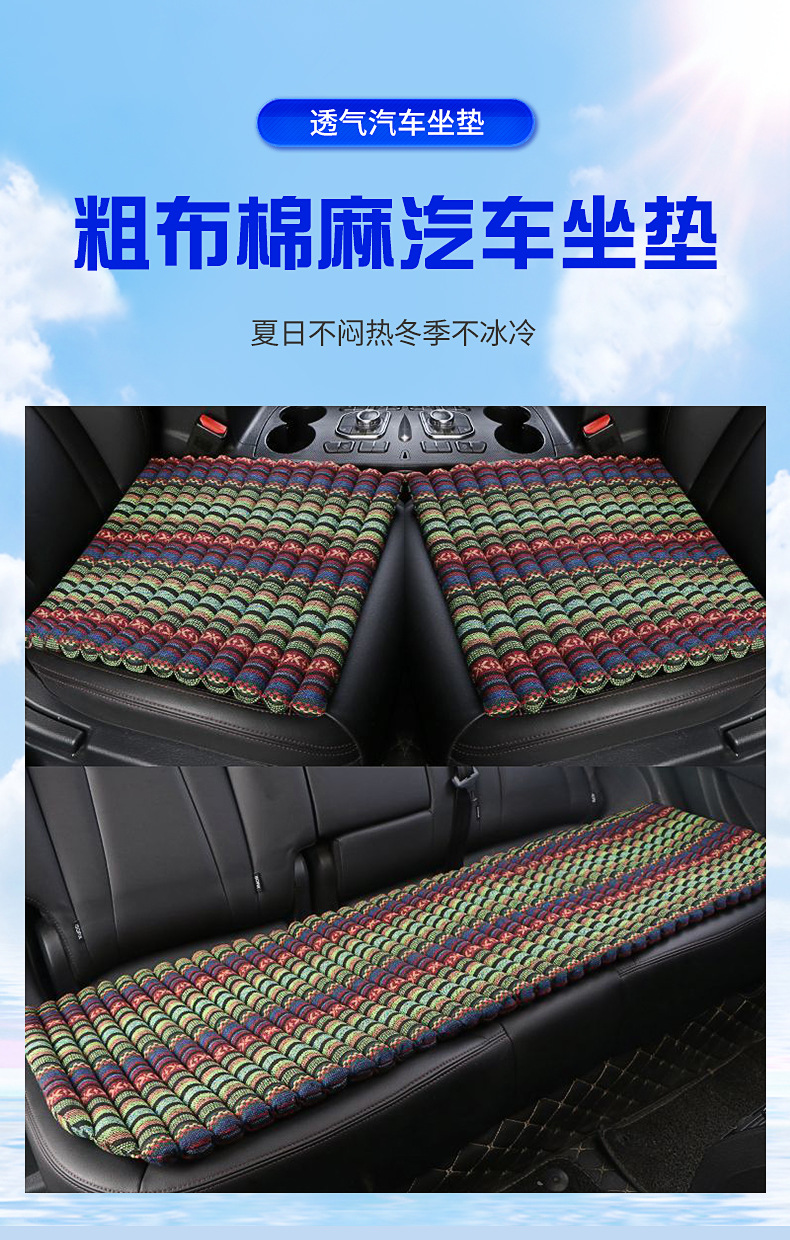 Bantal kursi mobil Linen bersirkulasi tiga potong, set empat musim universal bantalan rib gaya etnik rumah mobil penggunaan ganda bantal kursi grosir