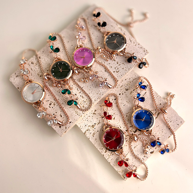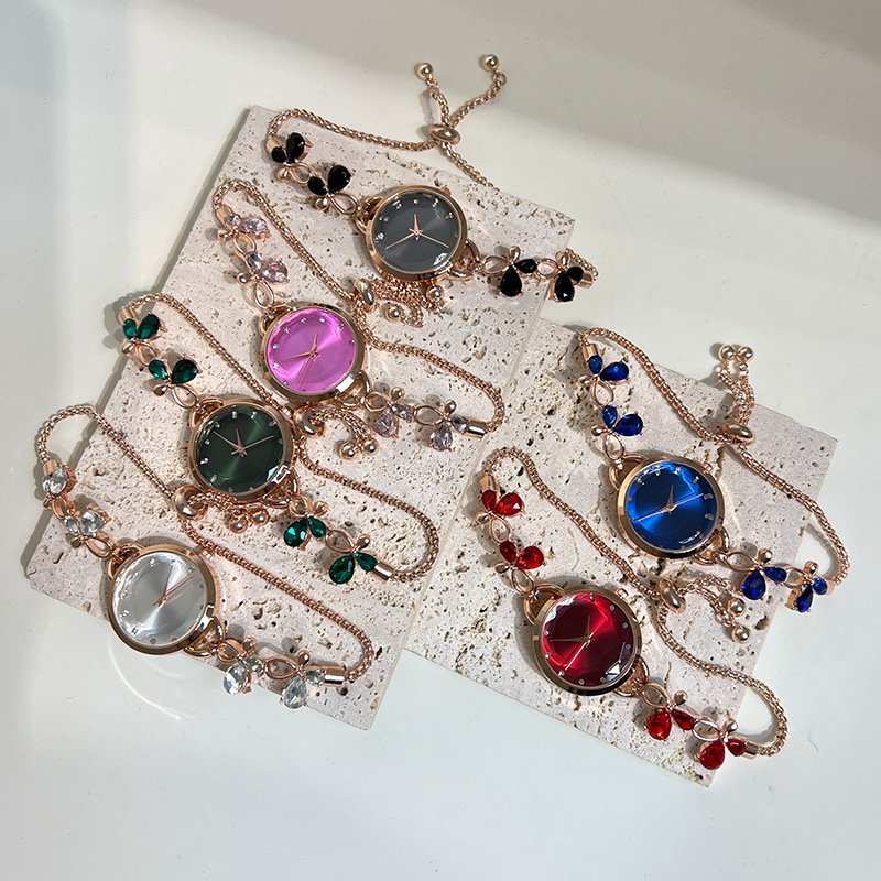 Jam tangan gelang modis jam tangan quartz biru dongker kupu-kupu bermutu tinggi wanita jam tangan mewah baru perdagangan luar negeri grosir