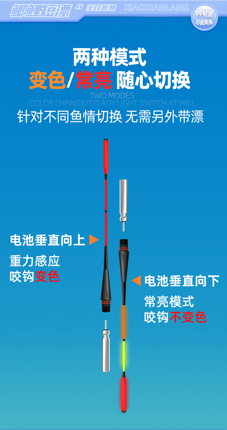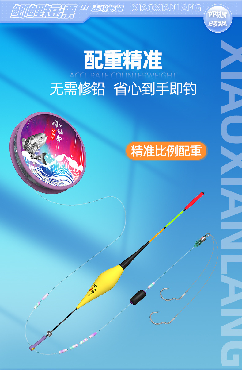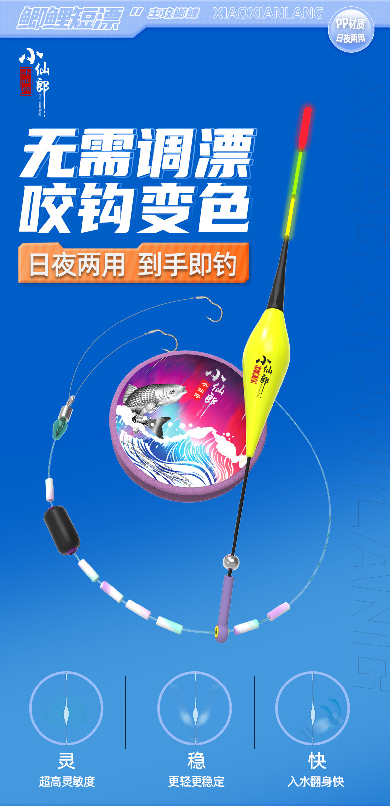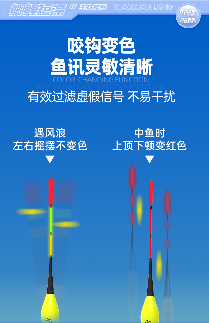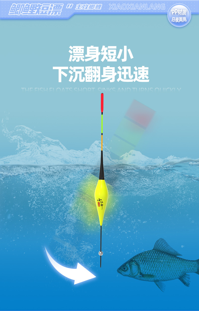 Set set pancing apung pendek ikan mas apung bercahaya elektronik, tidak perlu menyesuaikan pelampung, diikat dan diotak-otakkan secara otomatis kait ganda, sensitivitas tinggi Xiaoxianlang