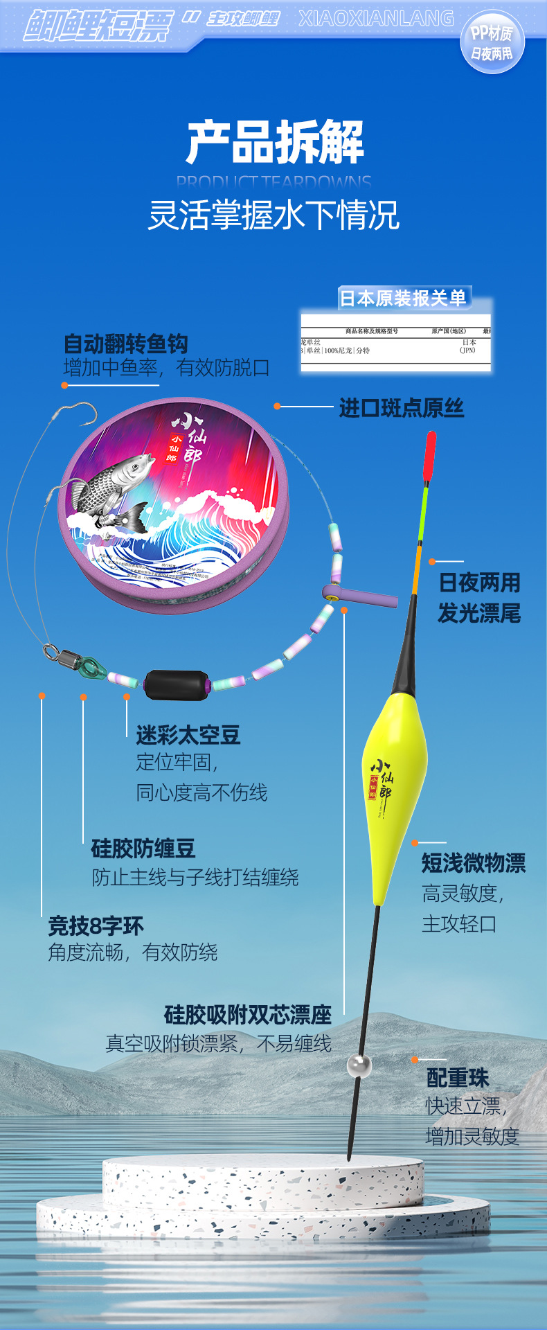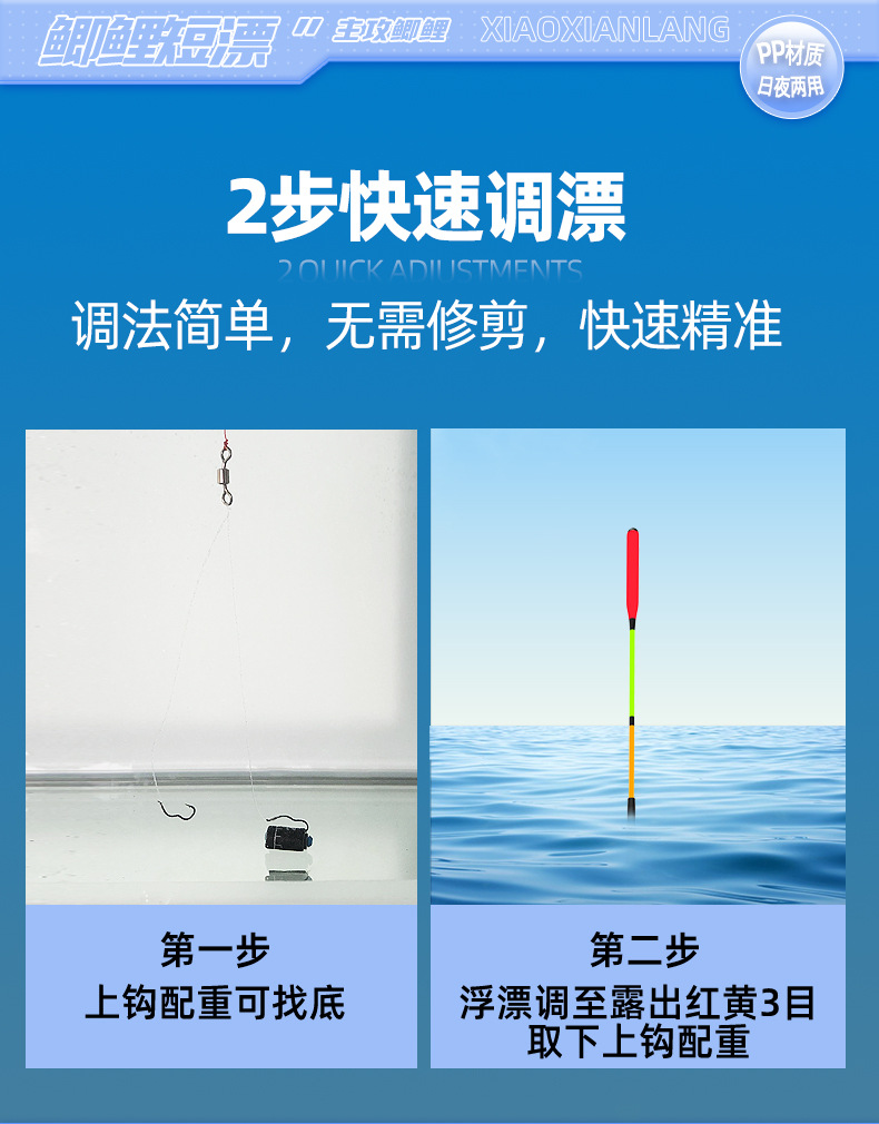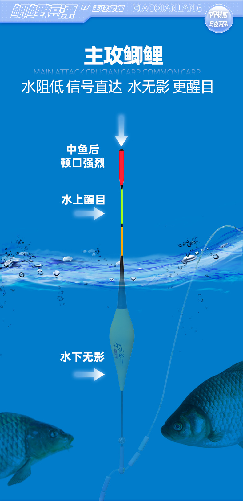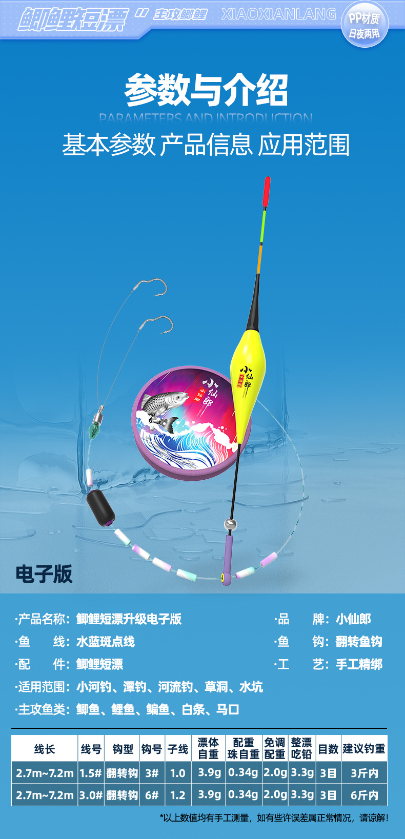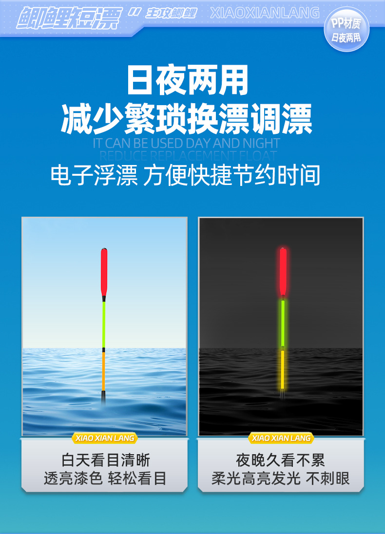 Set set pancing apung pendek ikan mas apung bercahaya elektronik, tidak perlu menyesuaikan pelampung, diikat dan diotak-otakkan secara otomatis kait ganda, sensitivitas tinggi Xiaoxianlang
