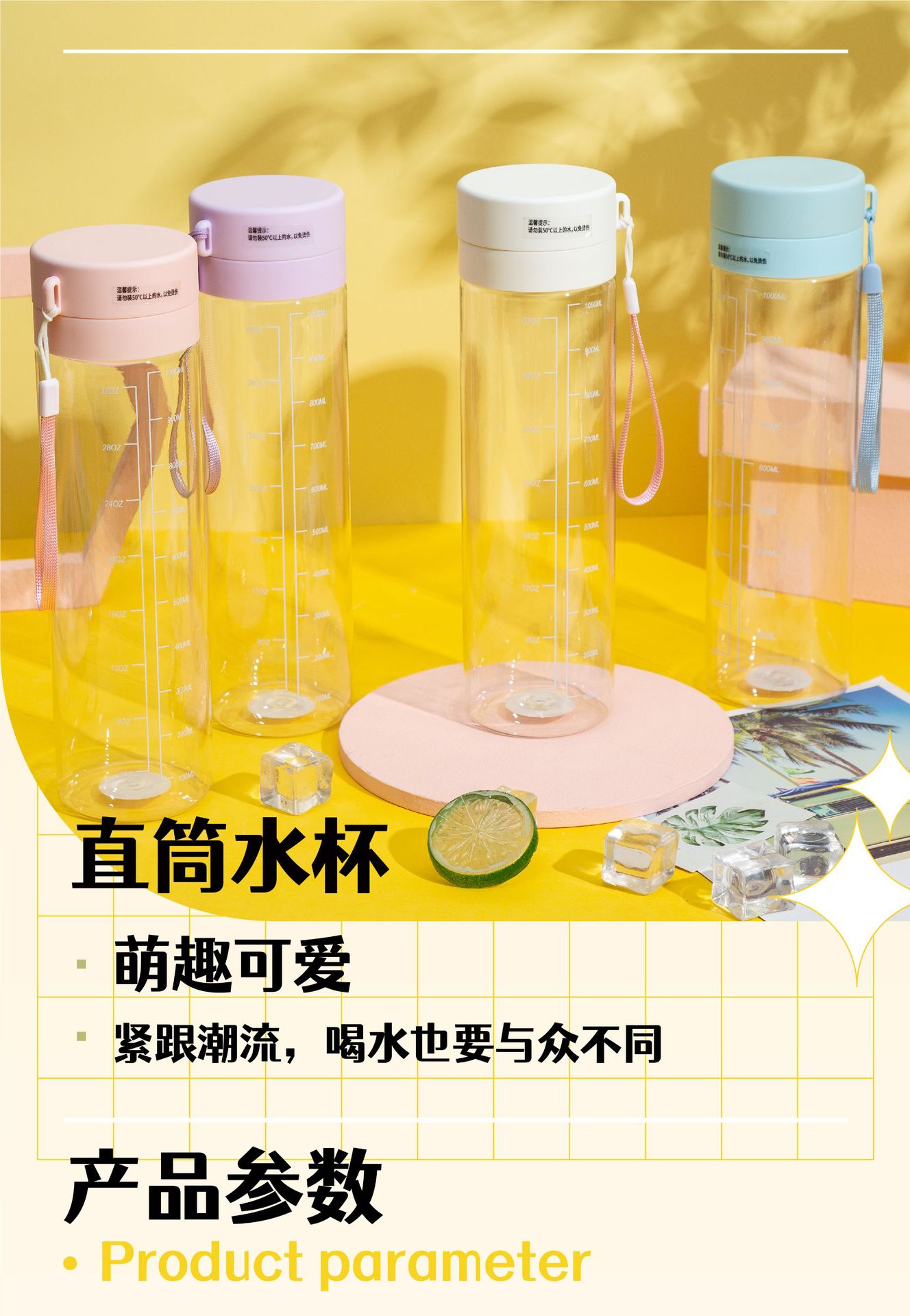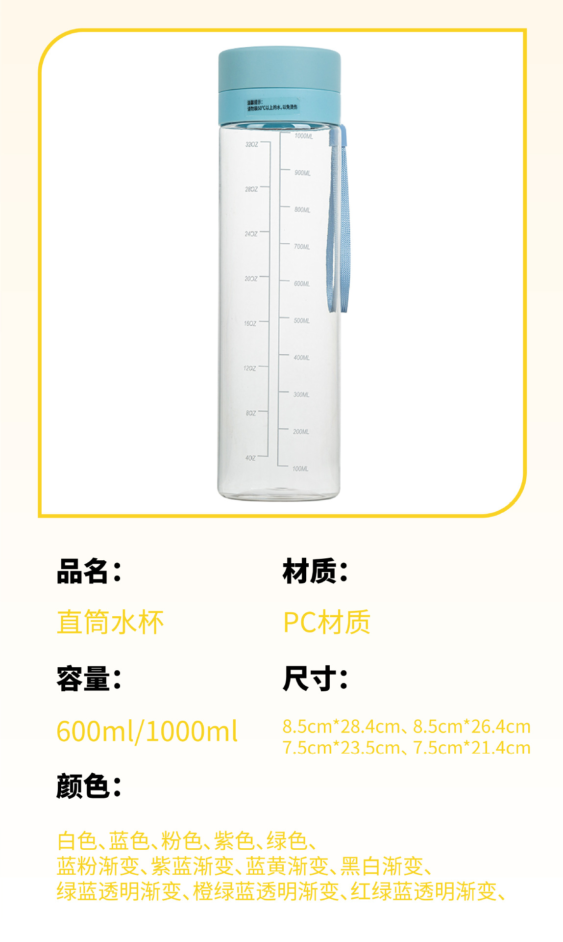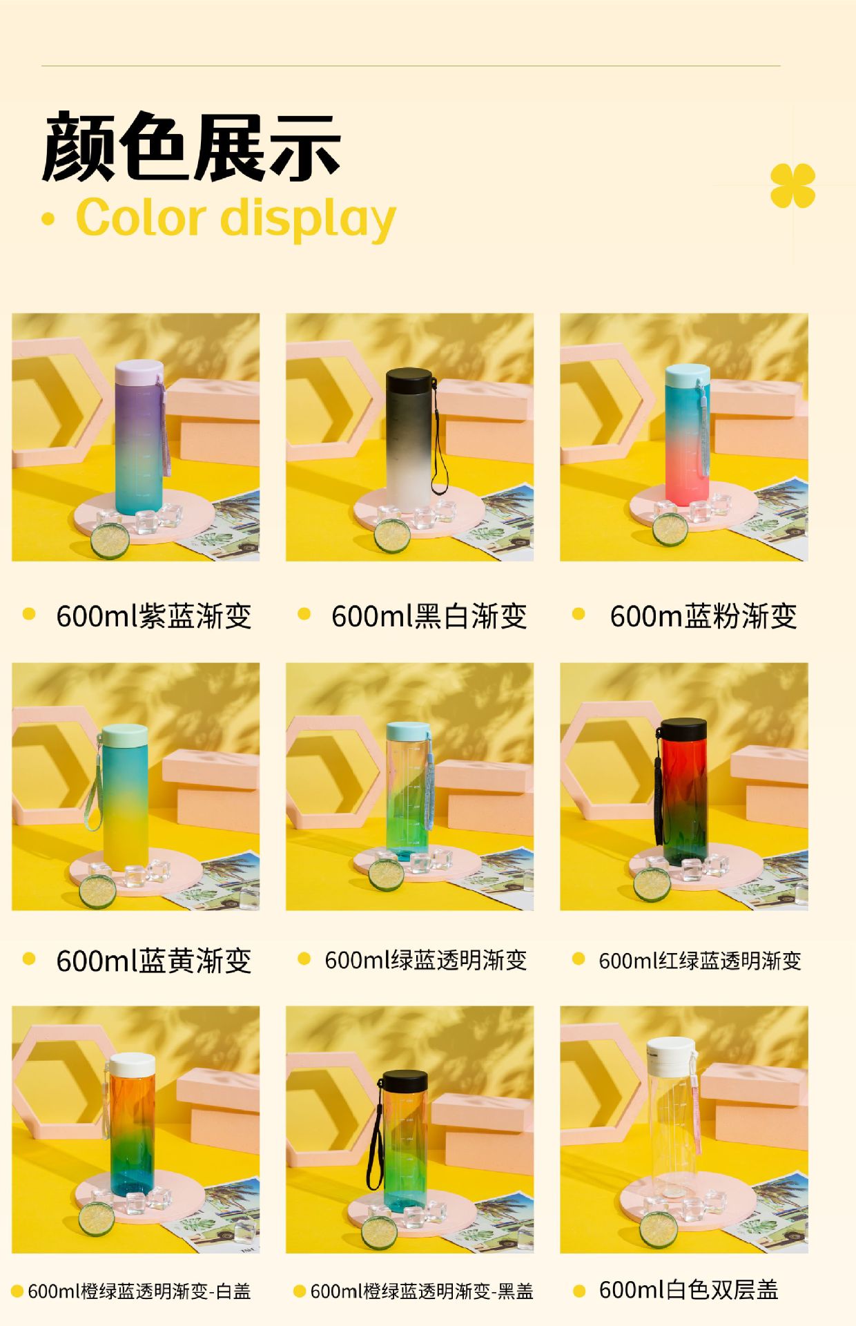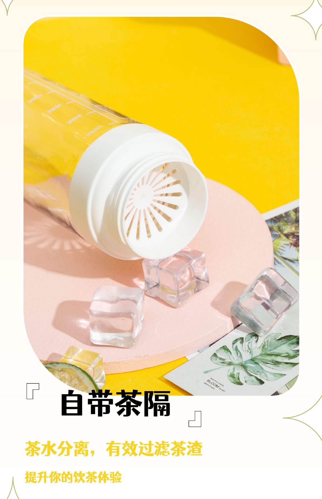 塑料水杯密封防漏直饮运动杯防摔渐变带茶隔学生水杯源头工厂批发