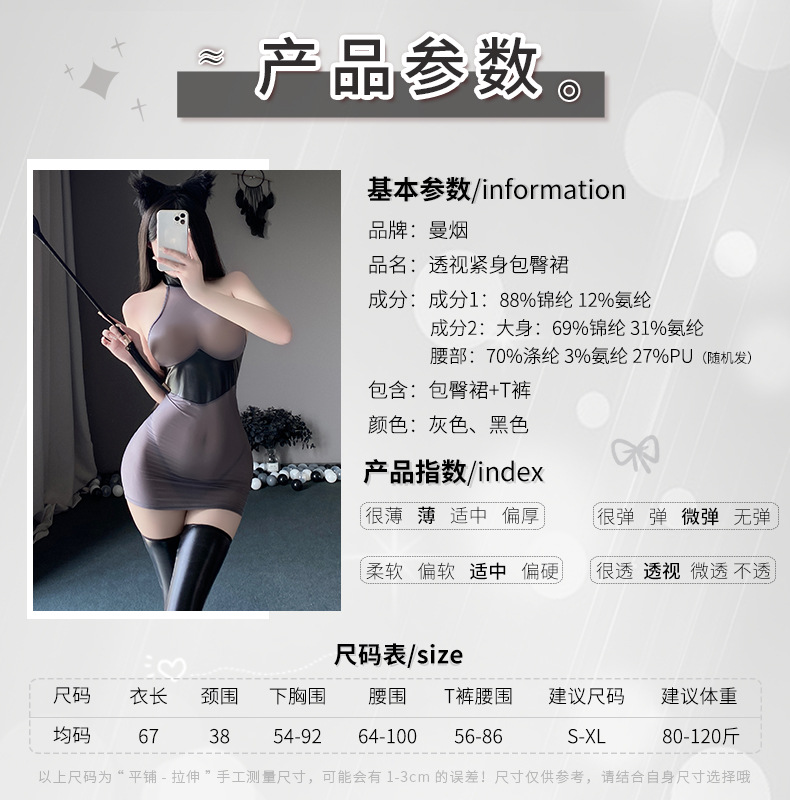 Pakaian dalam seksi asap pria, setelan seragam cheongsam sekretaris, tas perspektif jahitan kulit paten seksi 9737