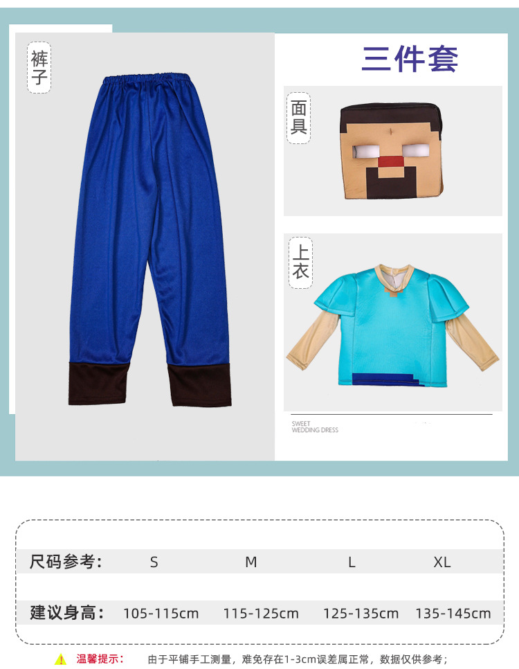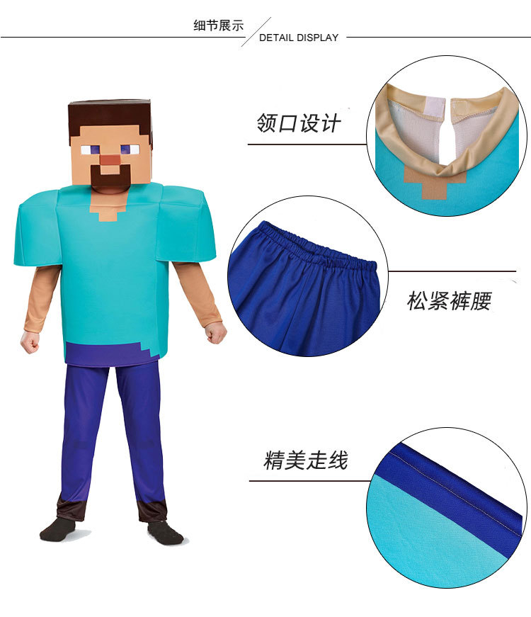 Pakaian cos anak-anak dunia saya pakaian pertunjukan Permainan Steve pakaian baru minecraft Halloween