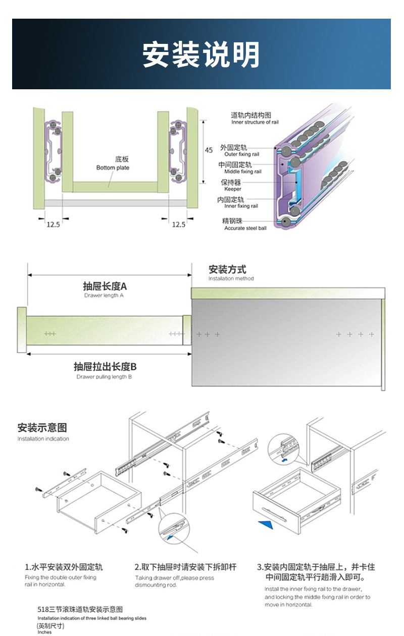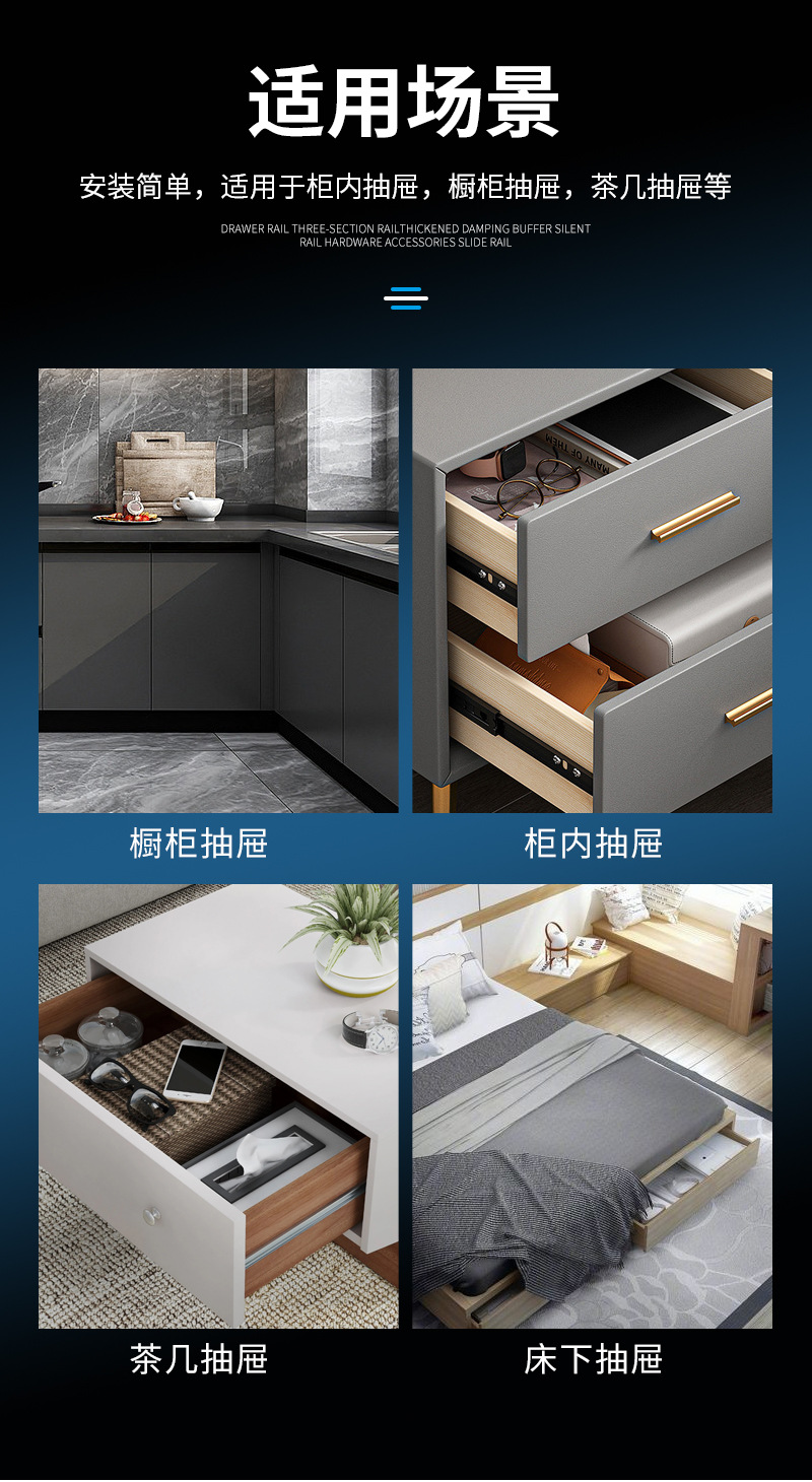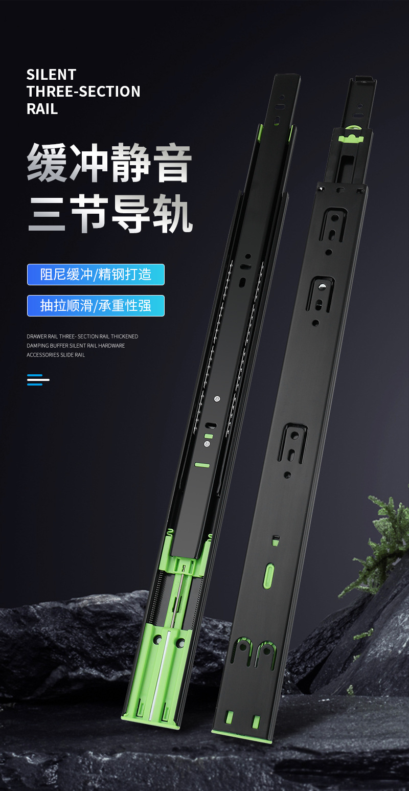 4515 laci peredam tebal rel geser lemari kabinet rel panduan rel tiga bagian bola baja meja senyap pabrik penjualan langsung