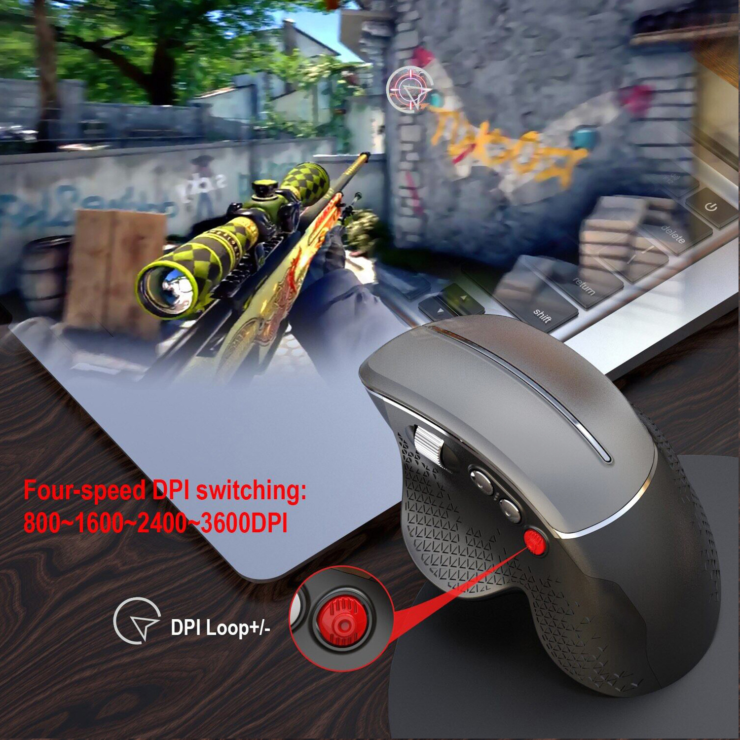 Four-speed DPI switching: 800~1600~2400~3600DPI