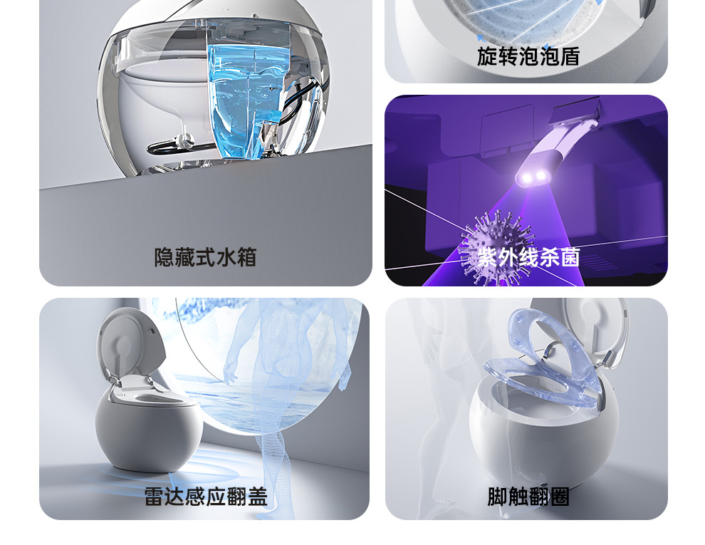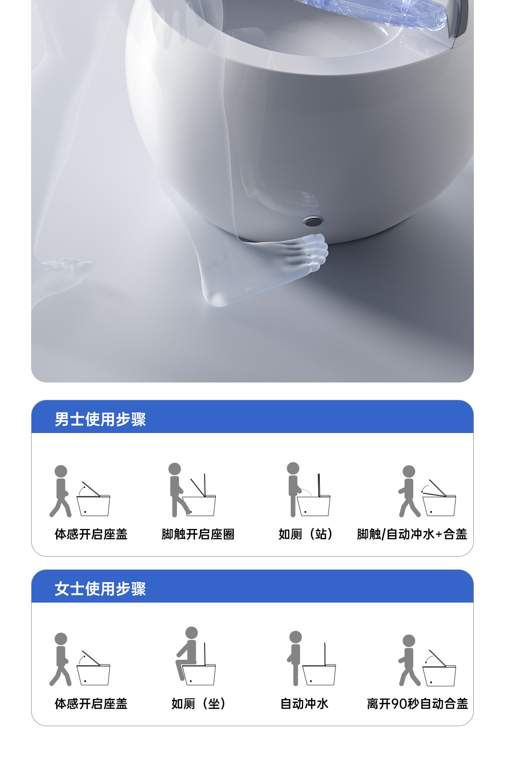 【名雨】新款全自动一体即热式香薰脚踢旋转泡沫盾蛋型智能坐便器
