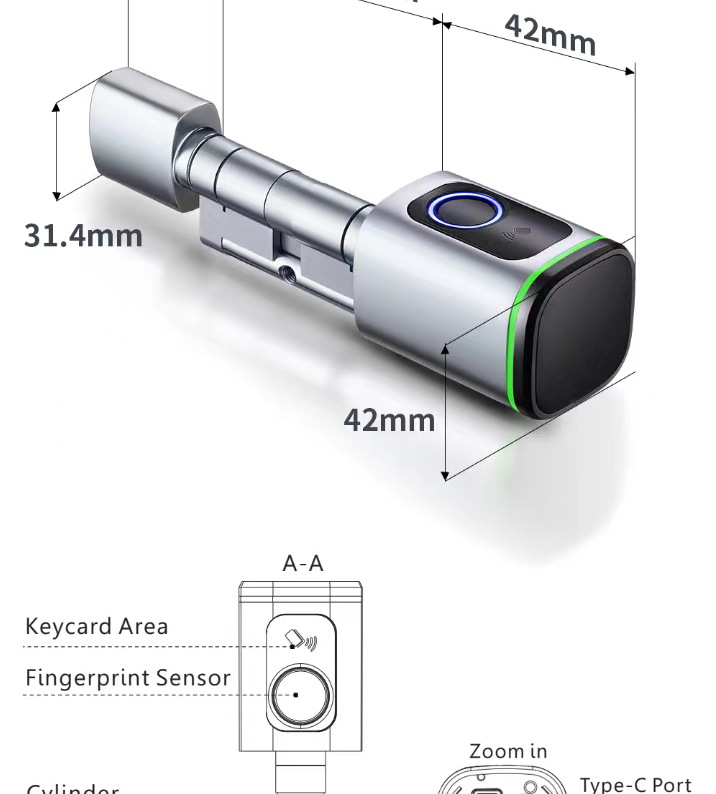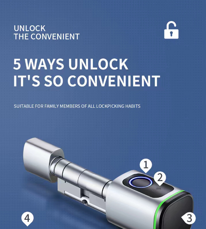 Kunci pintar grafiti silinder, kunci pengganti sidik jari pintu anti Maling kartu kredit aplikasi lintas batas dapat diperpanjang