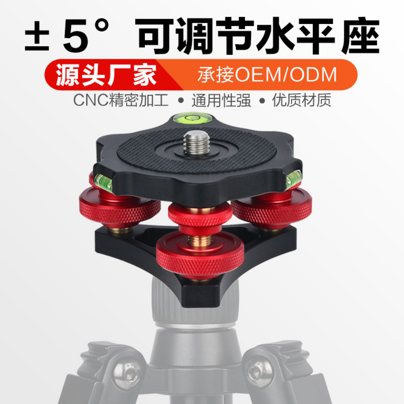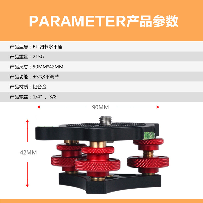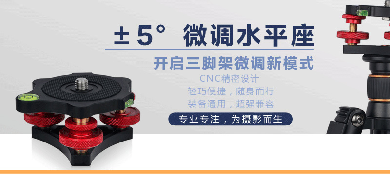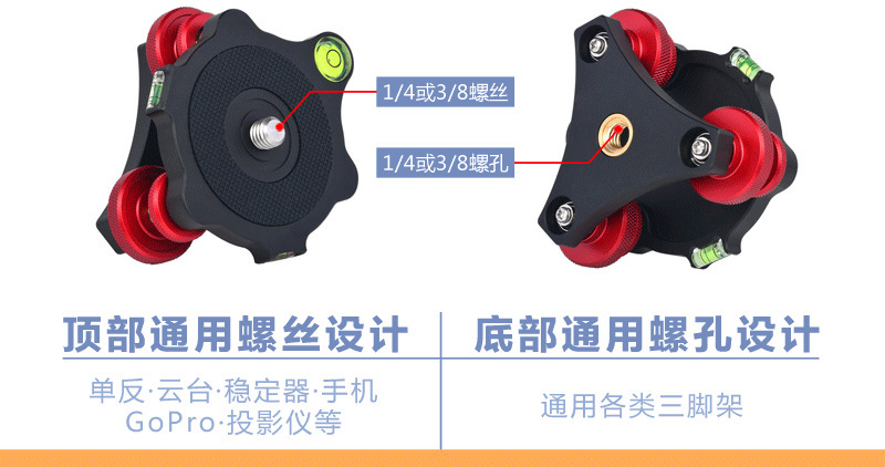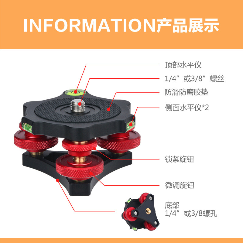 Lefotografi 1/4 sekrup dasar logam, regulator horizontal, aksesori fotografi penyesuaian horizontal PTZ