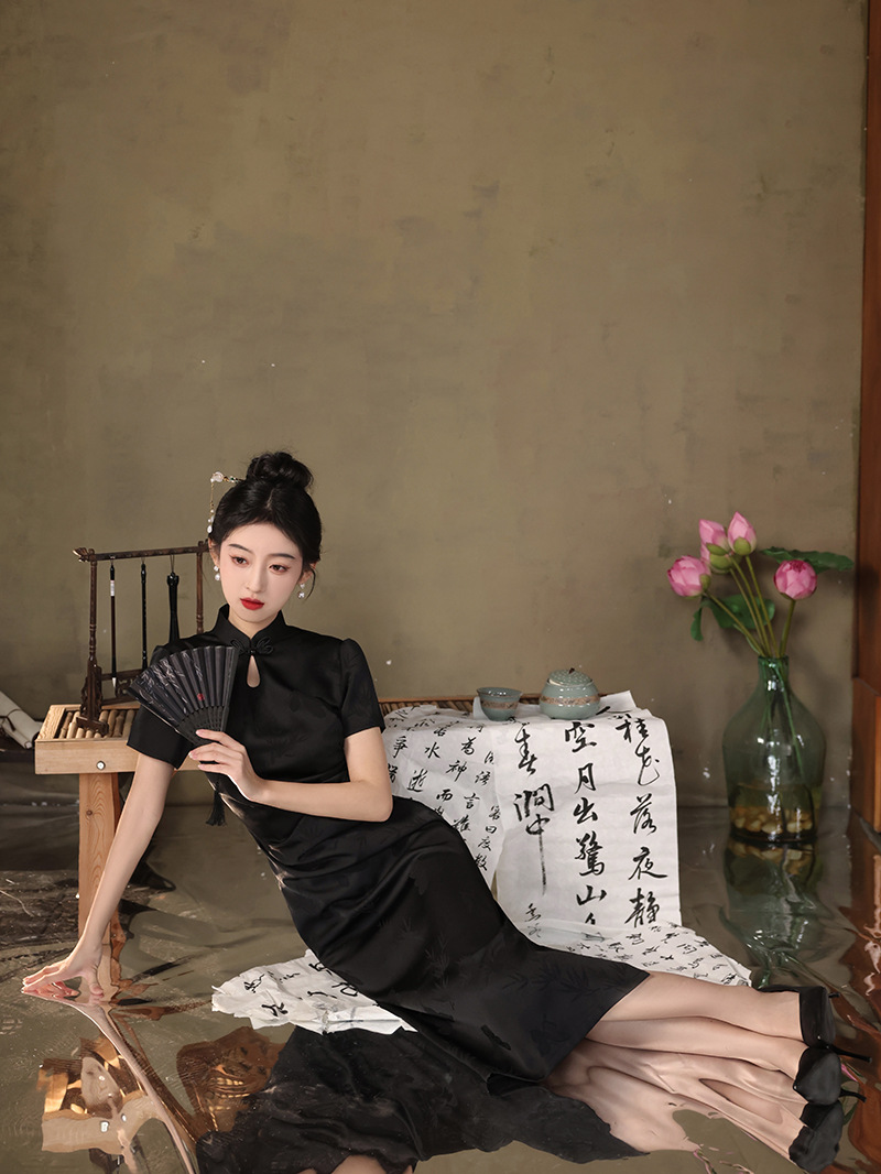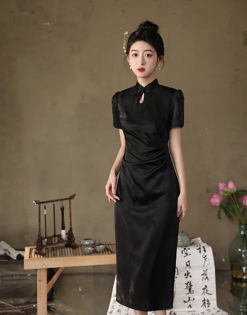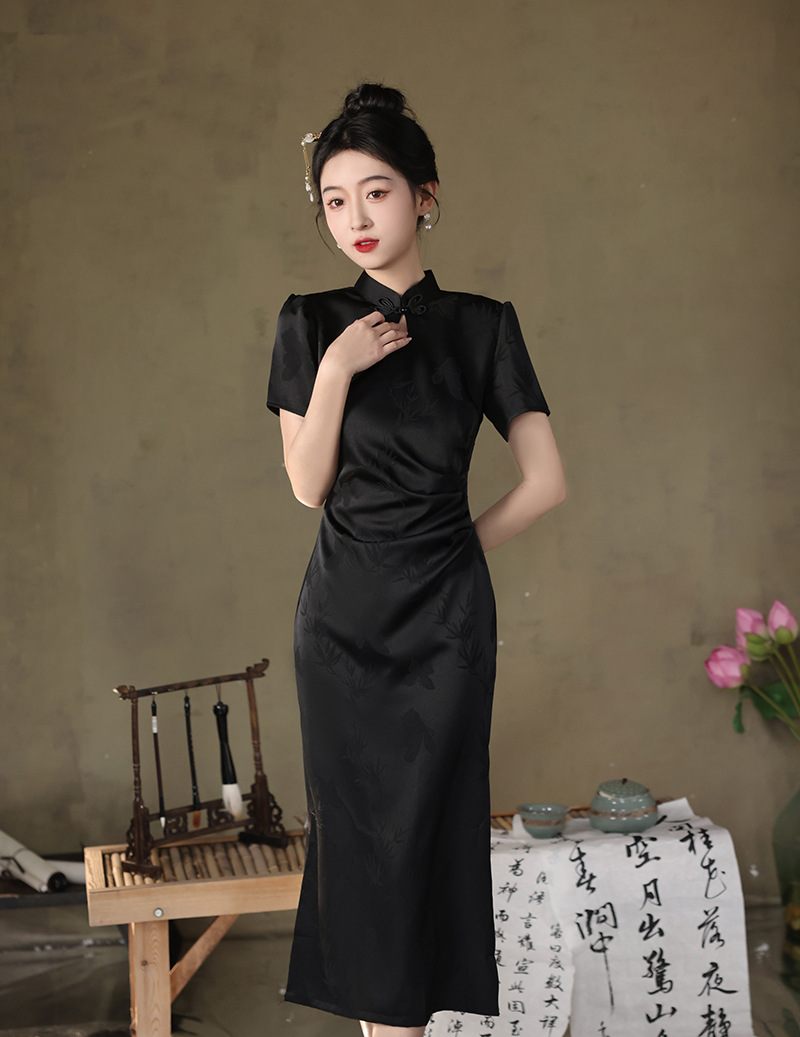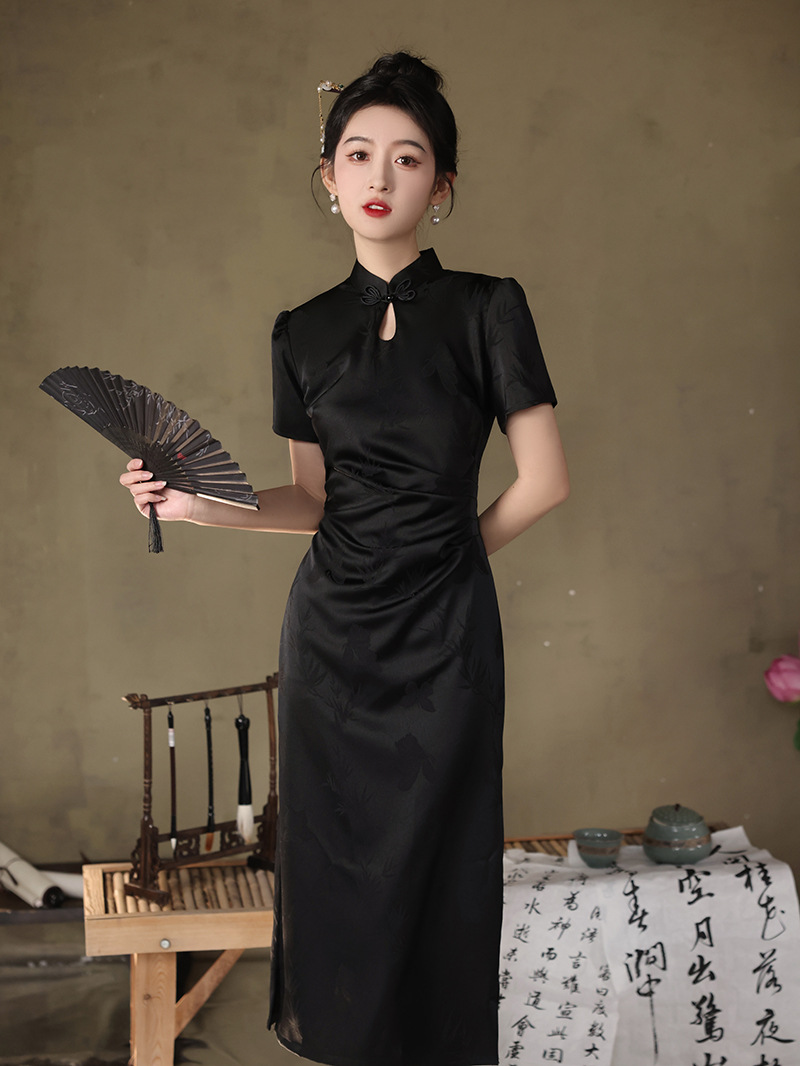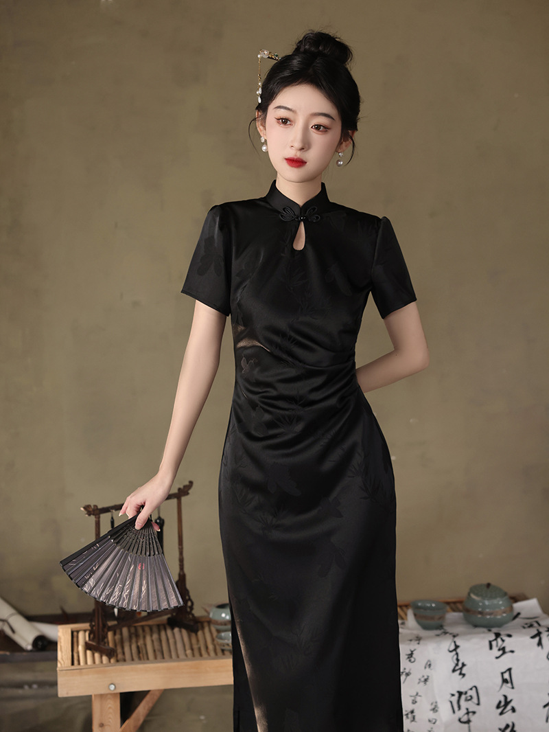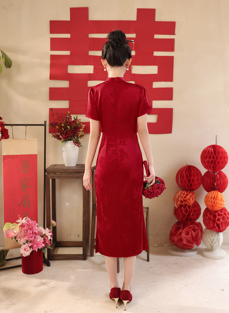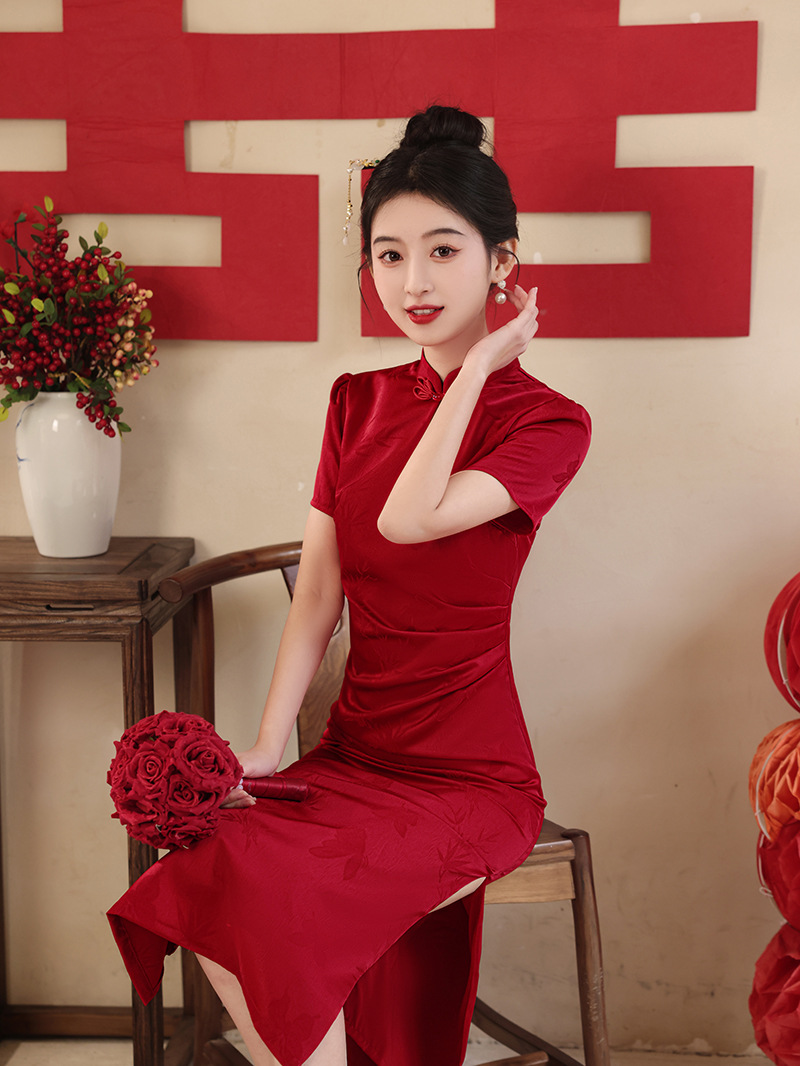 Gaun cheongsam merah pertunangan wanita, gaun Pertemuan Tahunan rumah pernikahan Musim Panas 2024