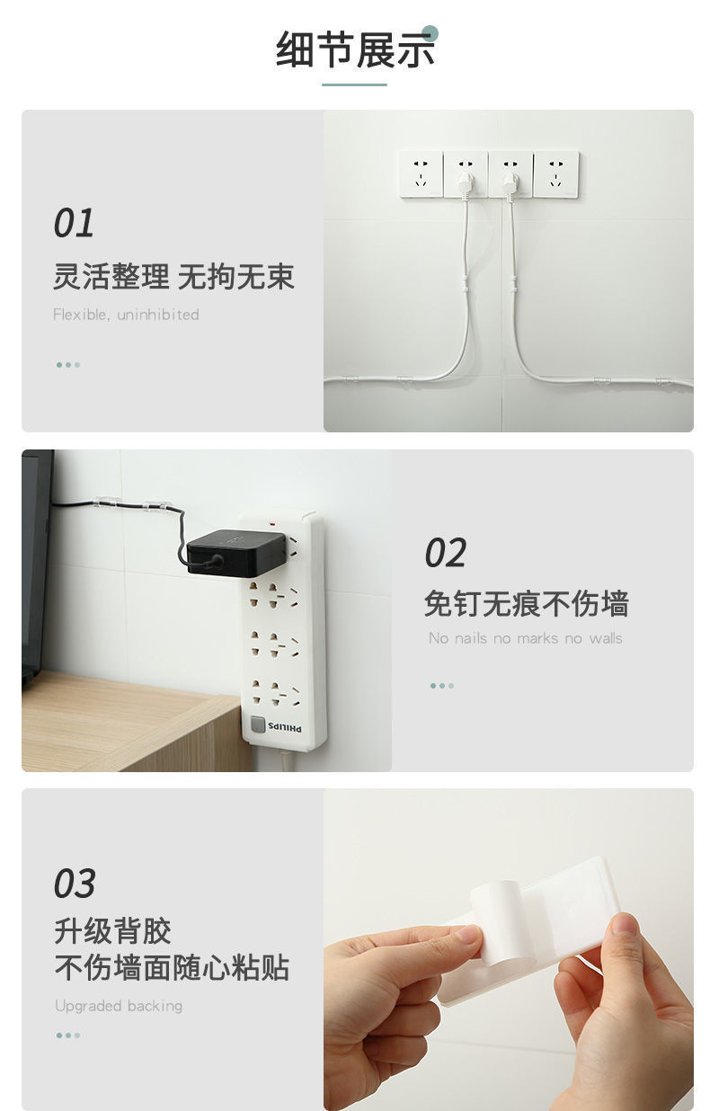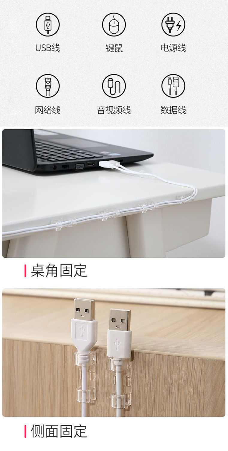 Pengatur kabel tanpa bekas, klip kabel data perekat sendiri, tempat penyimpanan kabel jaringan, anti kusut untuk kabel daya.