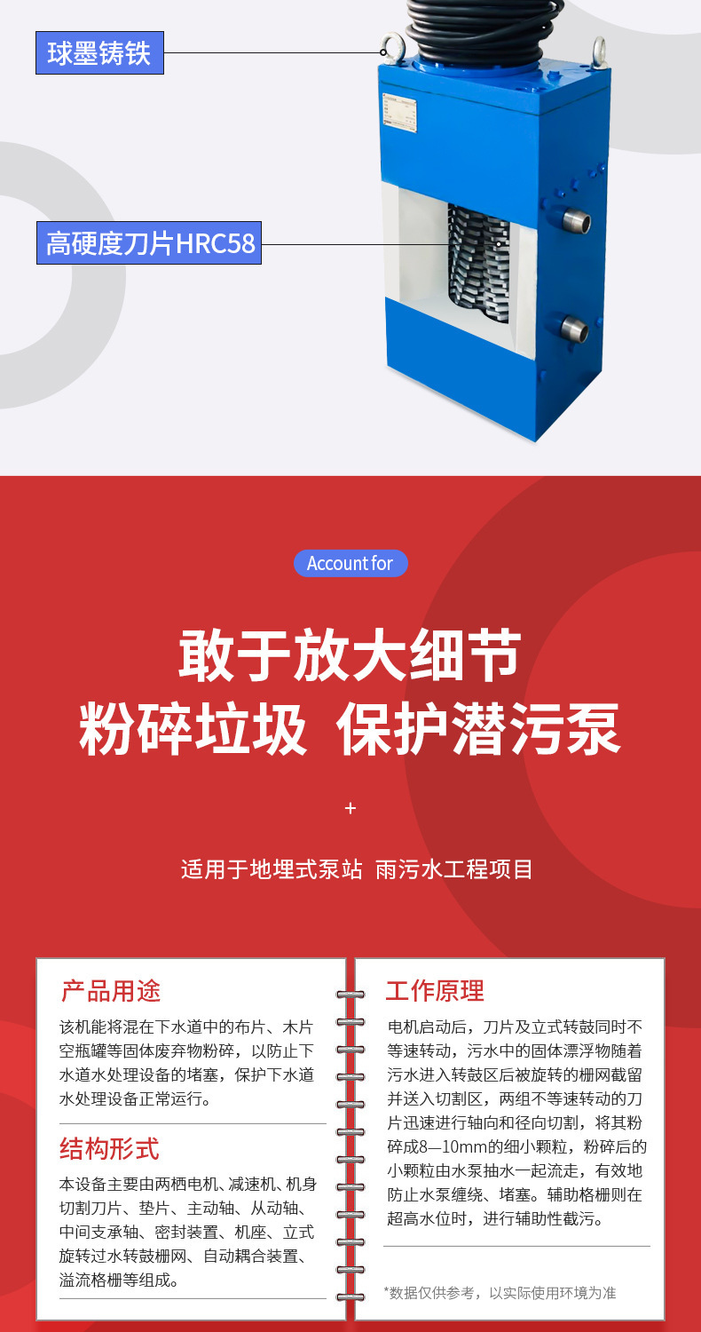 Mesin penghancur dan penghancur parut tanpa drum, stasiun pompa pengangkat limbah terintegrasi, mesin pengangkat limbah, meja drum tunggal, backwash