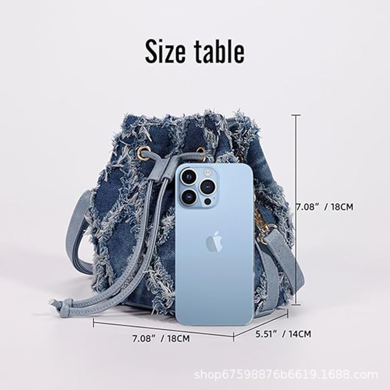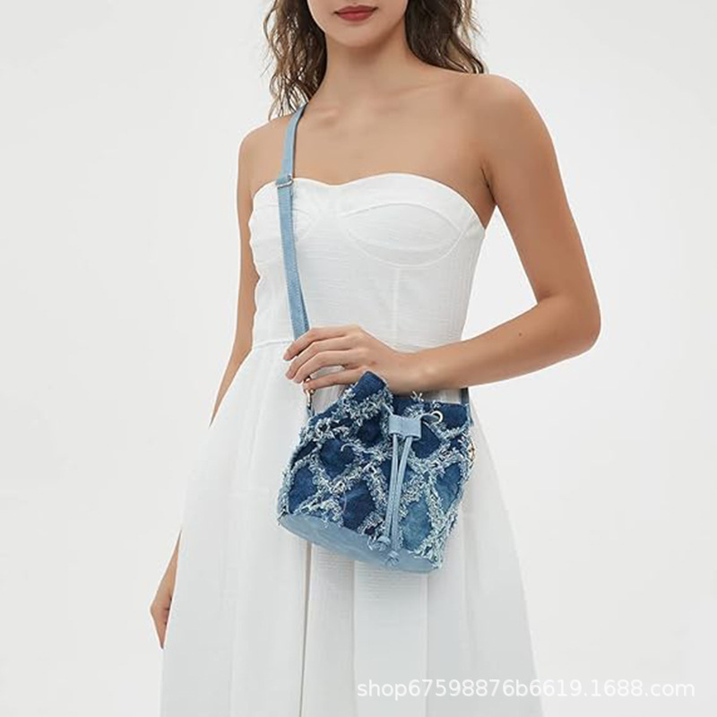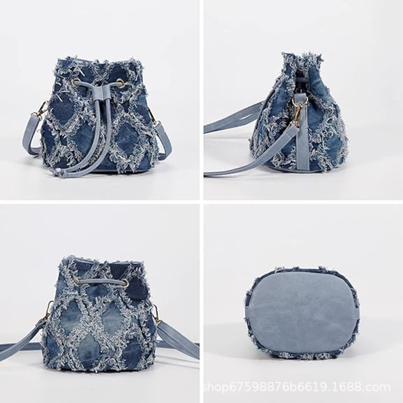 Tramp denim tas penyimpanan tas tangan wanita, kantung serut lintas batas desain panas trendi sederhana