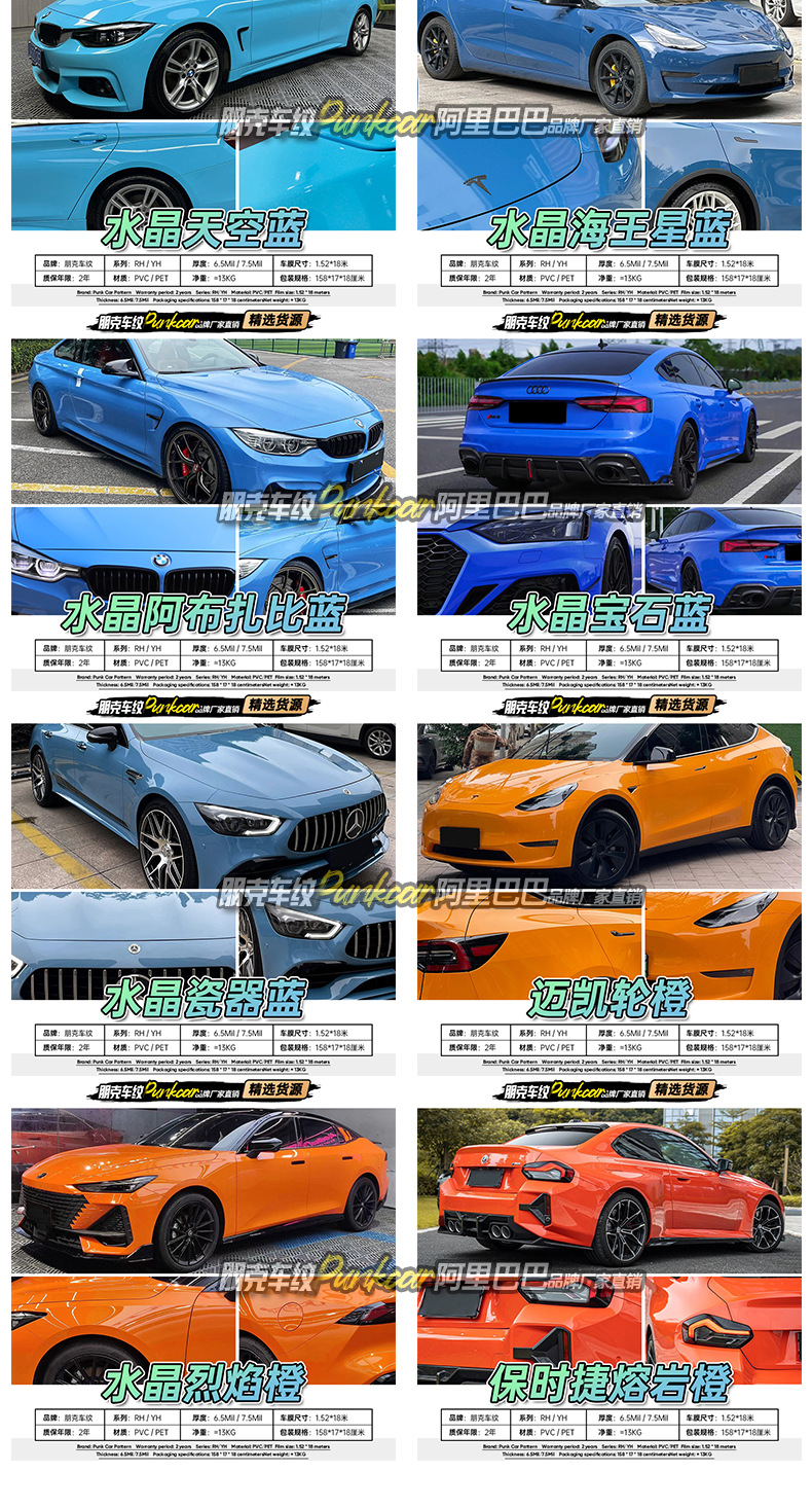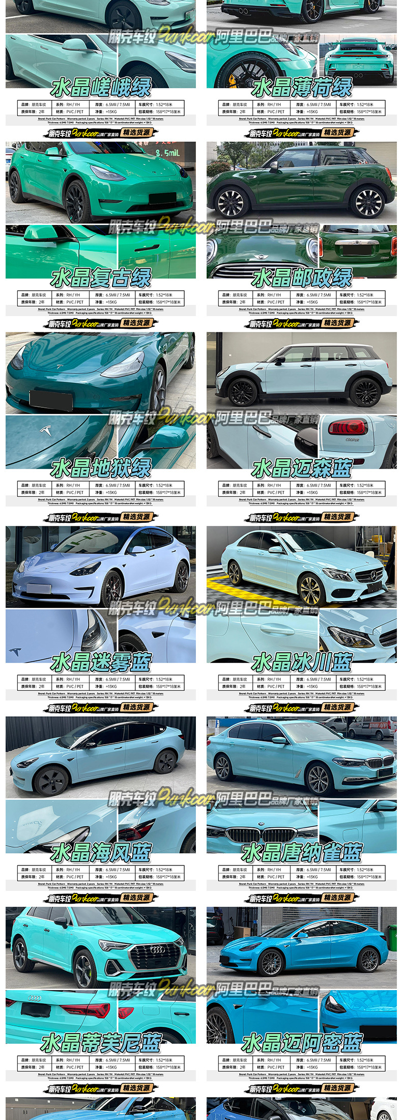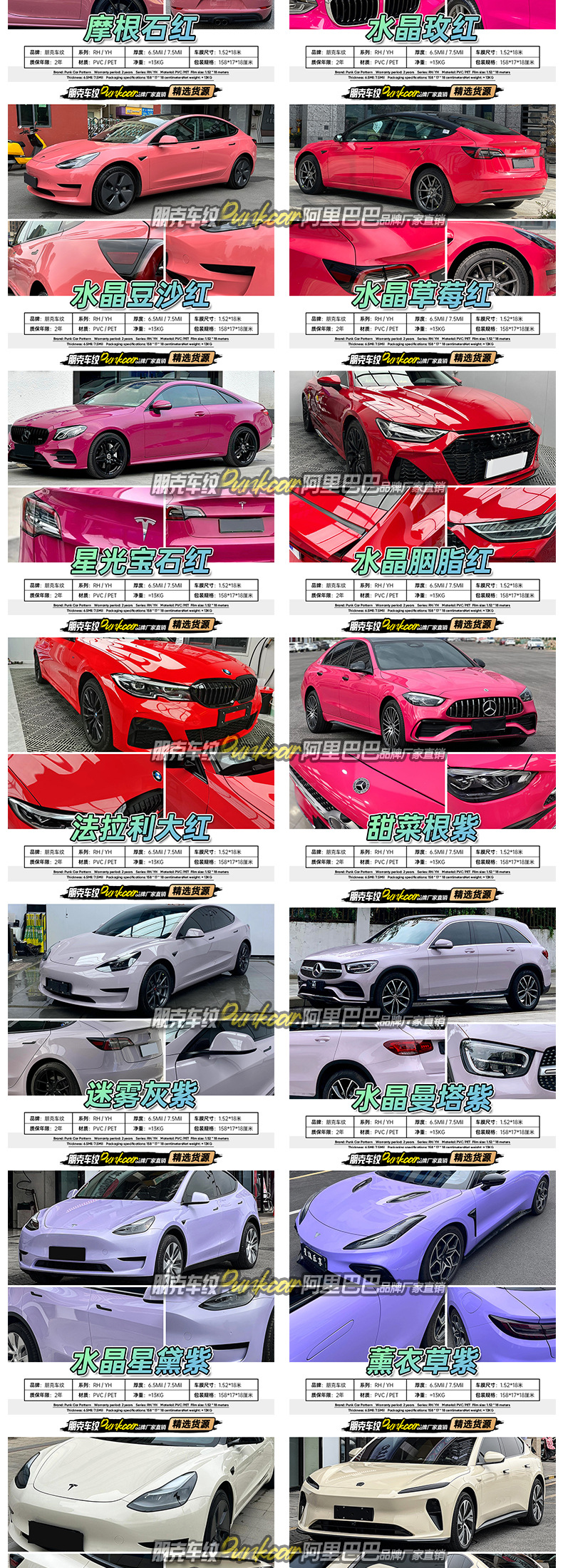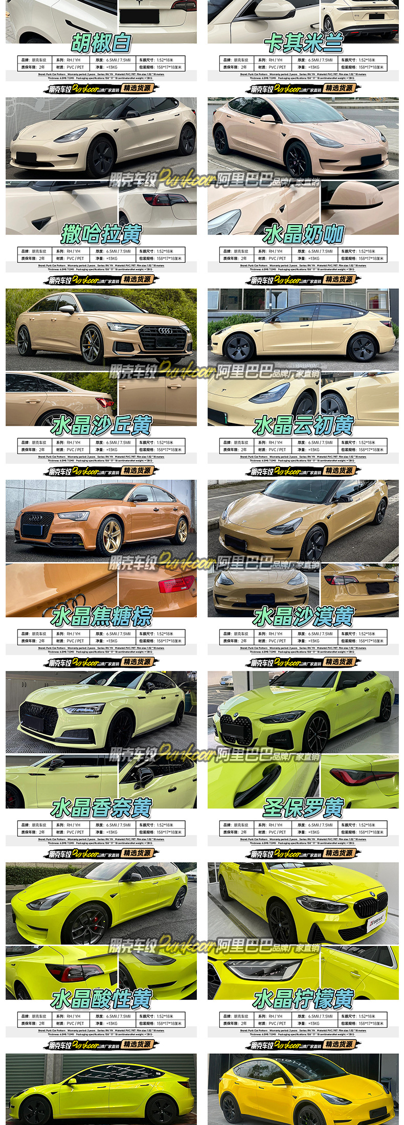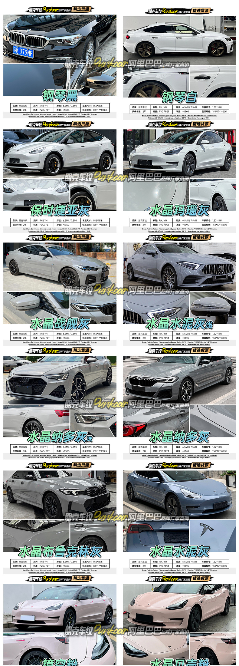 Produsen film perubahan warna mobil seri kristal PVC seluruh piano mobil hitam dan putih film PET pabrik satu klik grosir pengiriman