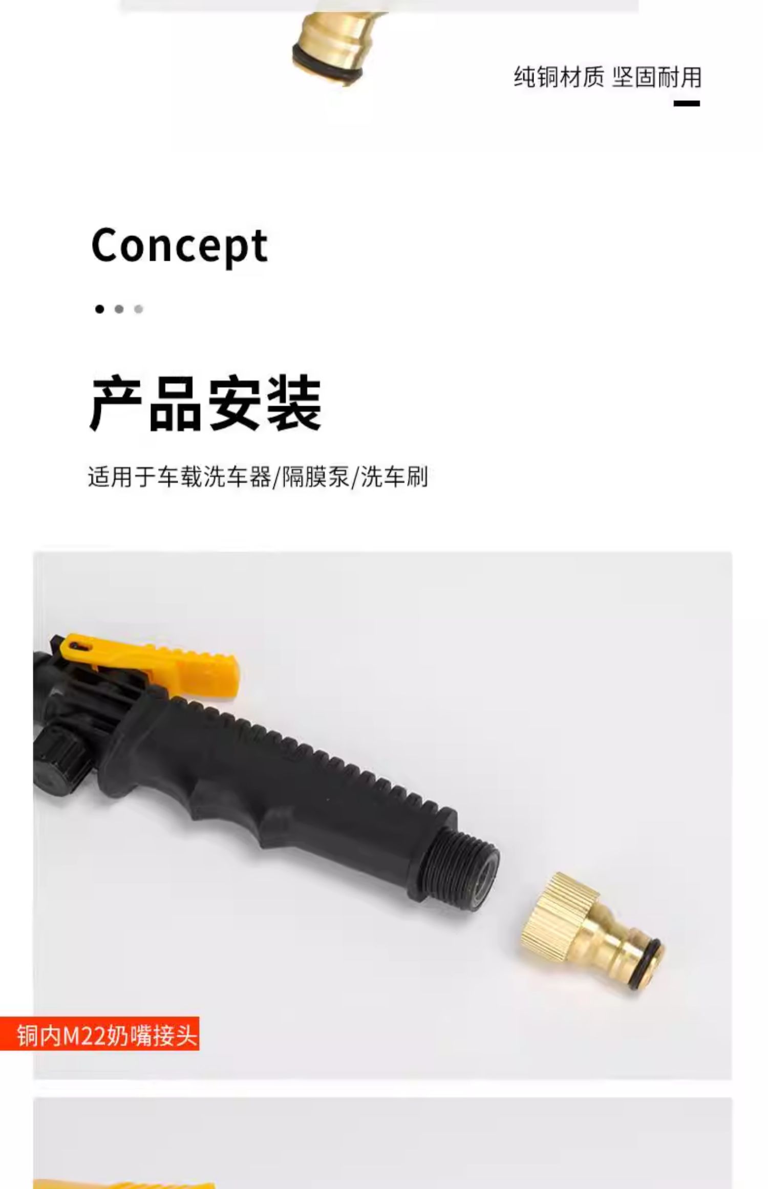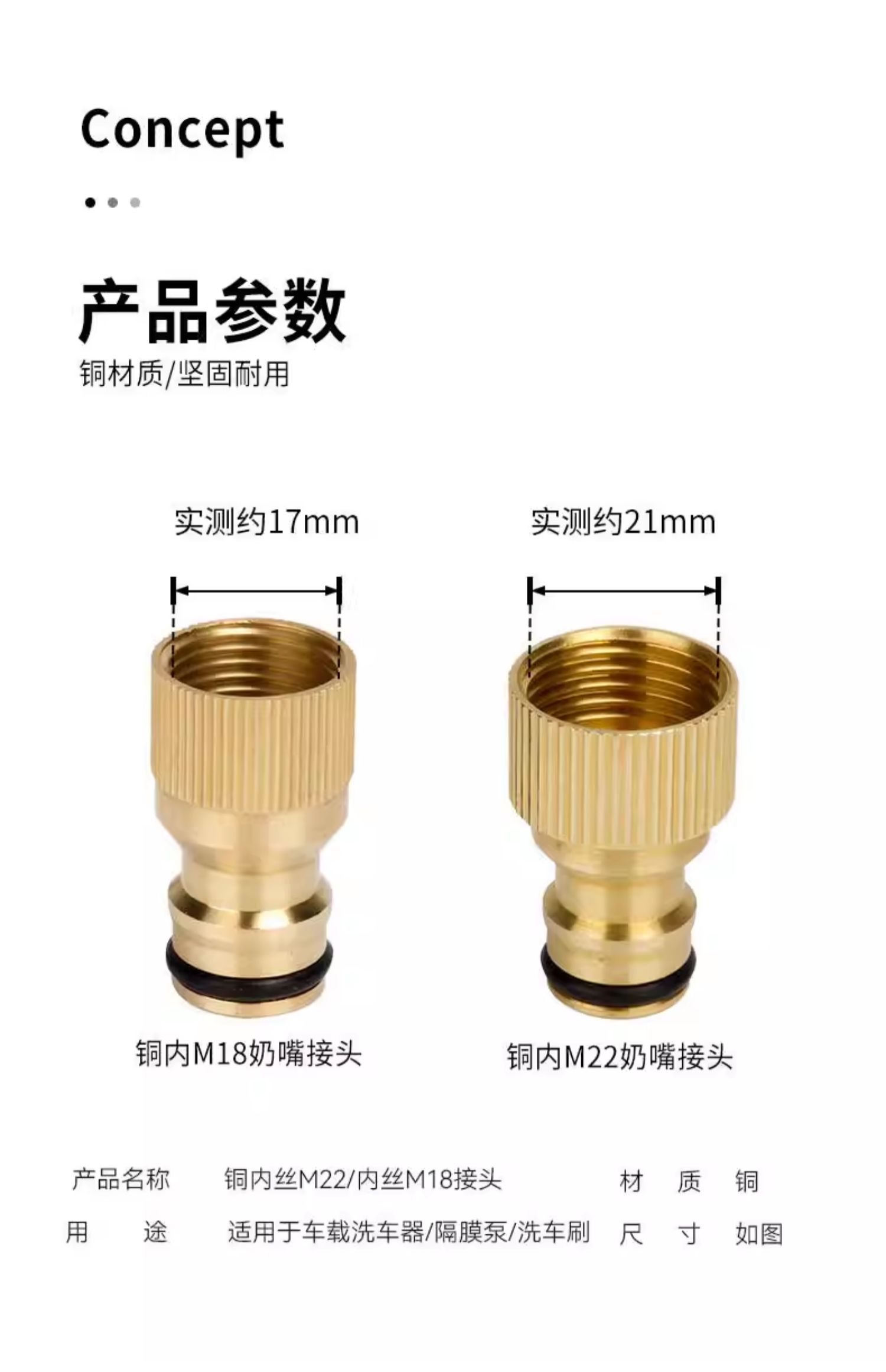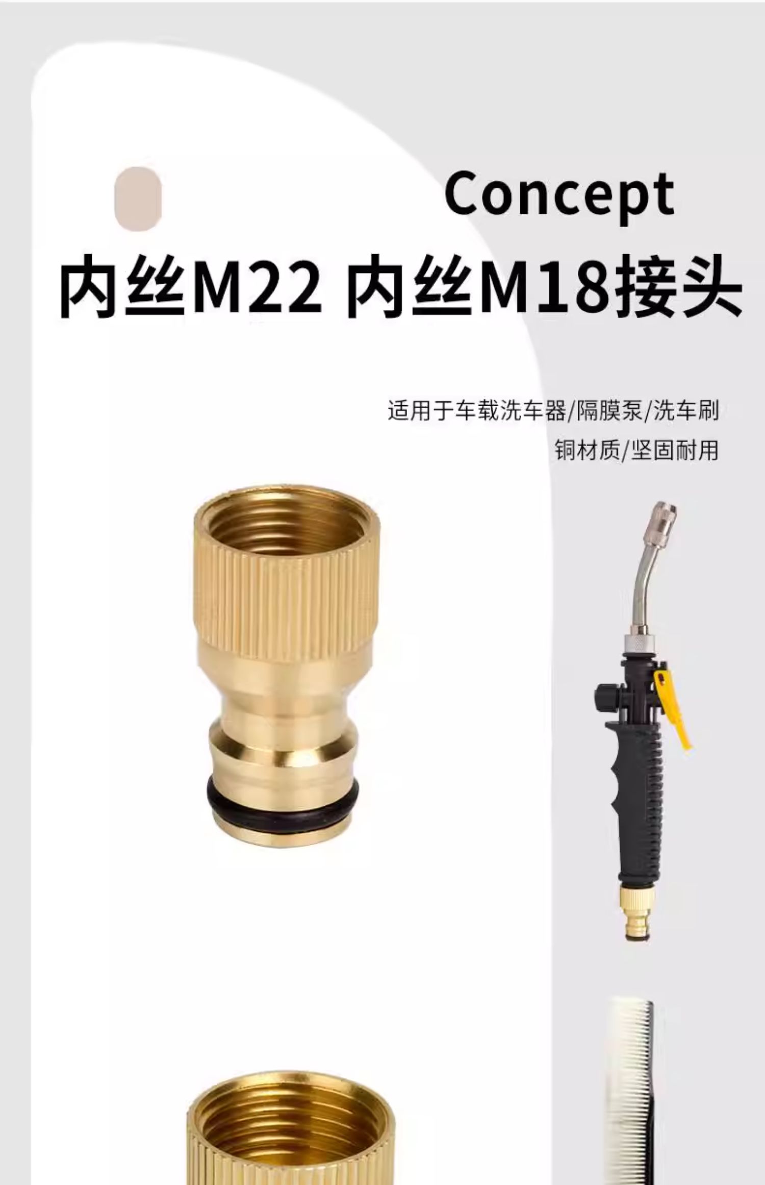 #M22*2车载洗车器奶嘴接头配件高压洗车机隔膜泵便携水枪刷M18*1.