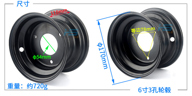 Aksesori sepeda motor empat roda modifikasi, go-kart ATV hub roda 6 inci tiga lubang ATV empat roda off-road hub roda kendaraan