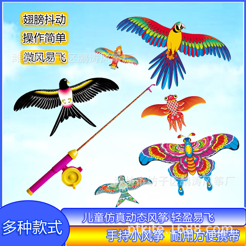 Tongkat Pancing Khusus Anak Weifang Dinamis Mini Genggam Layang-layang Kecil Mudah Terbang 2024 Model Baru Kupu-kupu Elang Burung Walet