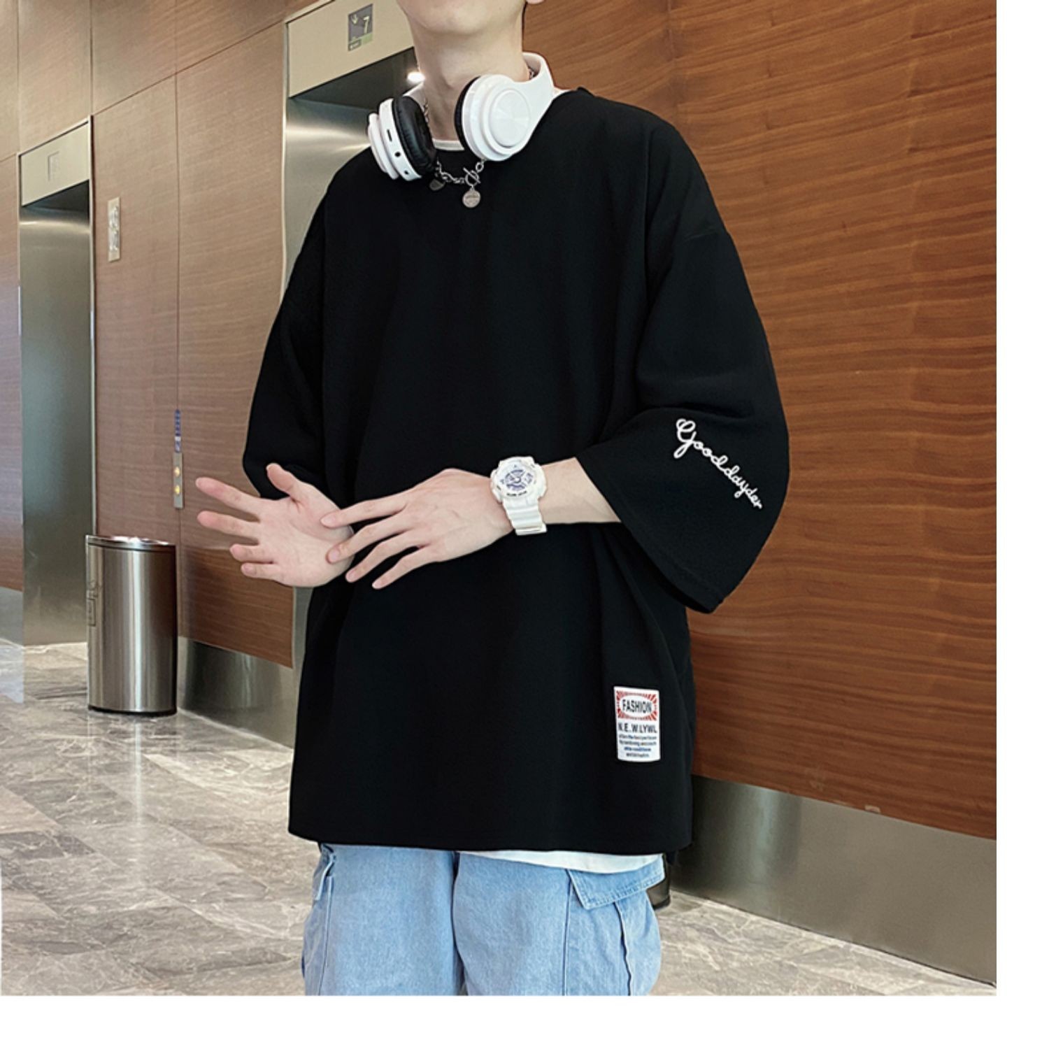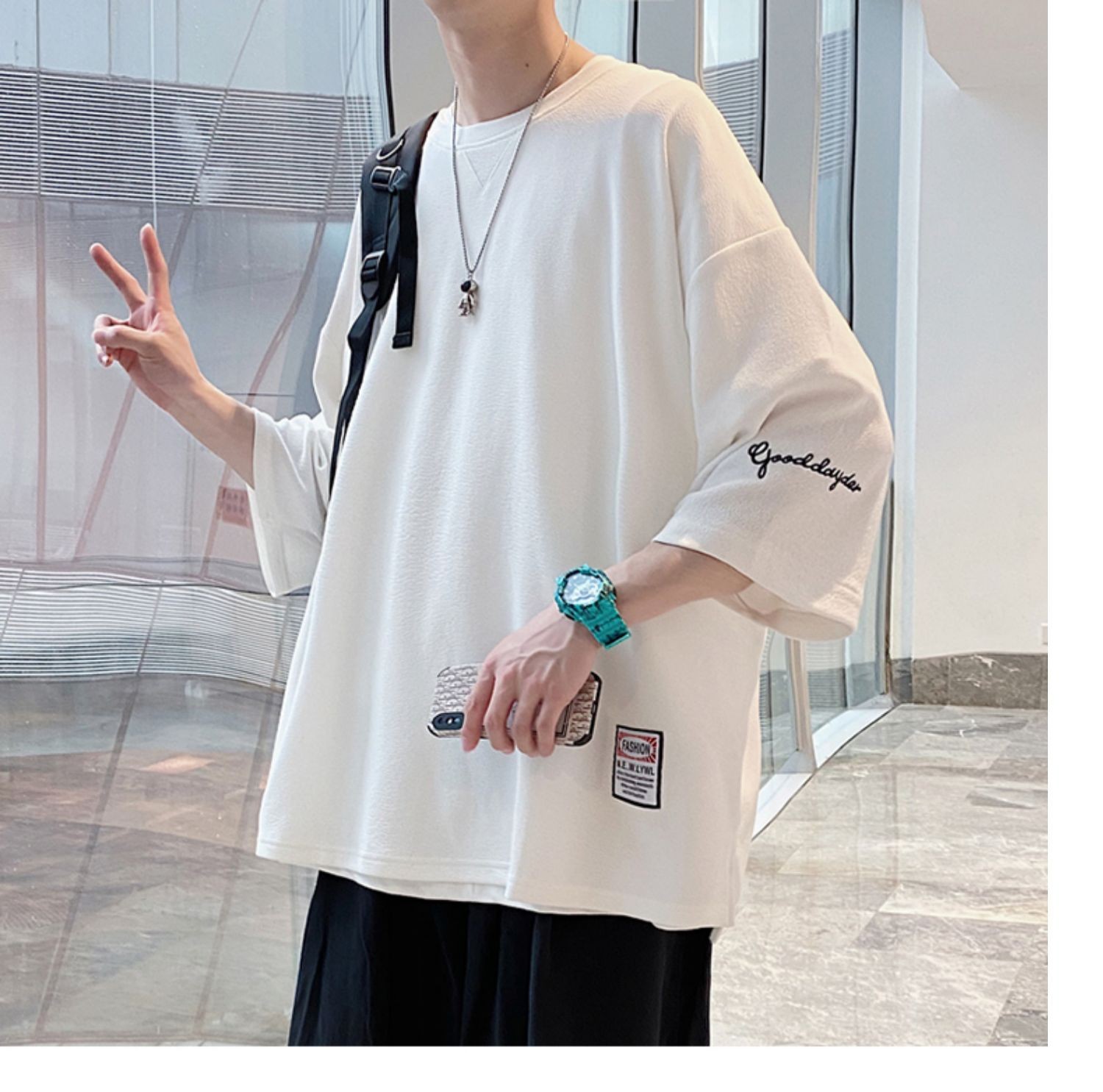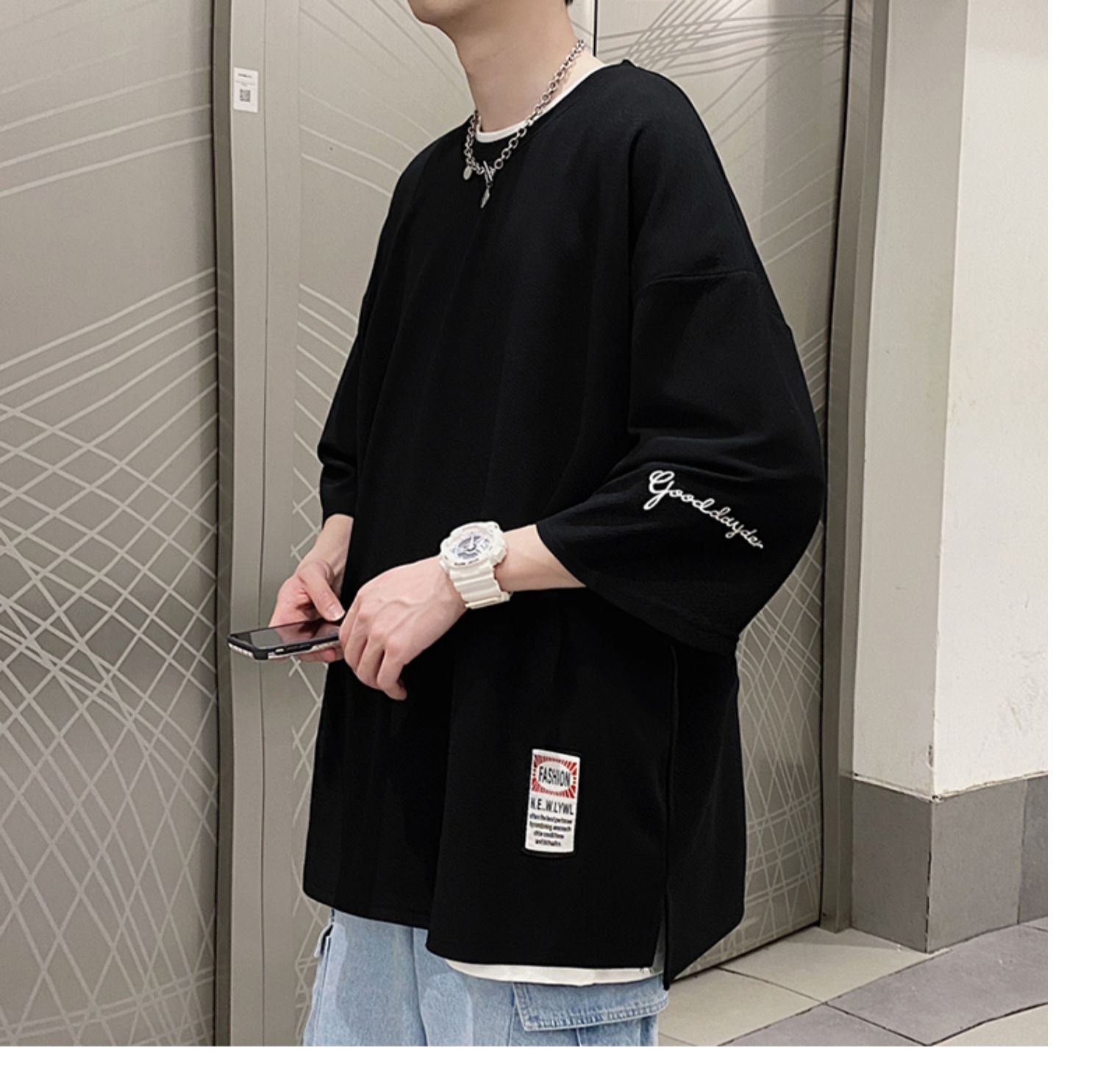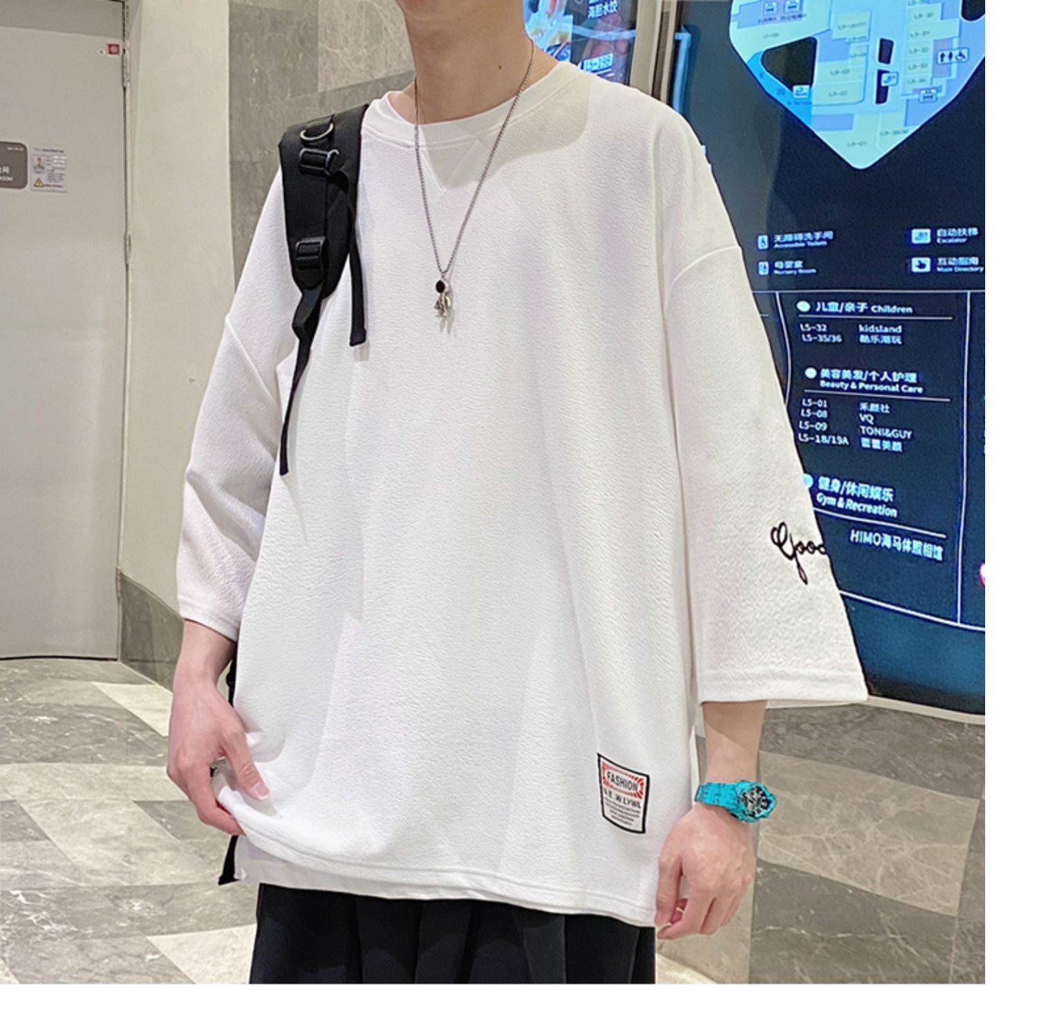 Kaus pria Lengan tiga perempat, kaus pria lengan pendek, pakaian sutra es, lengan pendek, ukuran plus, longgar, trendi, merek mode musim panas, kaus lengan pendek