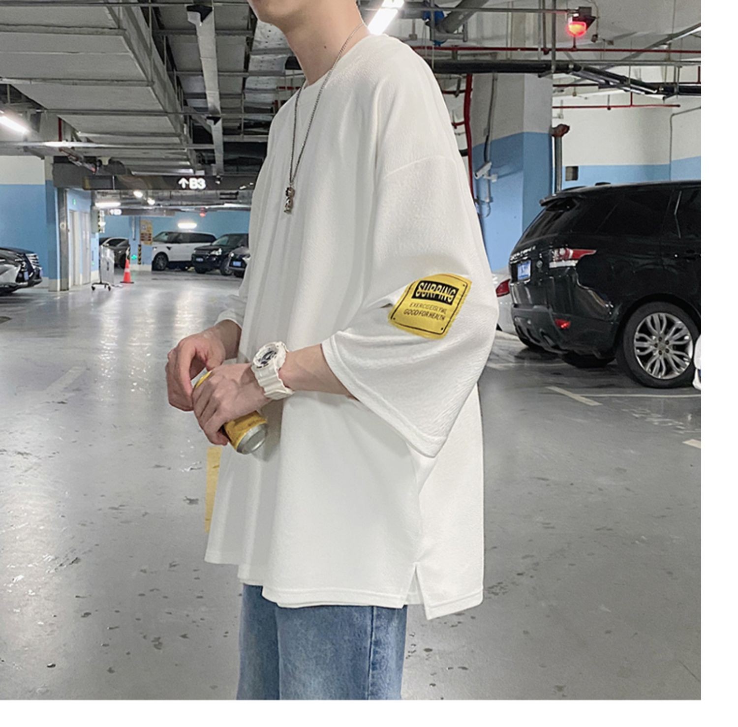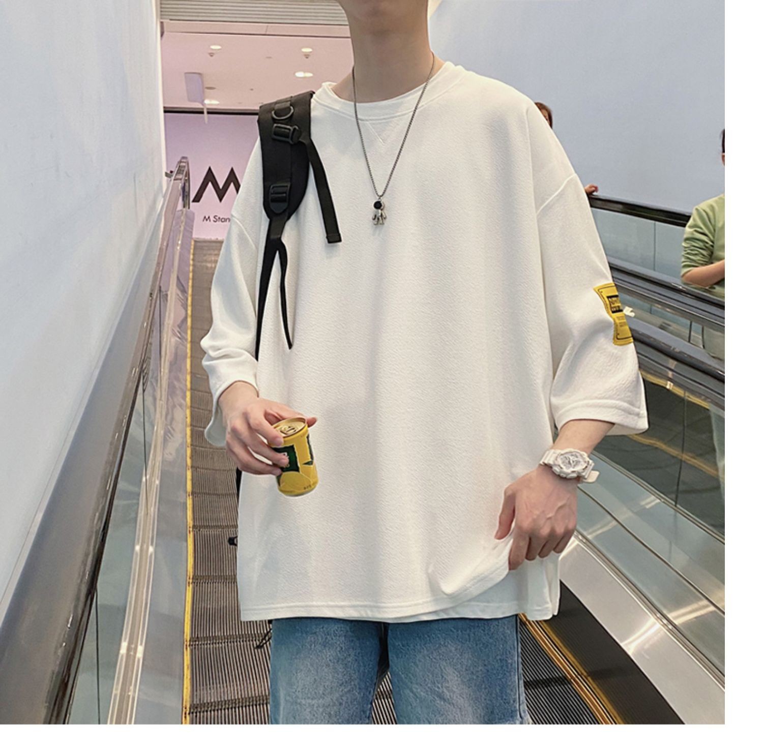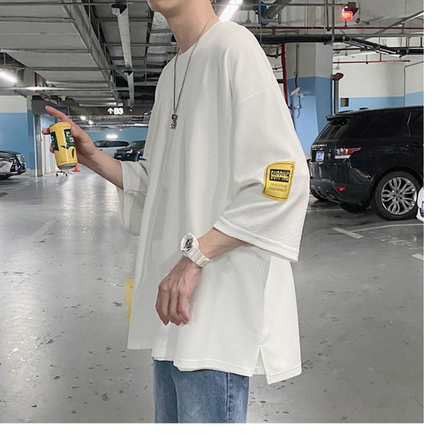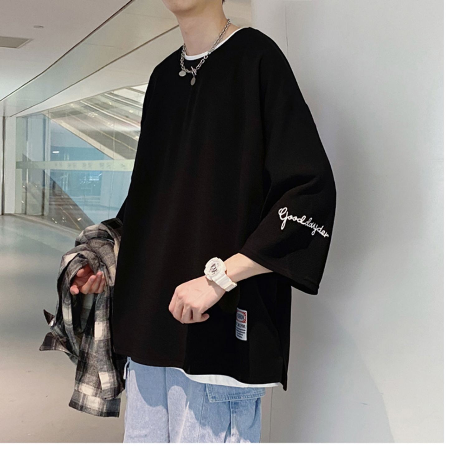 Kaus pria Lengan tiga perempat, kaus pria lengan pendek, pakaian sutra es, lengan pendek, ukuran plus, longgar, trendi, merek mode musim panas, kaus lengan pendek