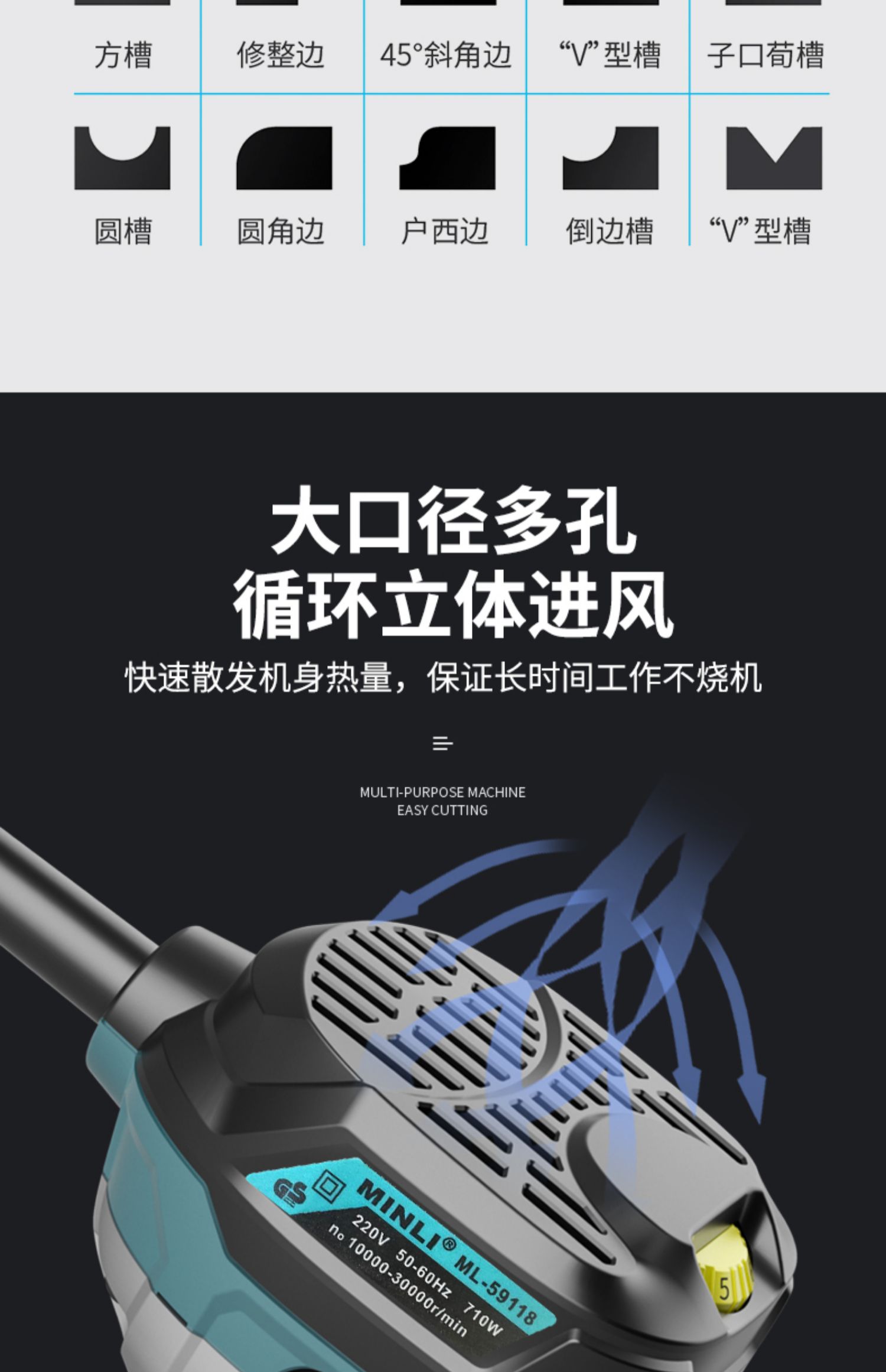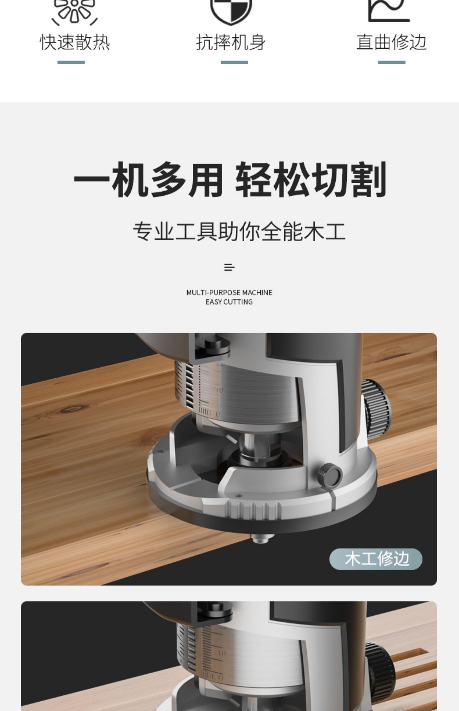 Pemangkas tepi mesin ukir multifungsi, alat pengerjaan kayu Bakelite mesin penggilingan pelat plastik aluminium terbalik
