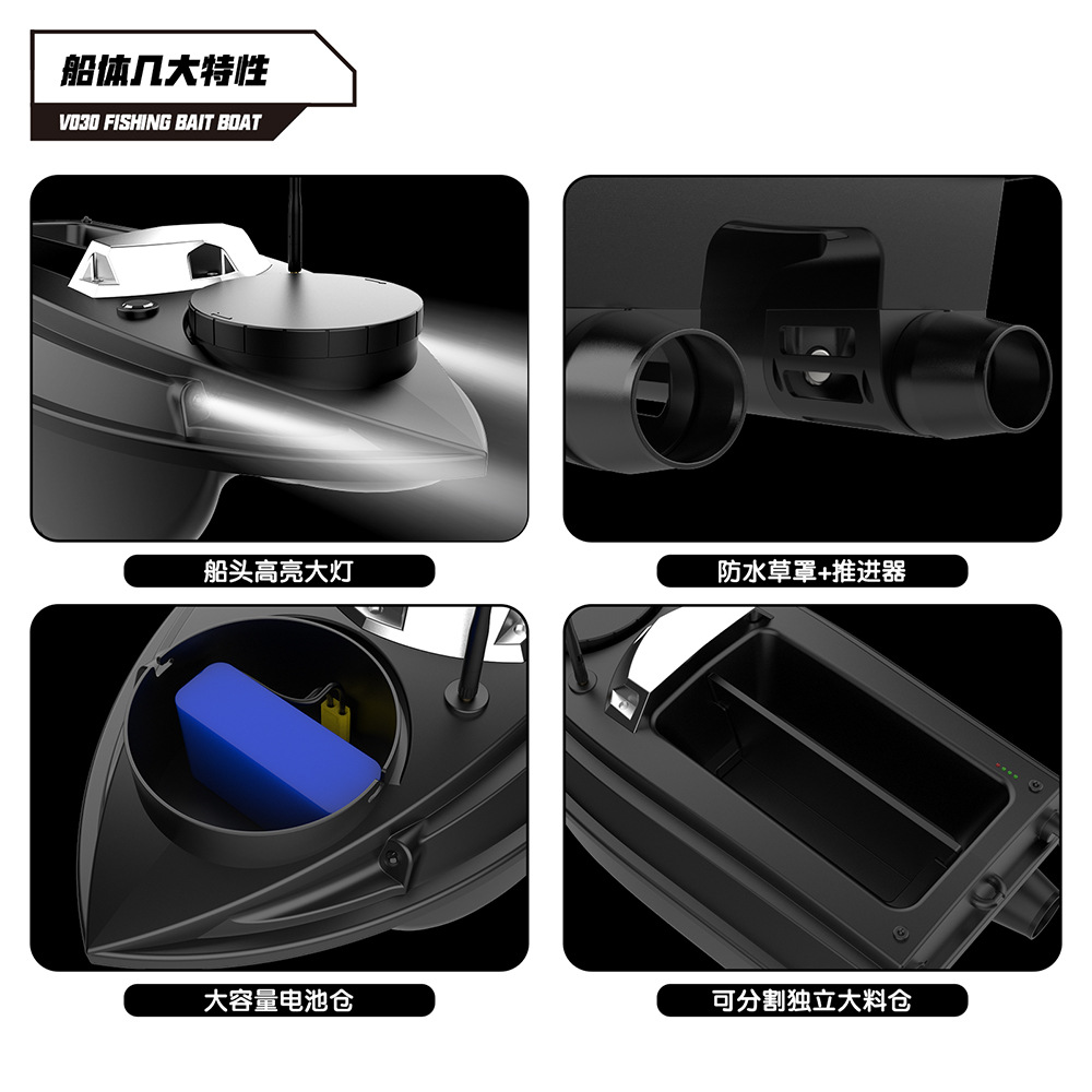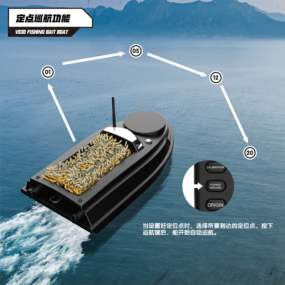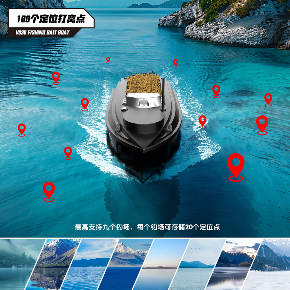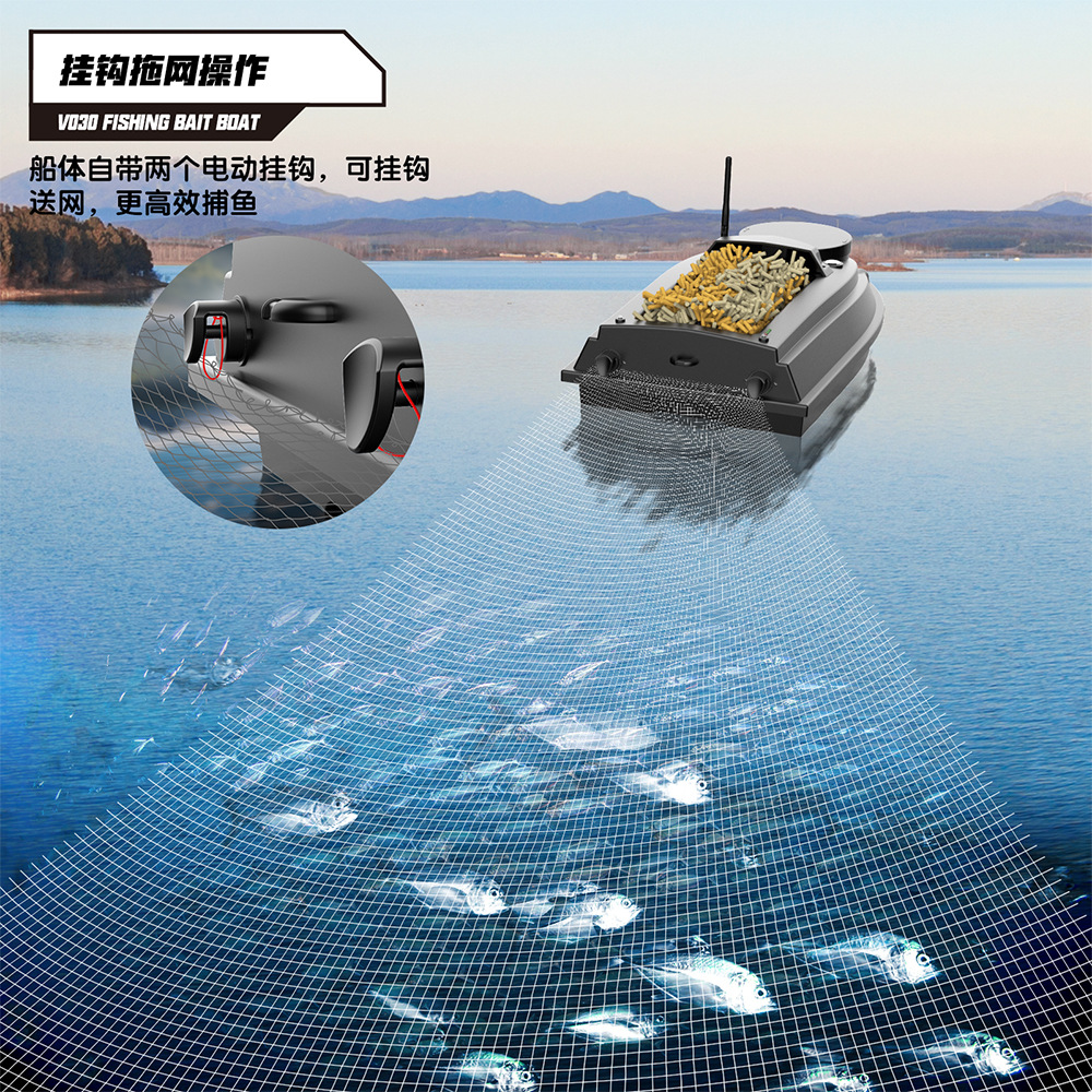 V030大尺寸9钓场180点GPS定位12V高速脱钩拉网双仓打窝船